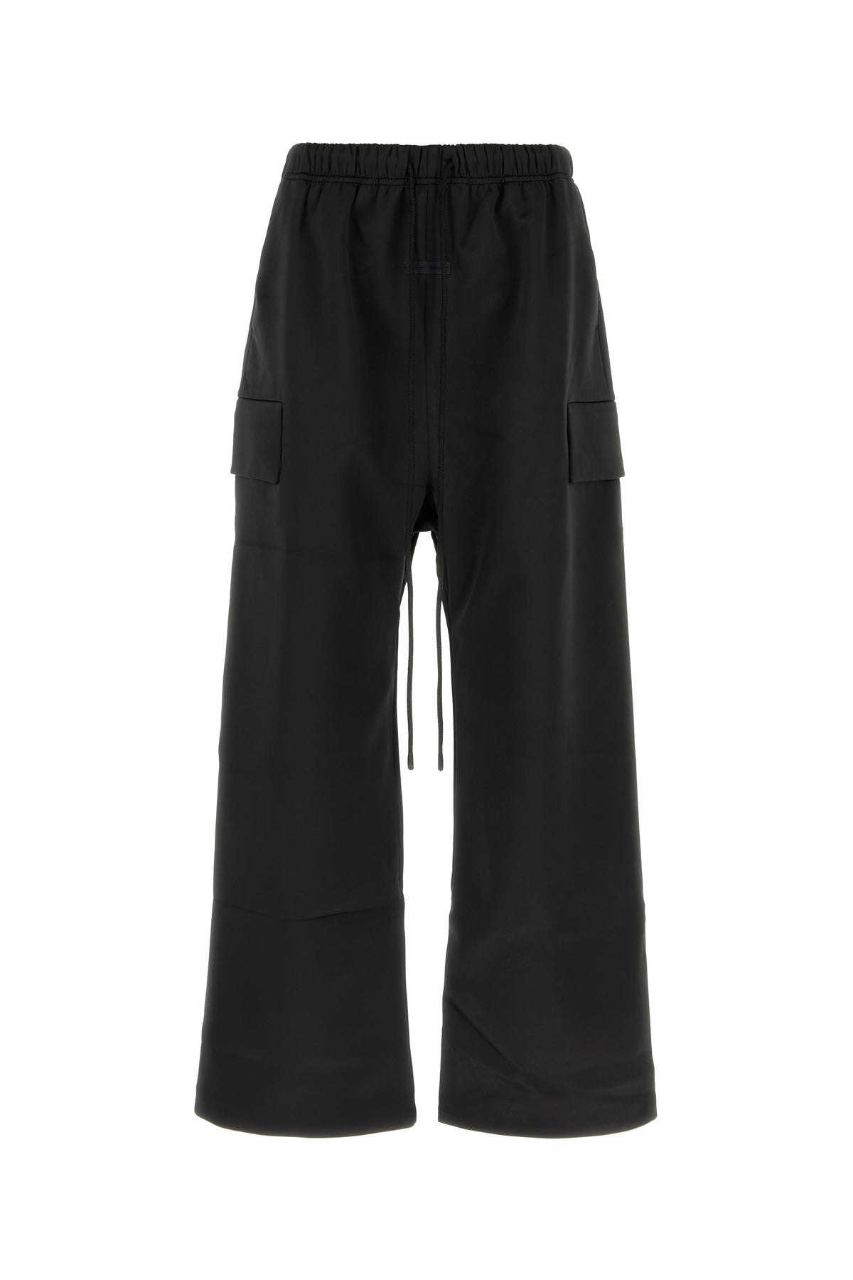 Joggers realized in satin enriched by tonal logoed label at the front.