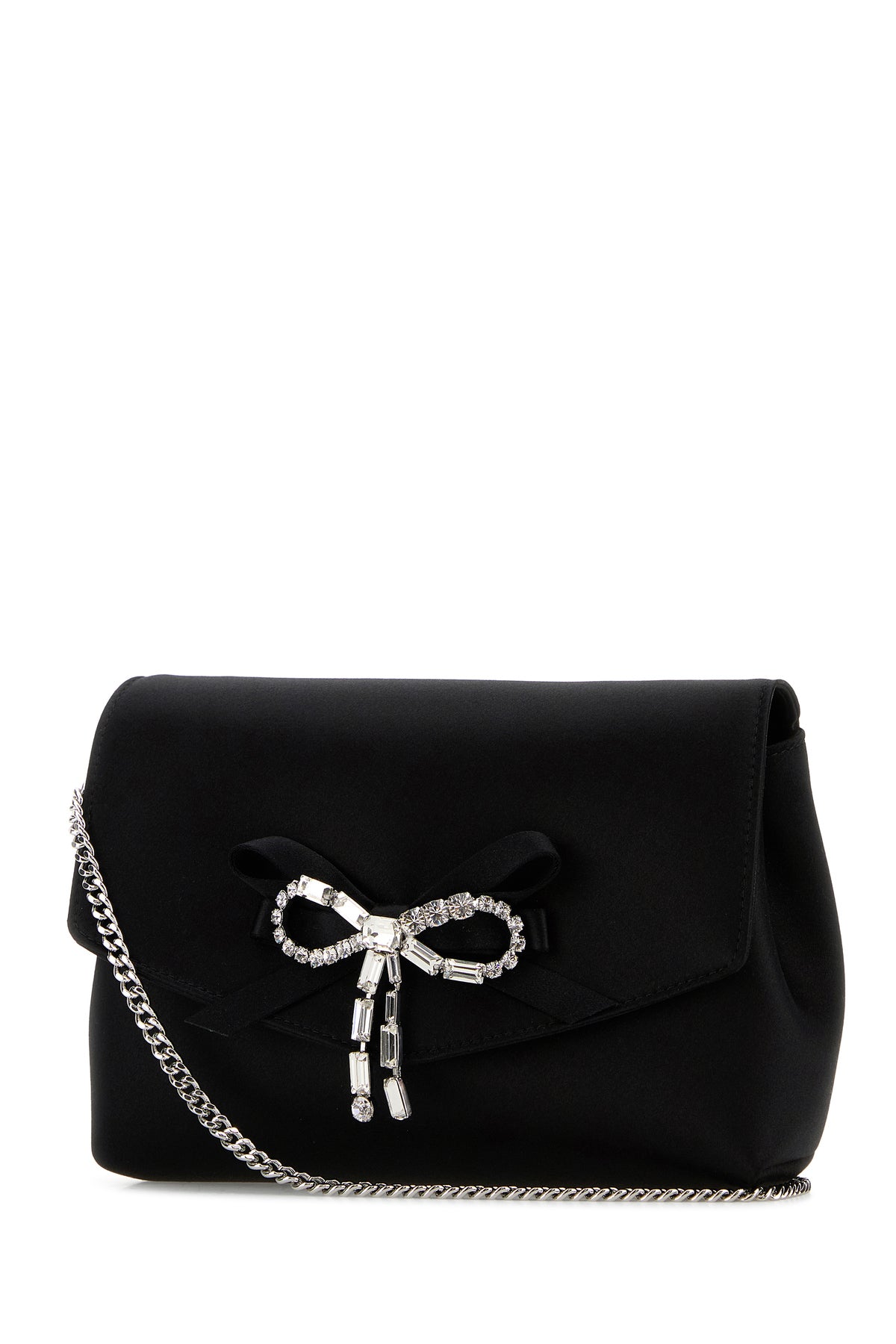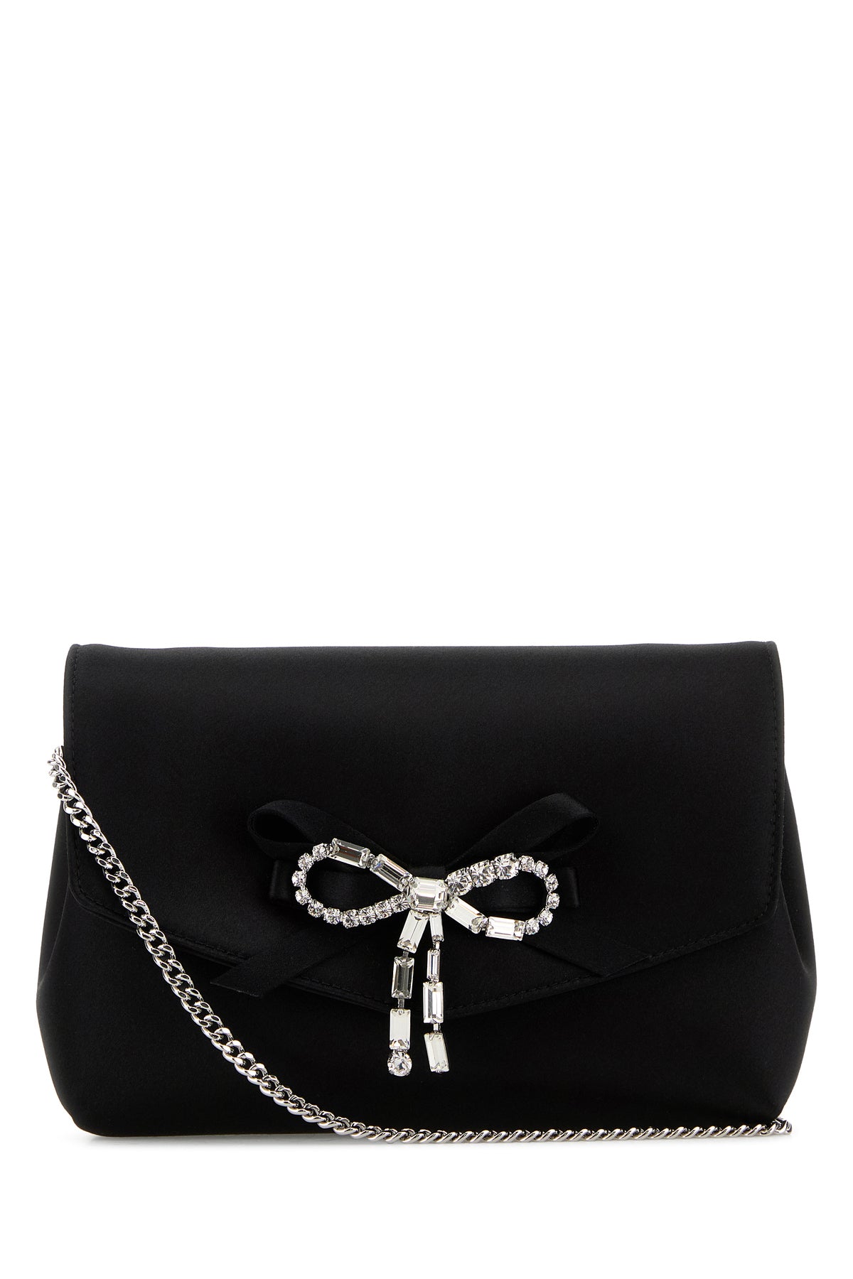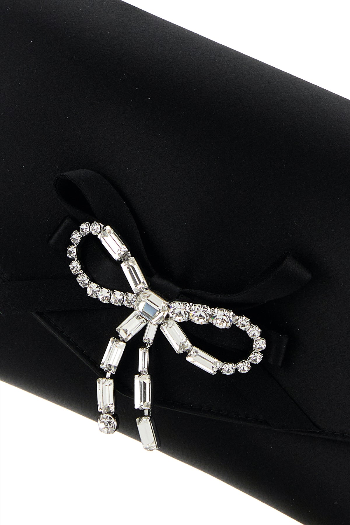 Clutch realized in satin enriched by jewel bow at the front.