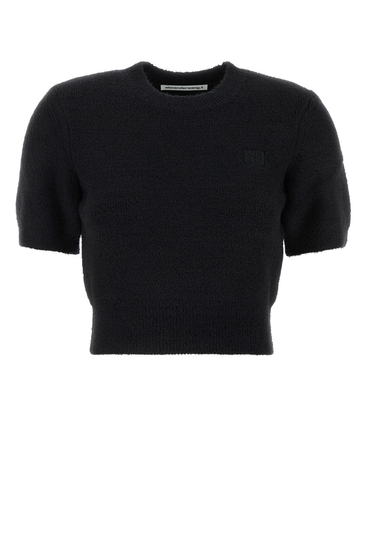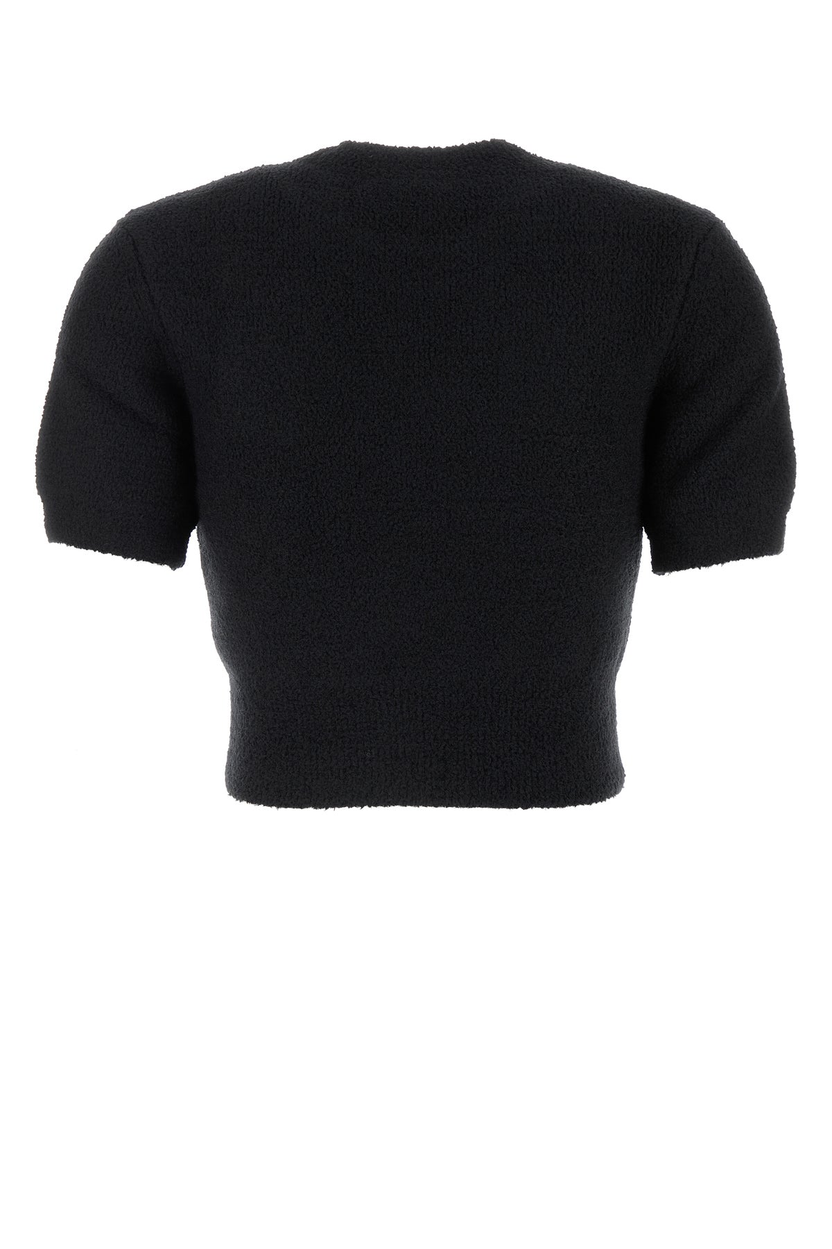 Short-sleeves sweater realized in stretch nylon characterized by tonal logoed embroidery on the chest.