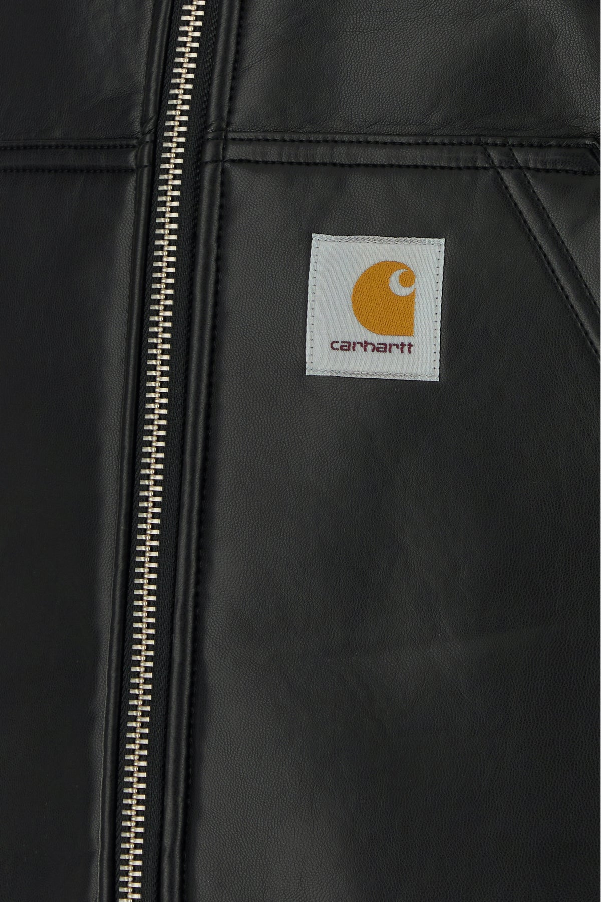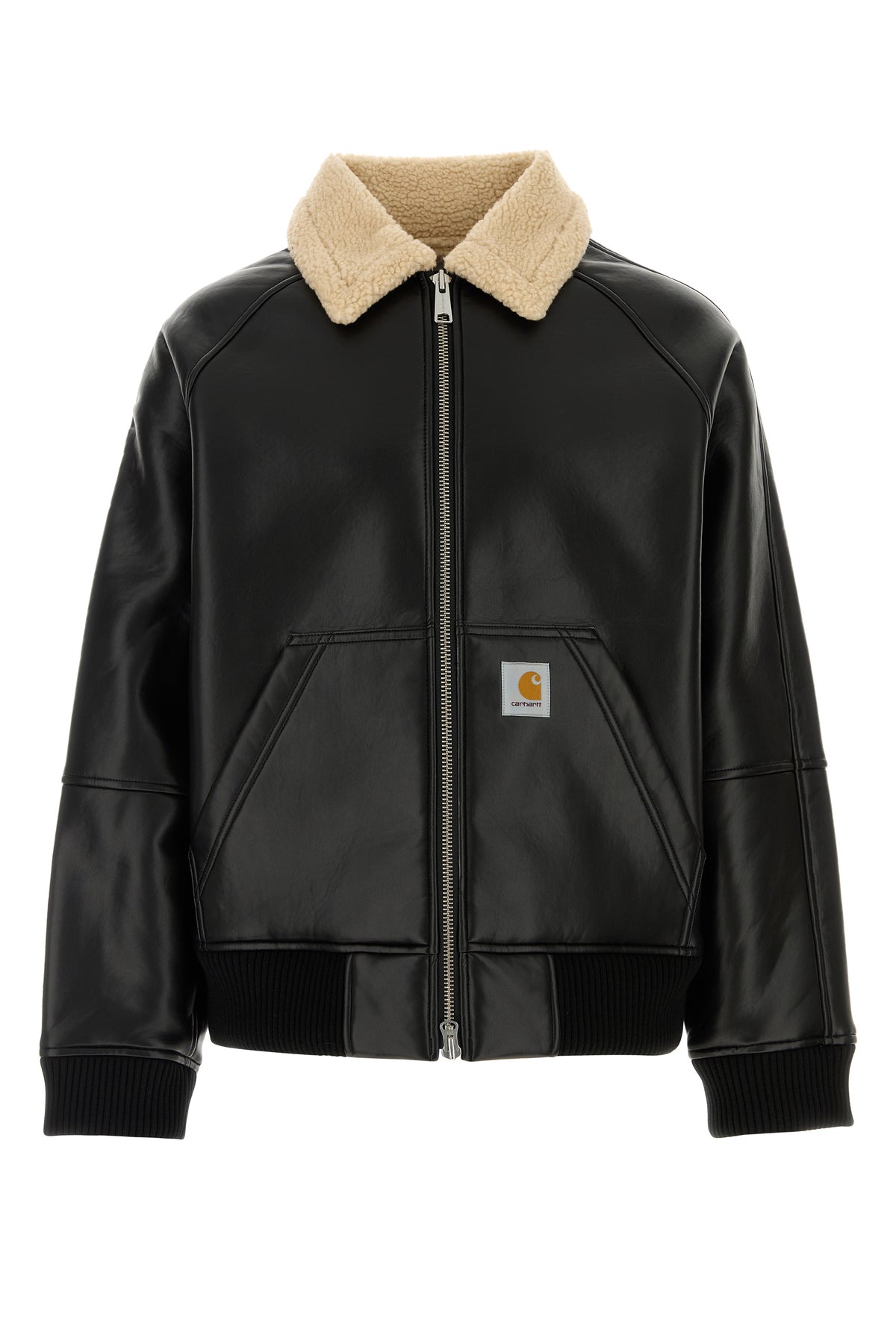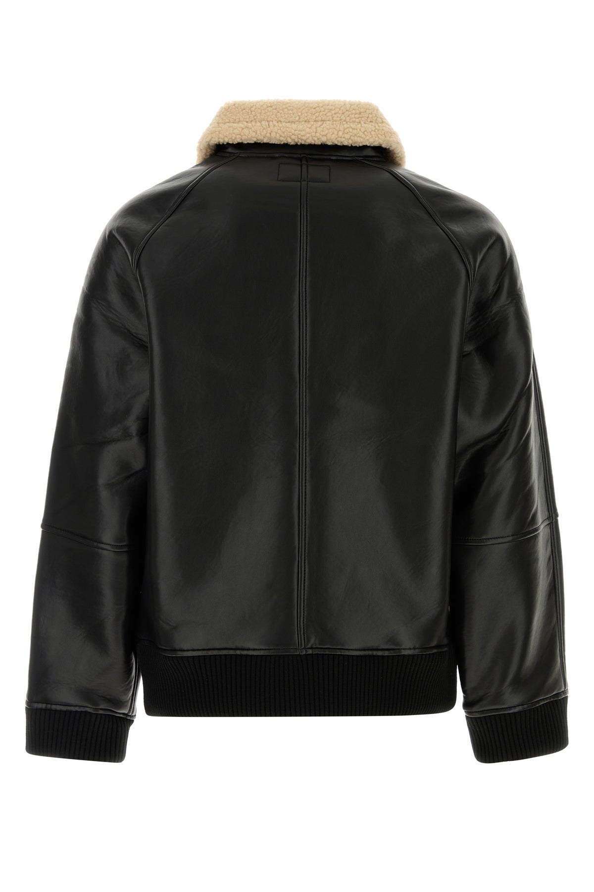 Jacket realized in synthetic leather enriched by logoed label at the front.