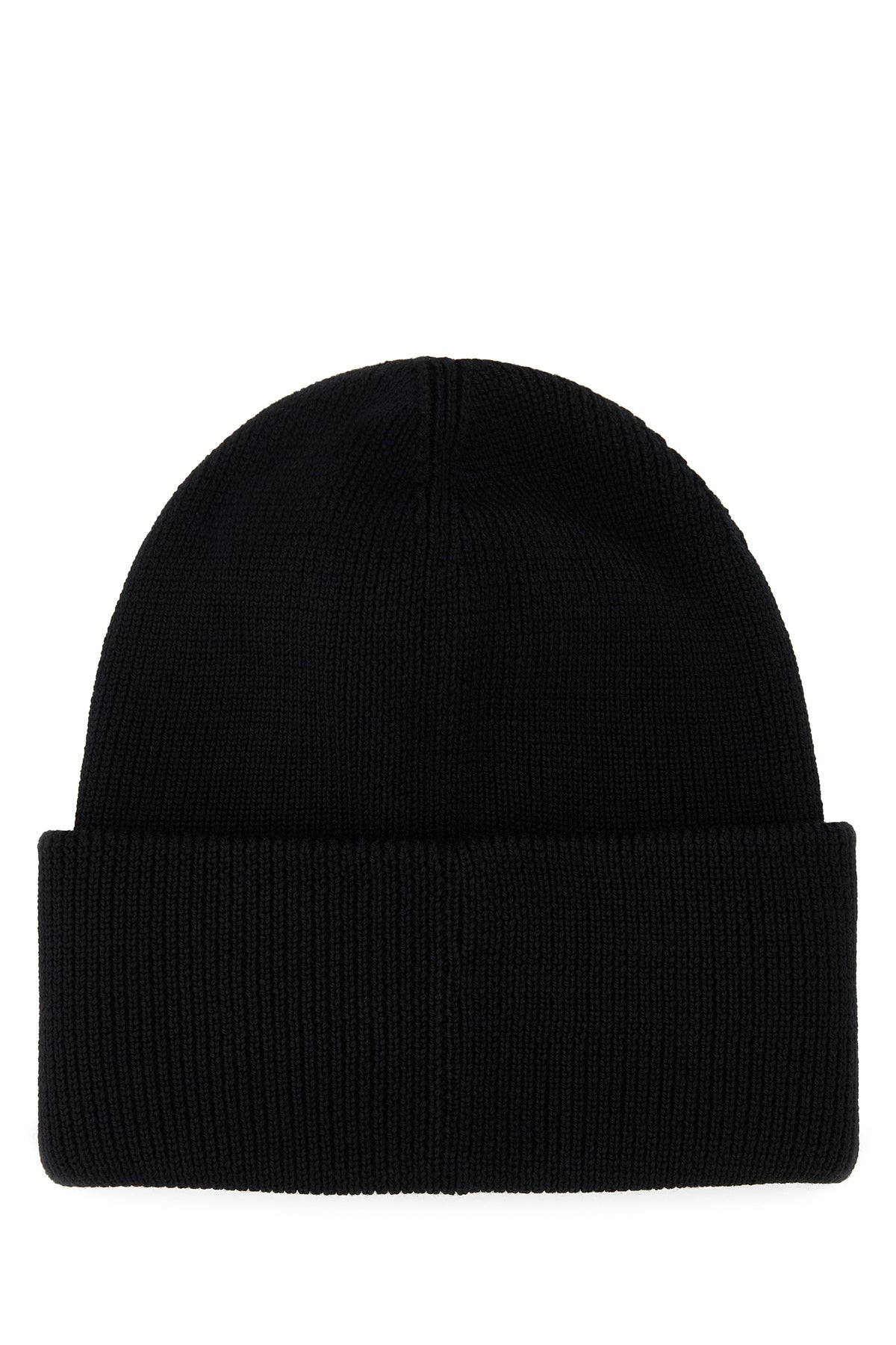 Beanie hat realized in ribbed pure wool enriched by contrasting logoed patch at the front.
