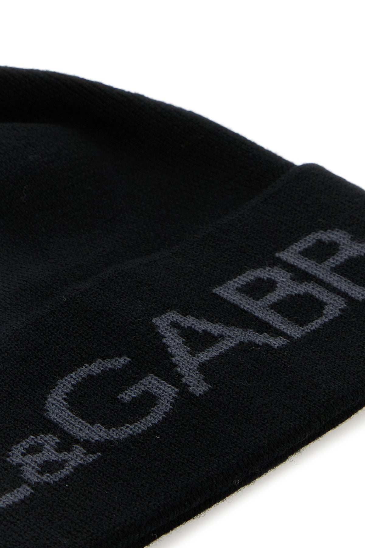 Beanie hat realized in pure virgin wool characterized by contrasting logoed embroidery on the band.