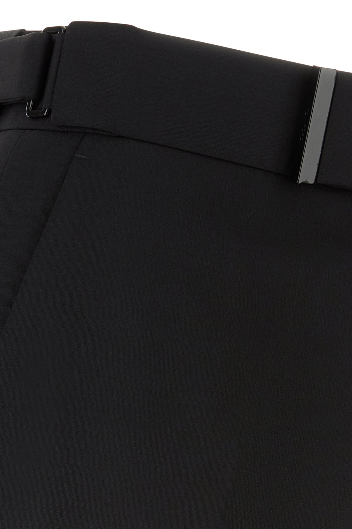 Pant realized in pure wool characterized by adjustable straps at the waist