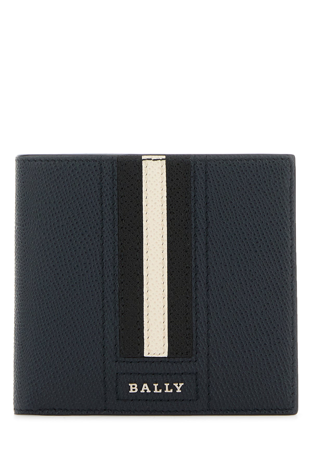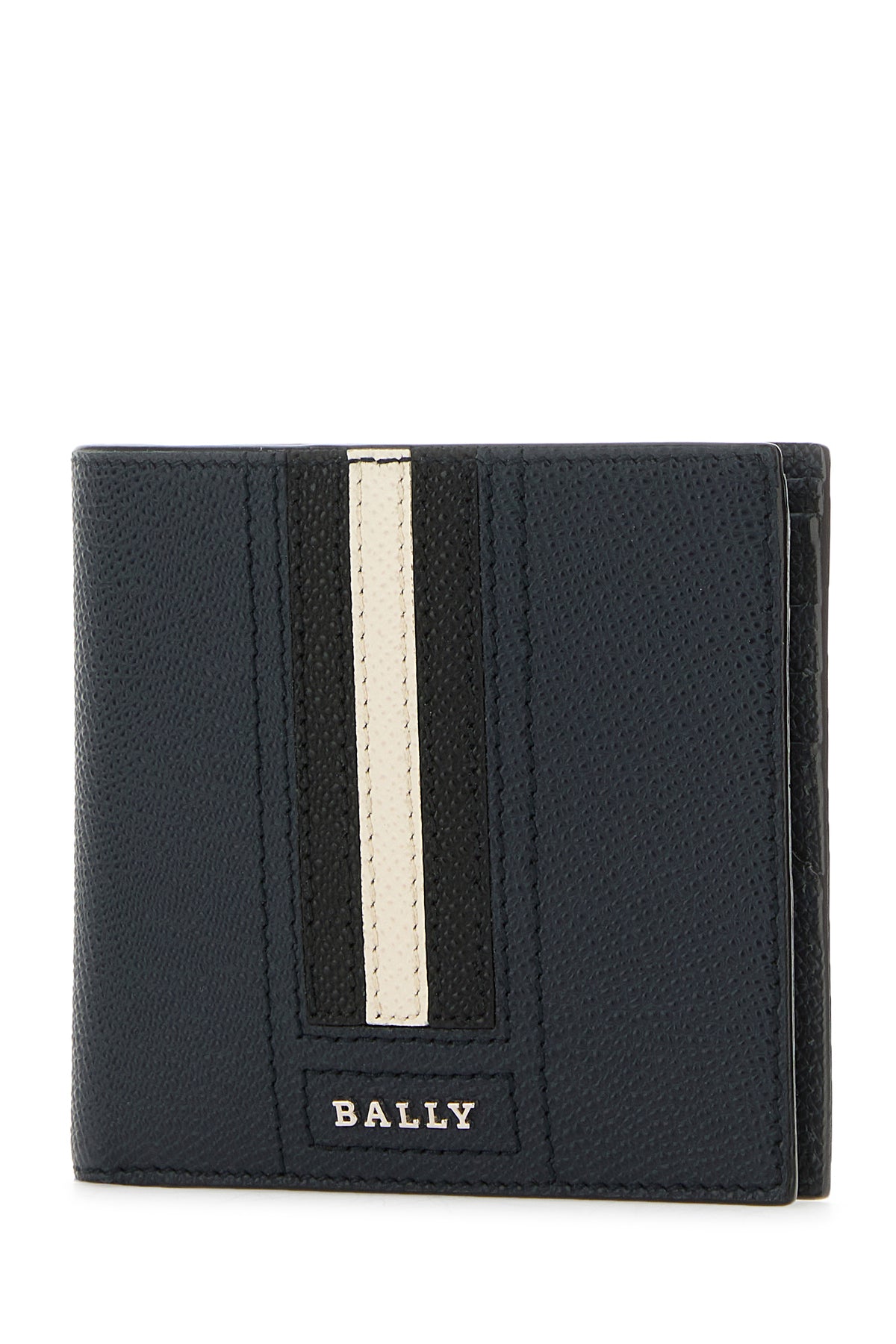 Wallet realized in grained bovine leather enriched by tricolor band and metal lettering logo at the front.