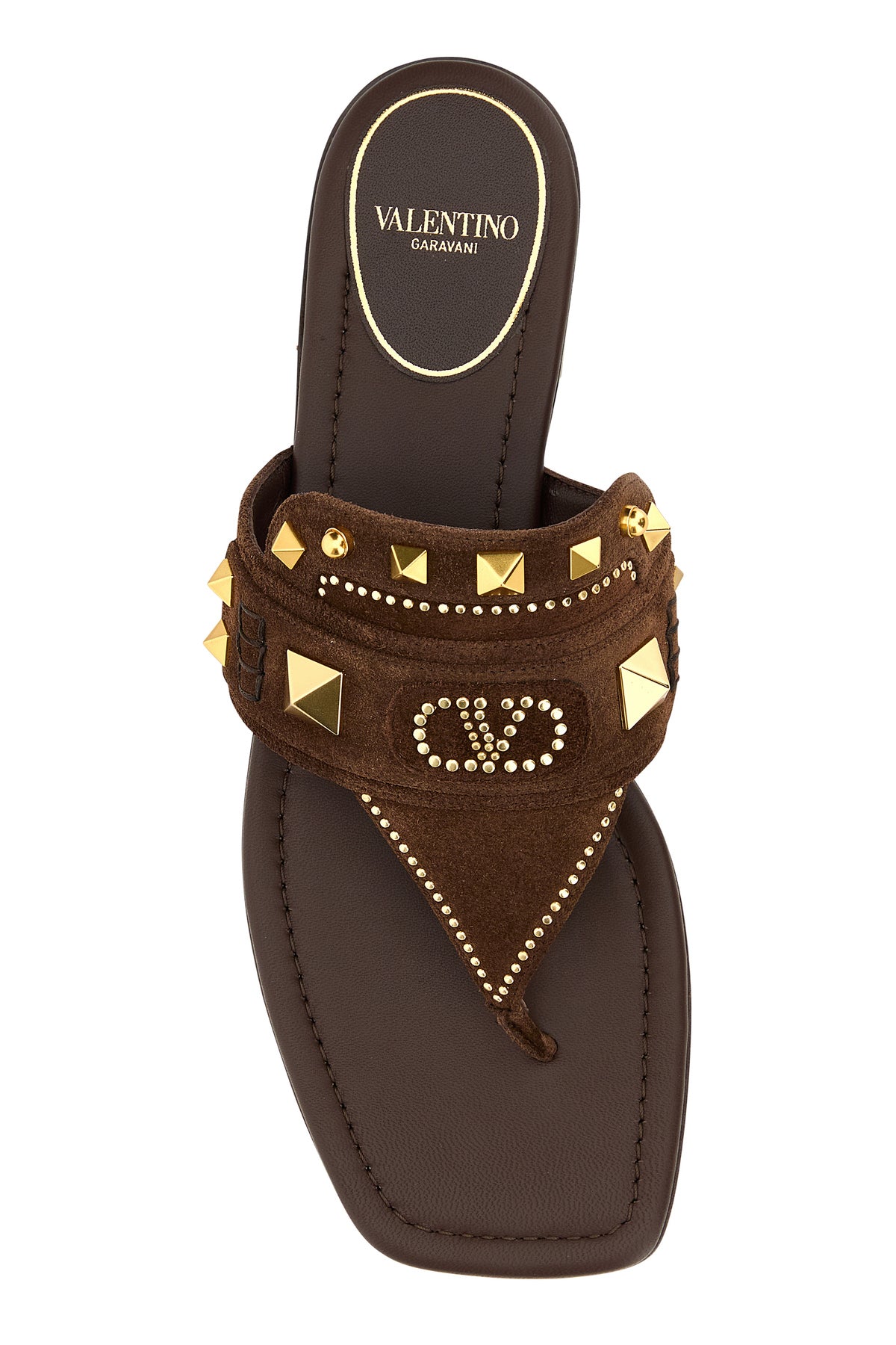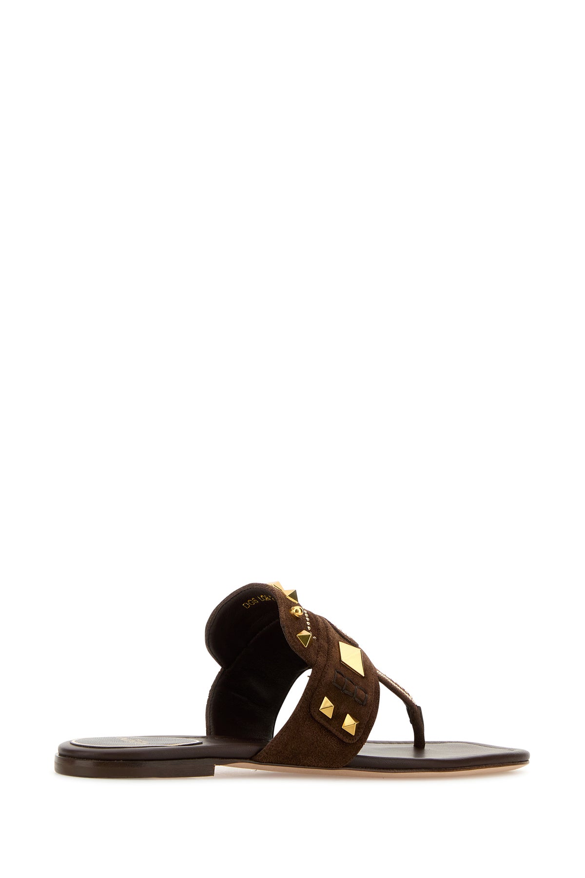 Thong slippers realized in suede enriched by metal studs and logoed patch at the front.