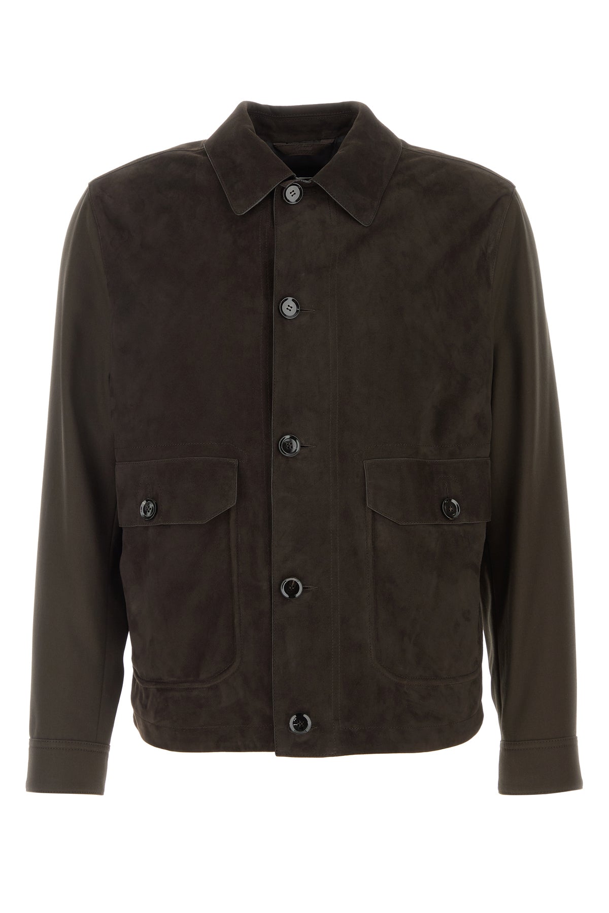 Chocolate leather and cotton jacket