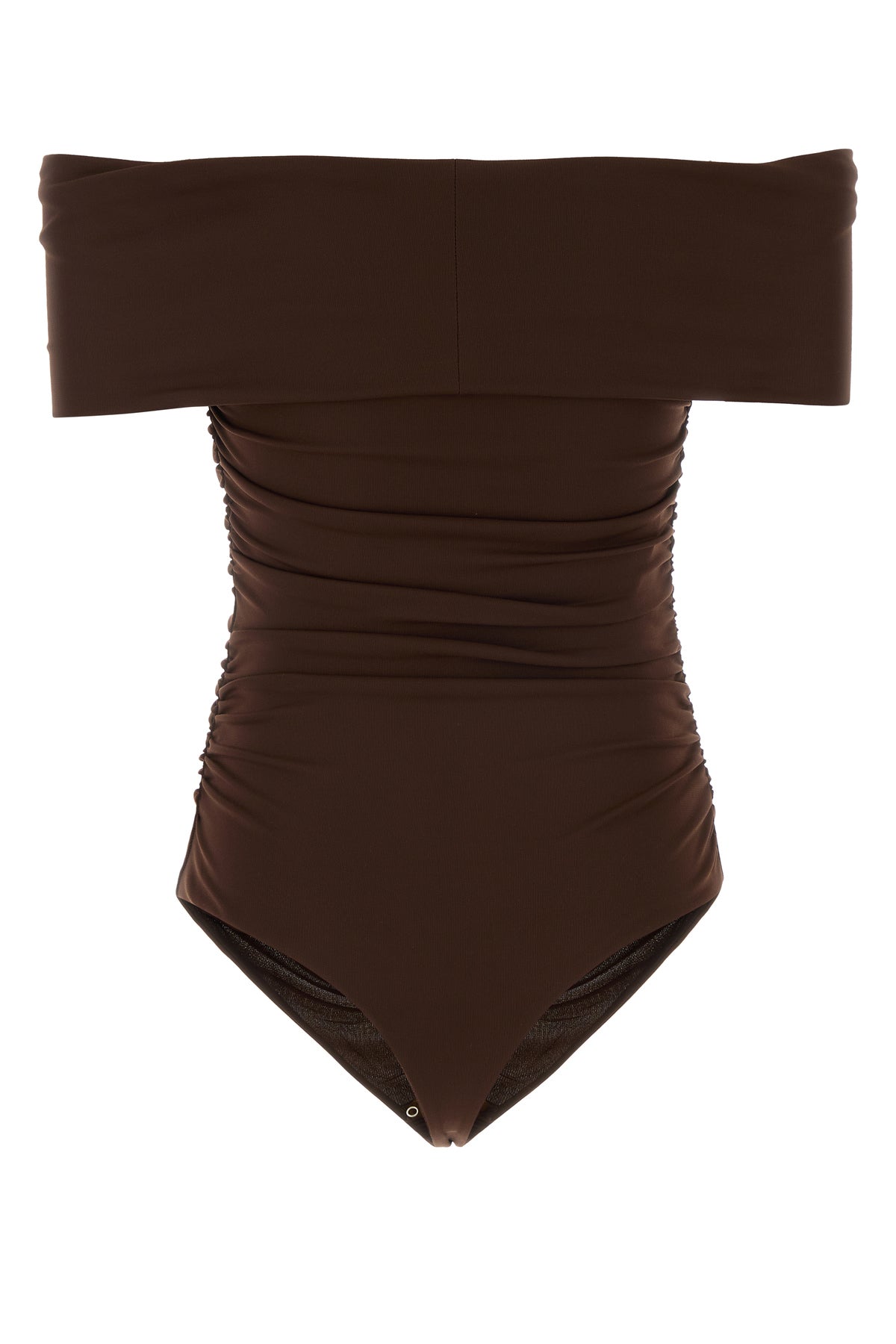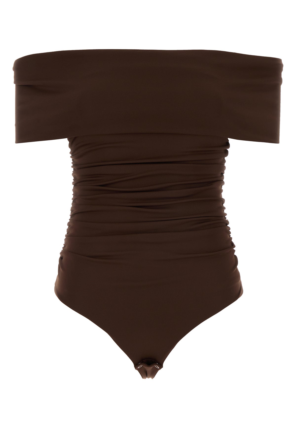 Off-the-shoulder bodysuit realized in stretch jersey.