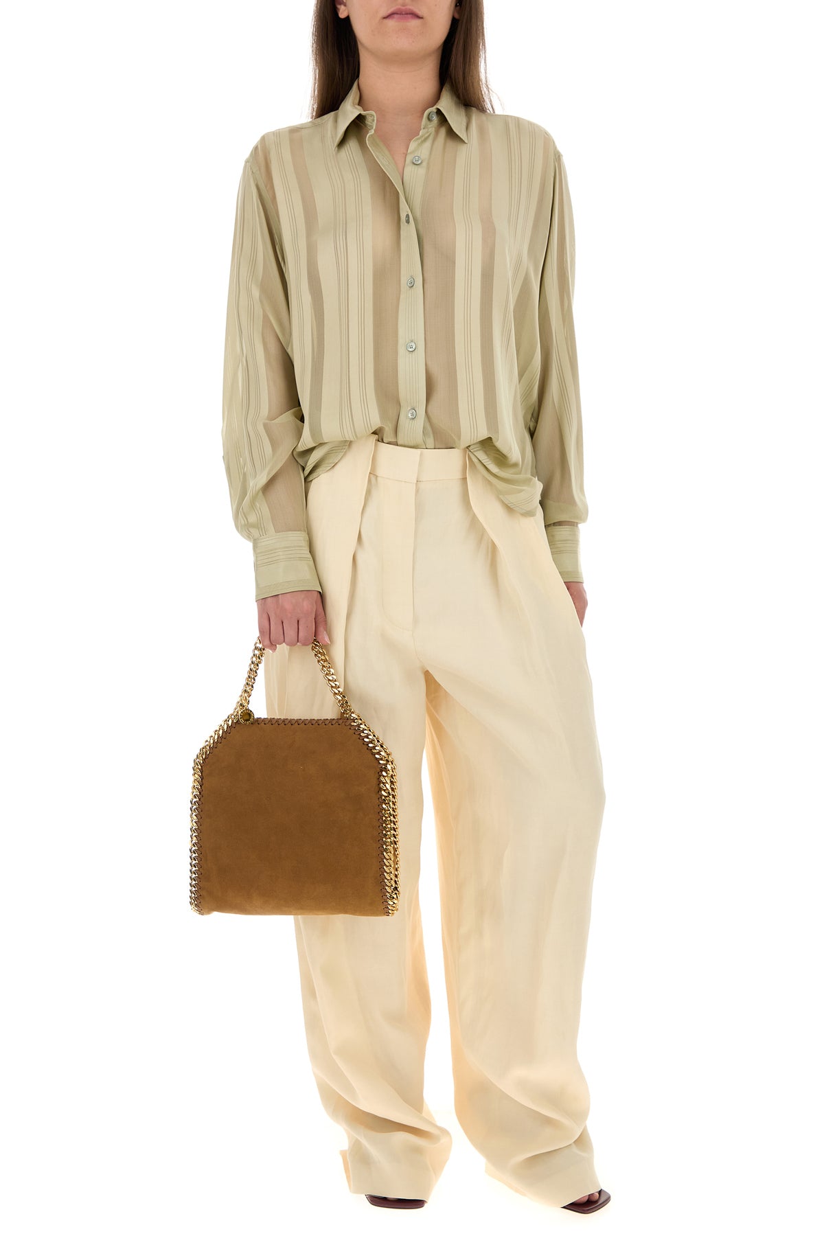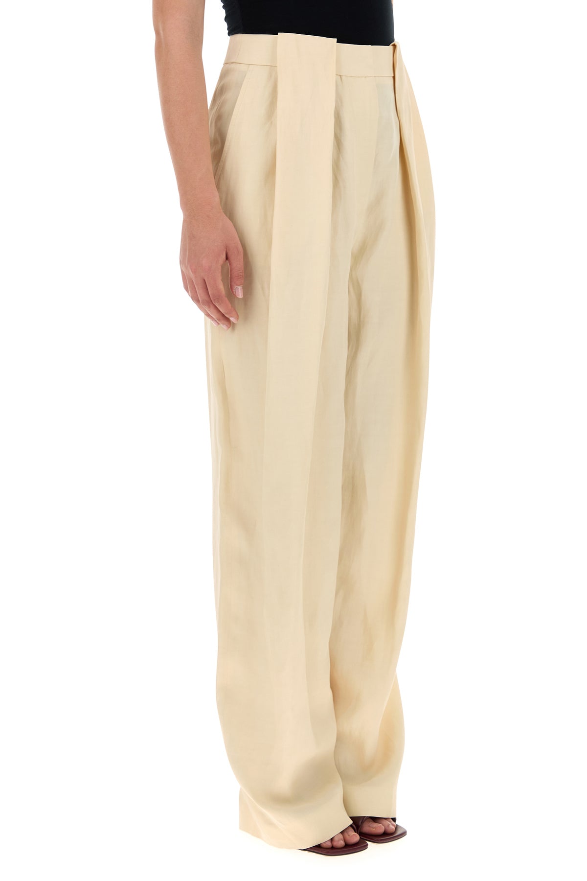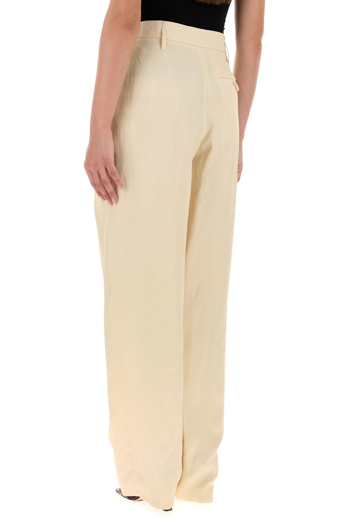 Cream viscose blend wide-leg pant