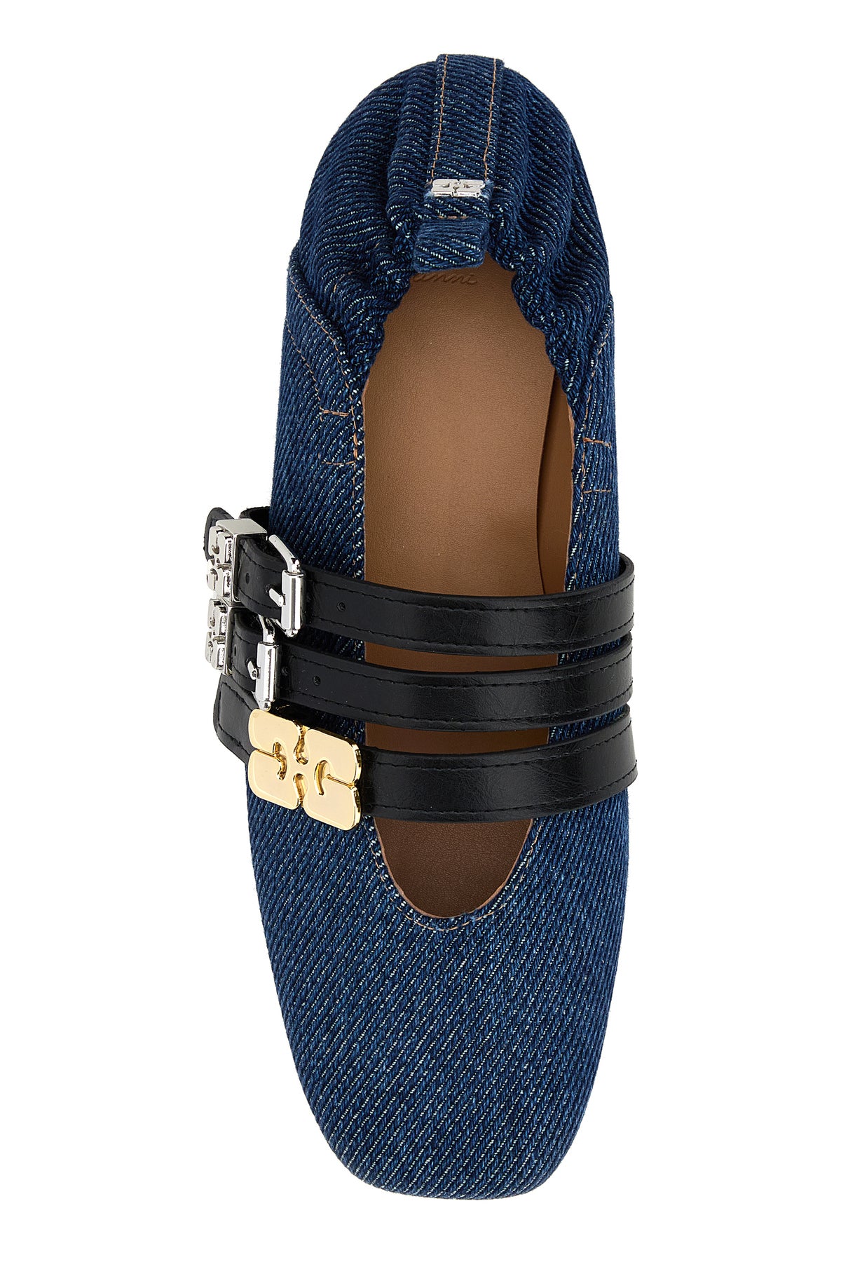 Ballerinas realized in denim enriched by logoed metal detail on the strap on the instep.