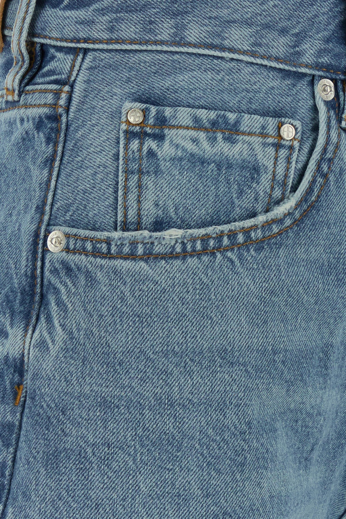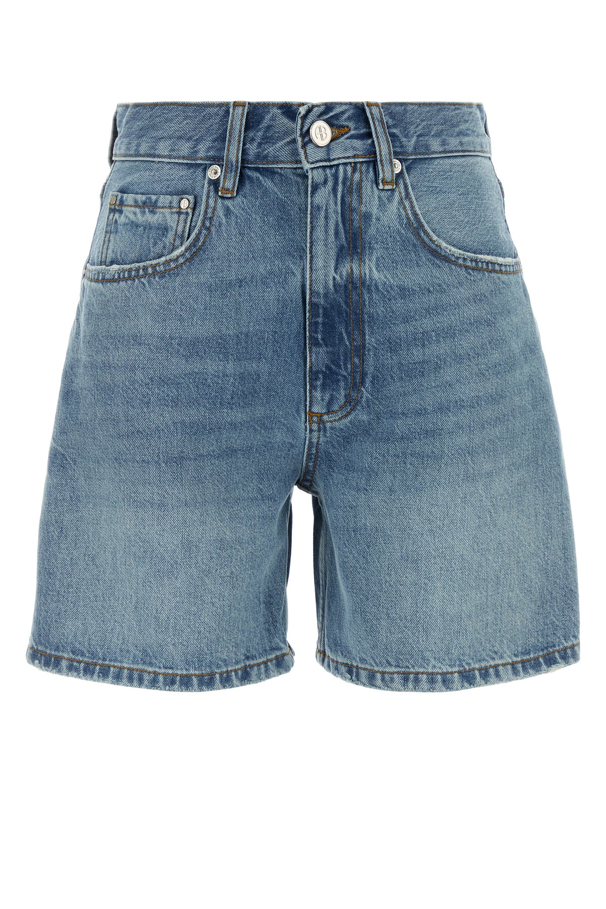 Shorts realized in stonewashed and distressed pure cotton denim enriched by logoed label at the back.