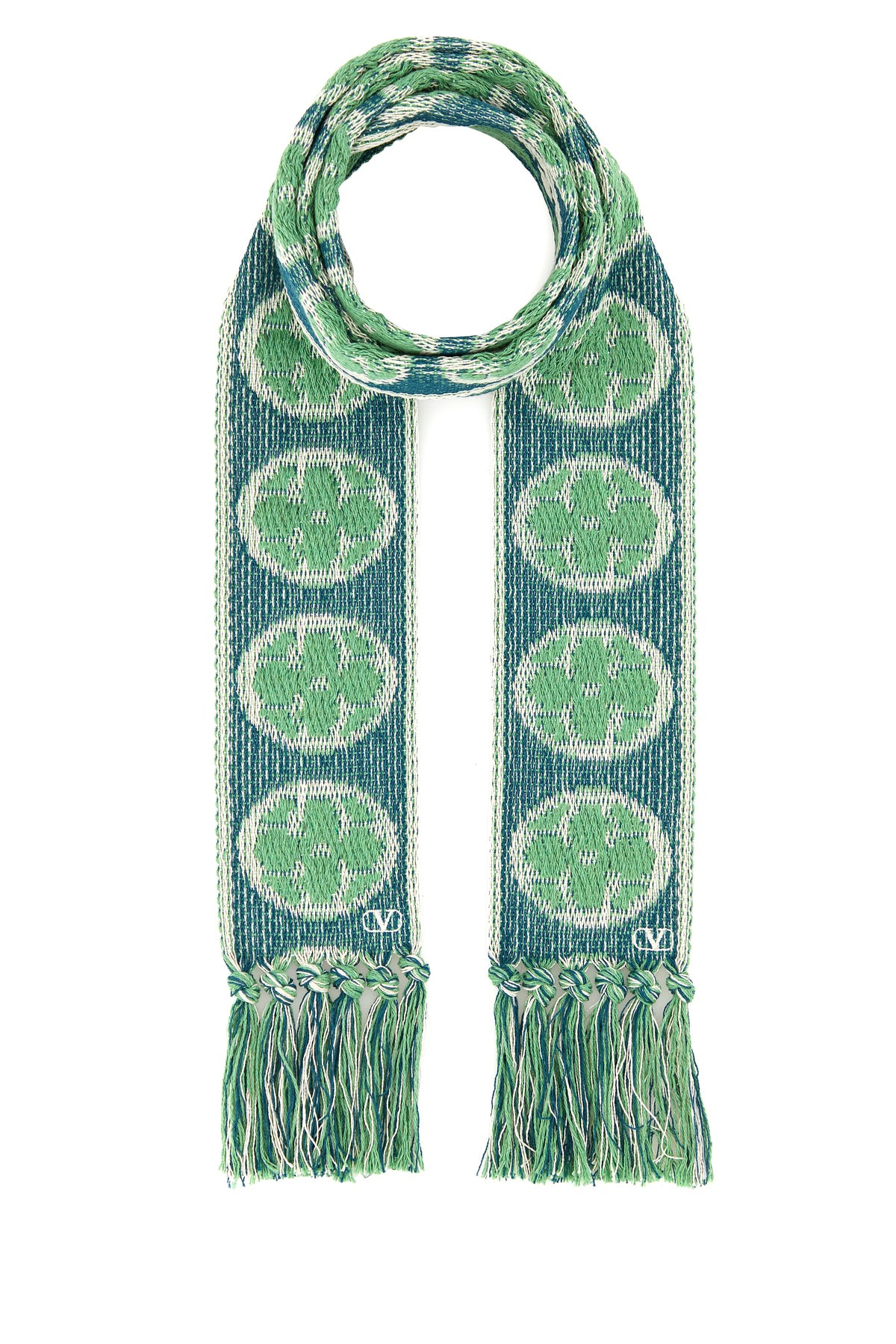 Scarf realized in cotton blend characterized by peculiar embroideries on the entire surface.