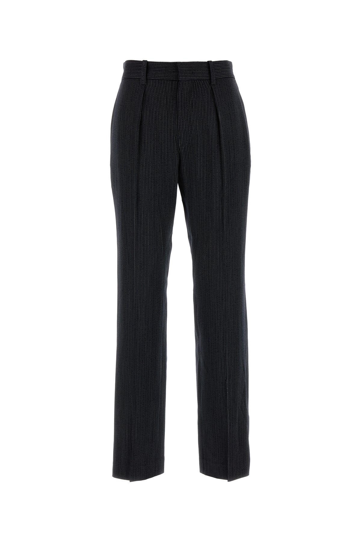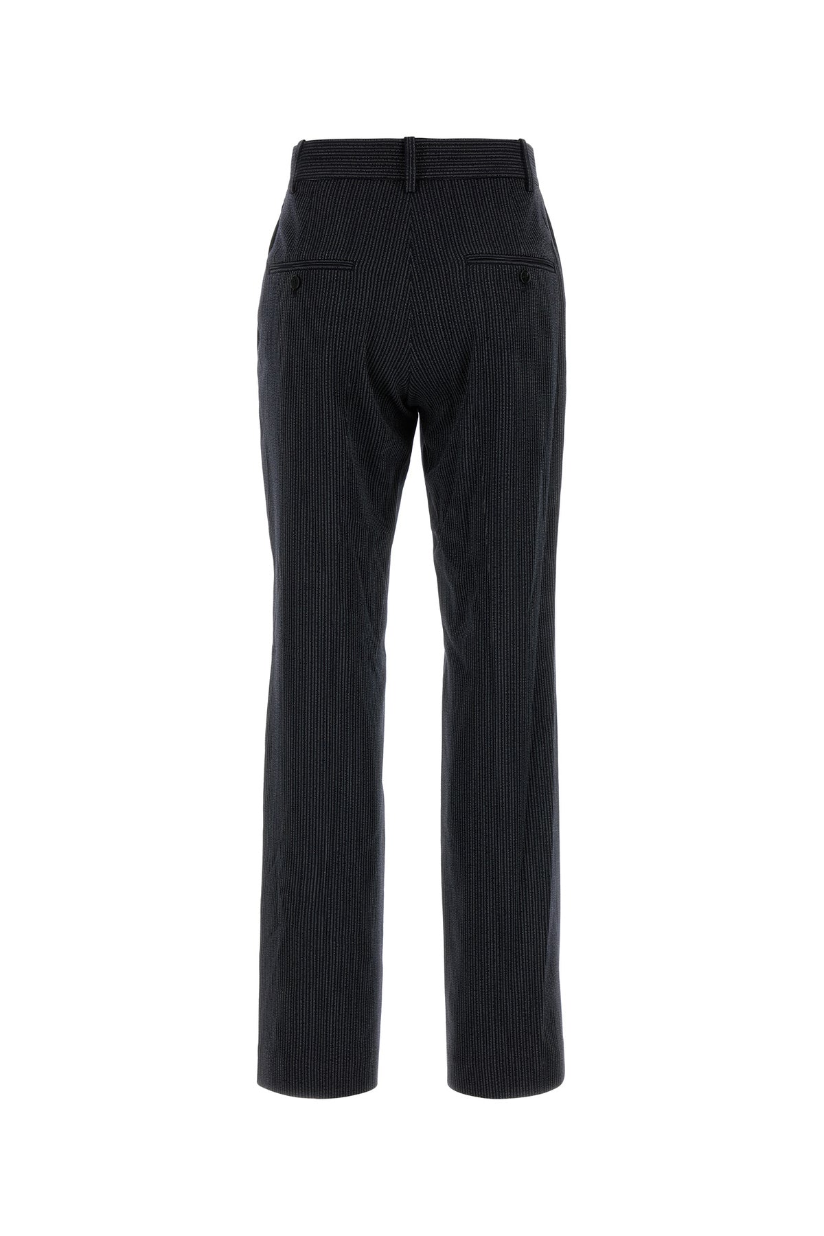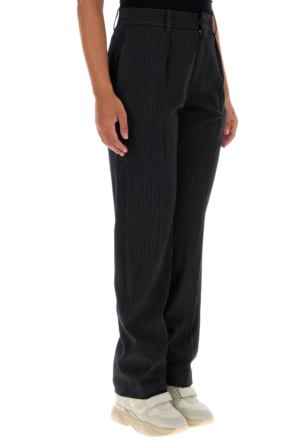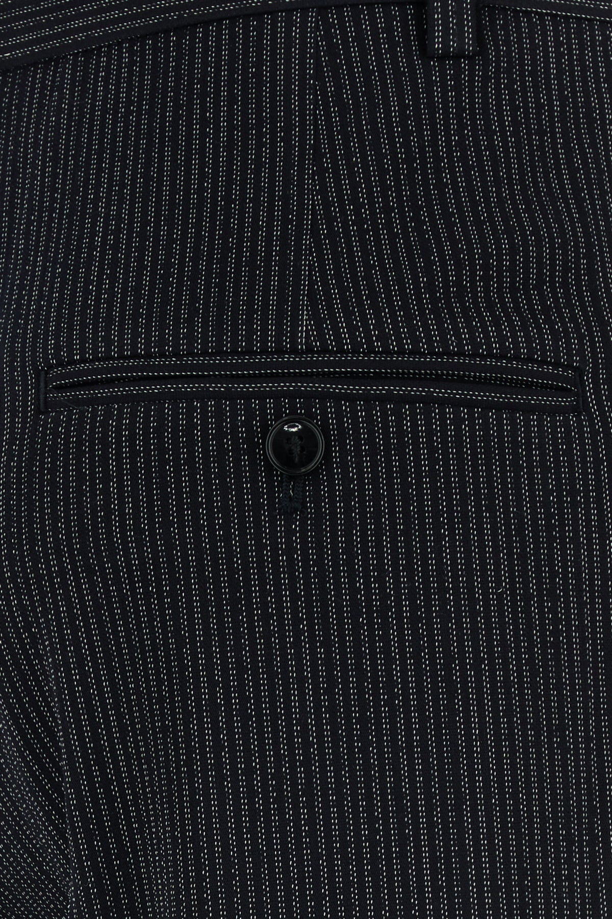Pant realized in stretch virgin wool blend characterized by striped embroidery on the entire surface.