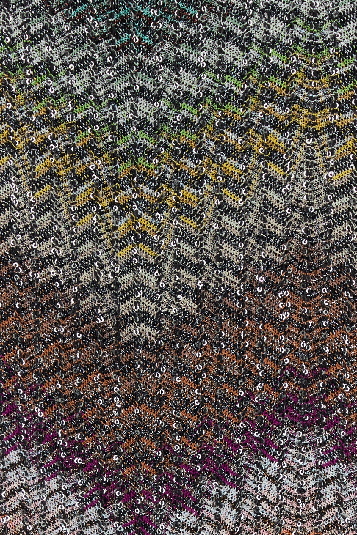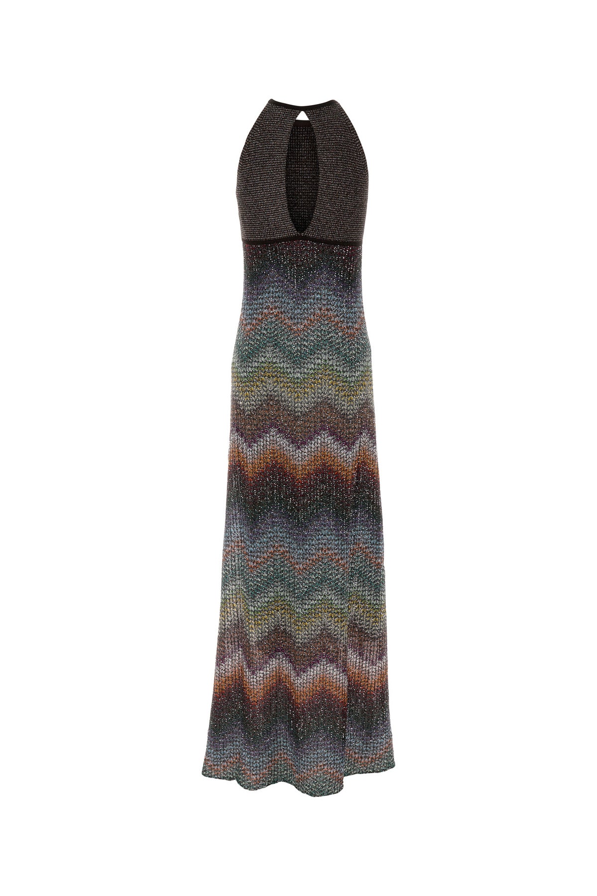 Long dress realized in viscose blend with lurex threads and sequins characterized by chevron motif embroidery on the entire surface.
