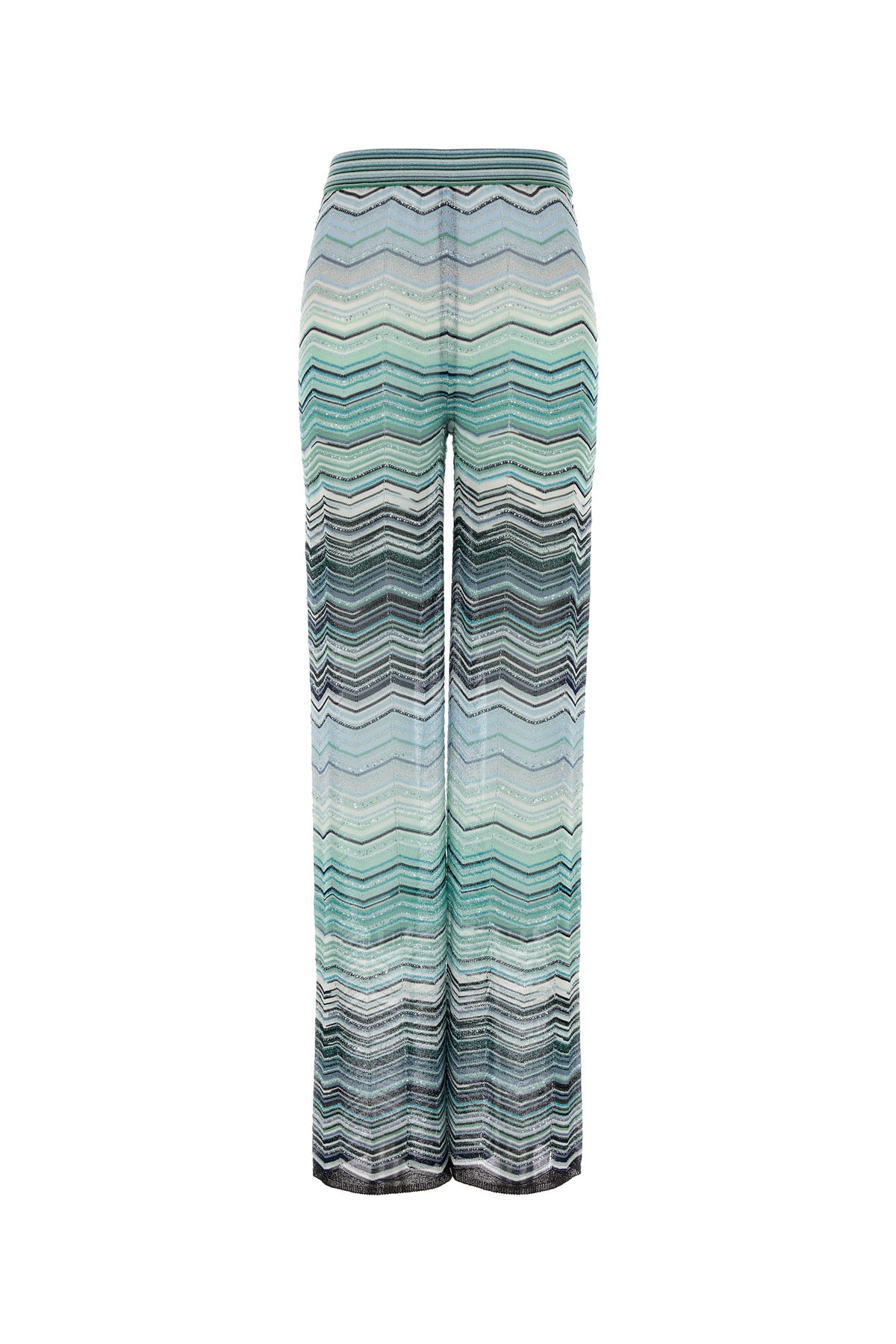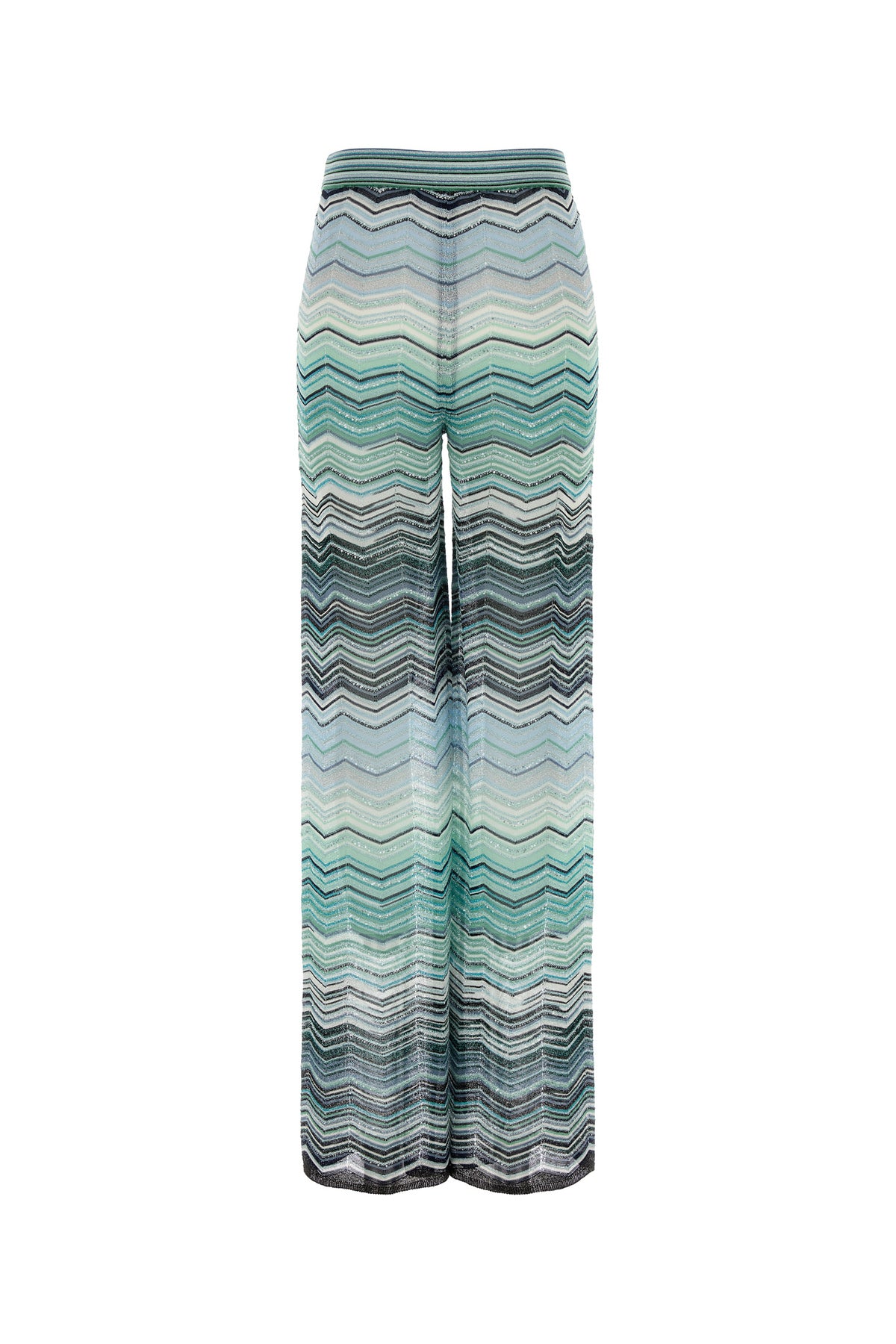 Pant realized in viscose blend characterized by geometric motif embroidery enriched by sequins on the entire surface.
