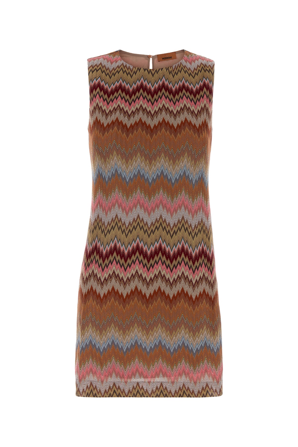 Mini dress realized in viscose characterized by chevron motif embroidery on the entire surface.