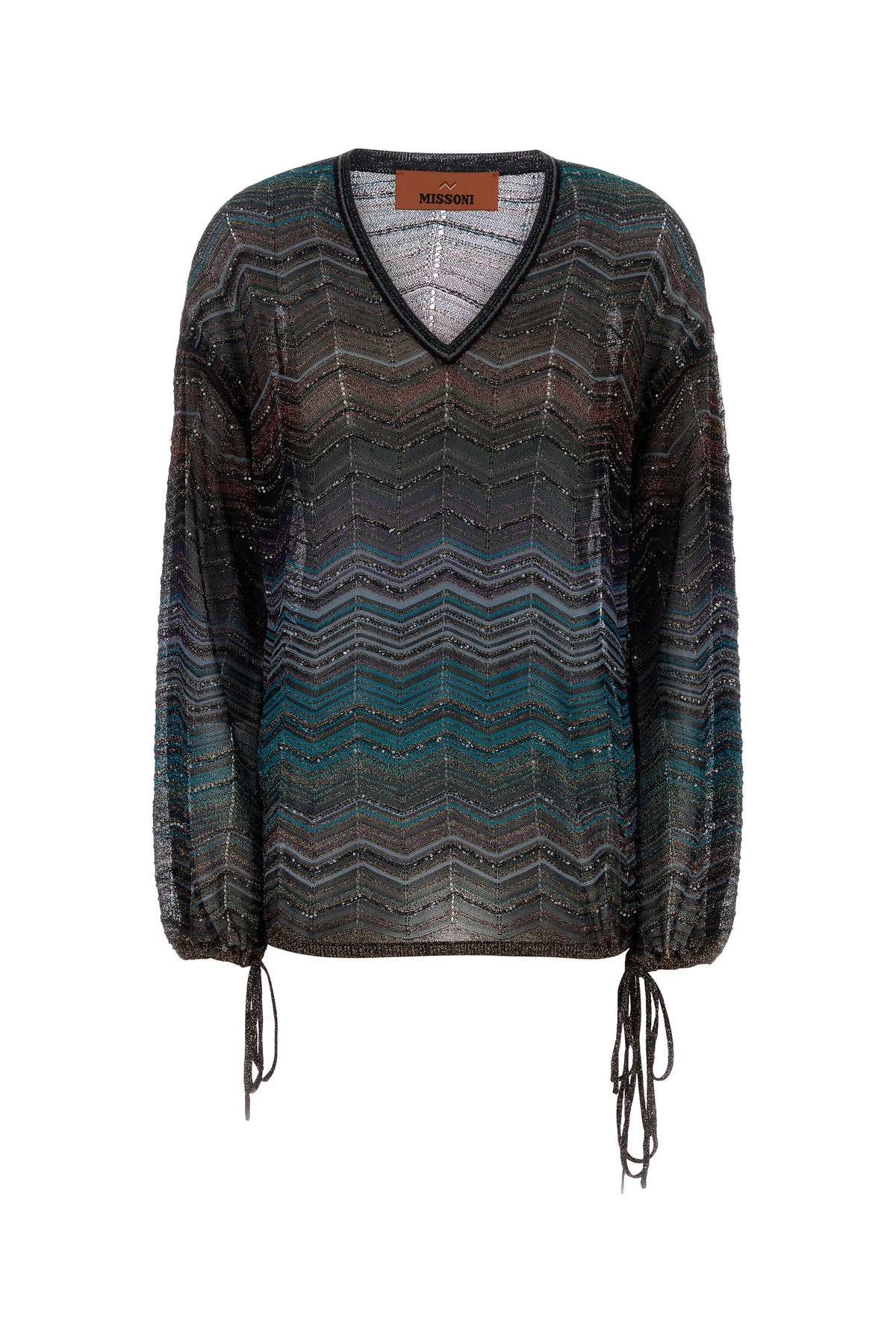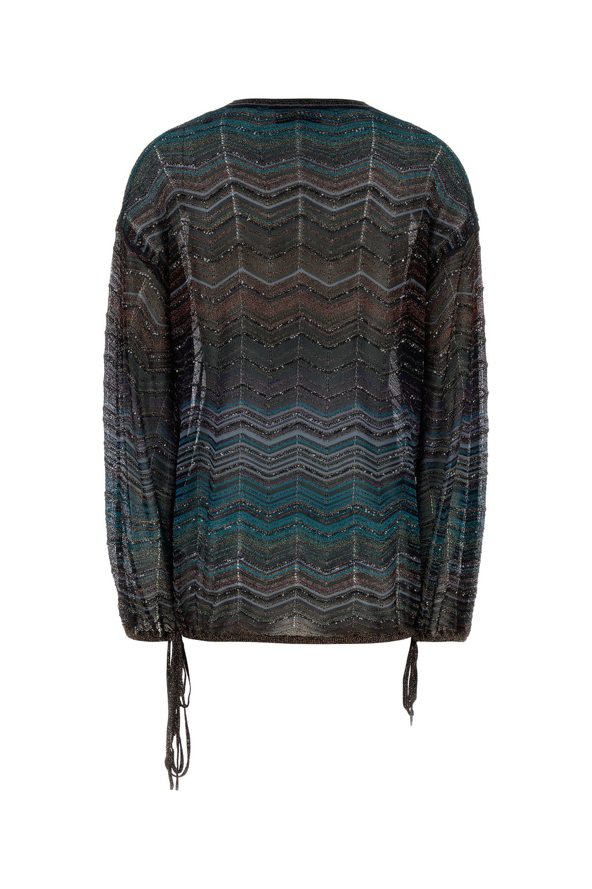 Oversize blouse realized in viscose blend with lurex threads and sequins characterized by chevron motif embroidery on the entire surface.