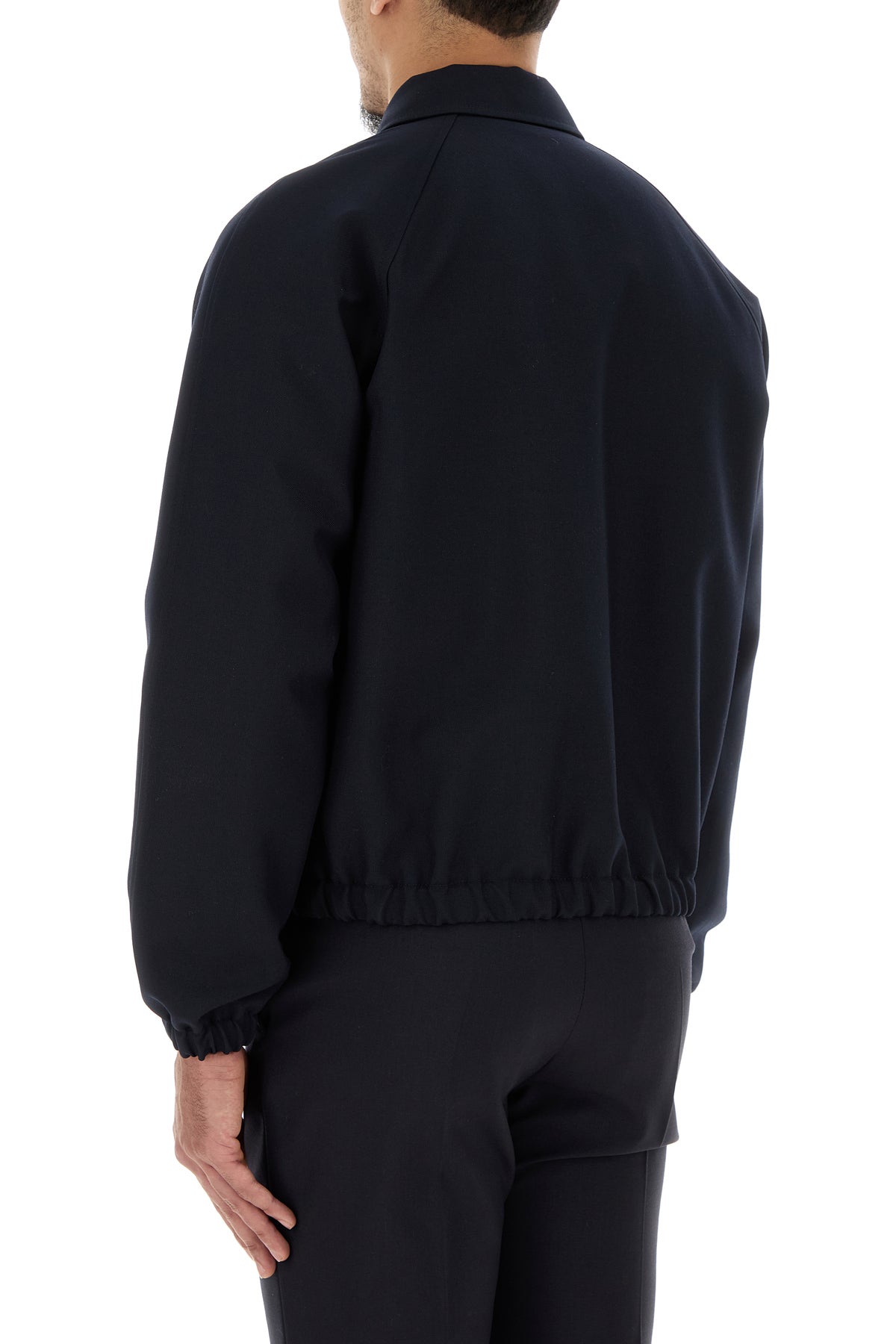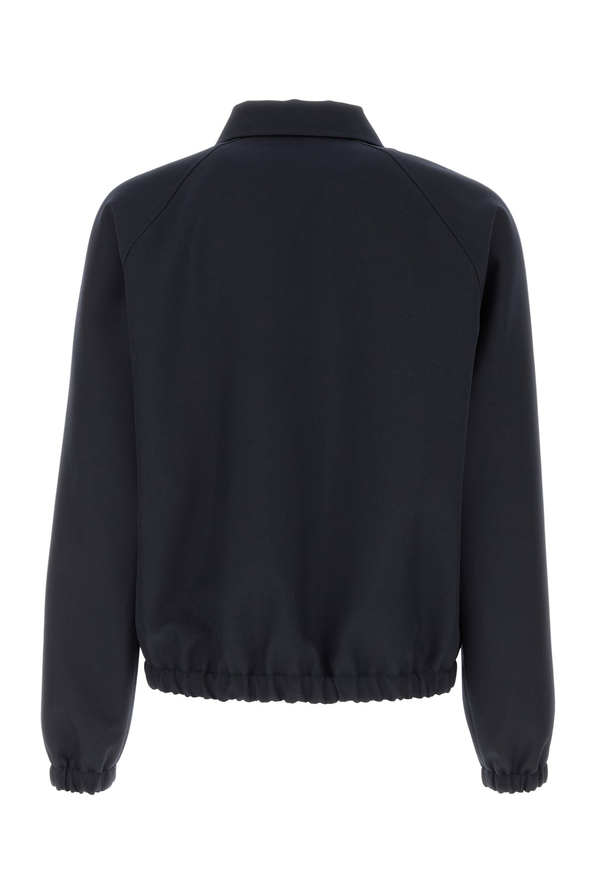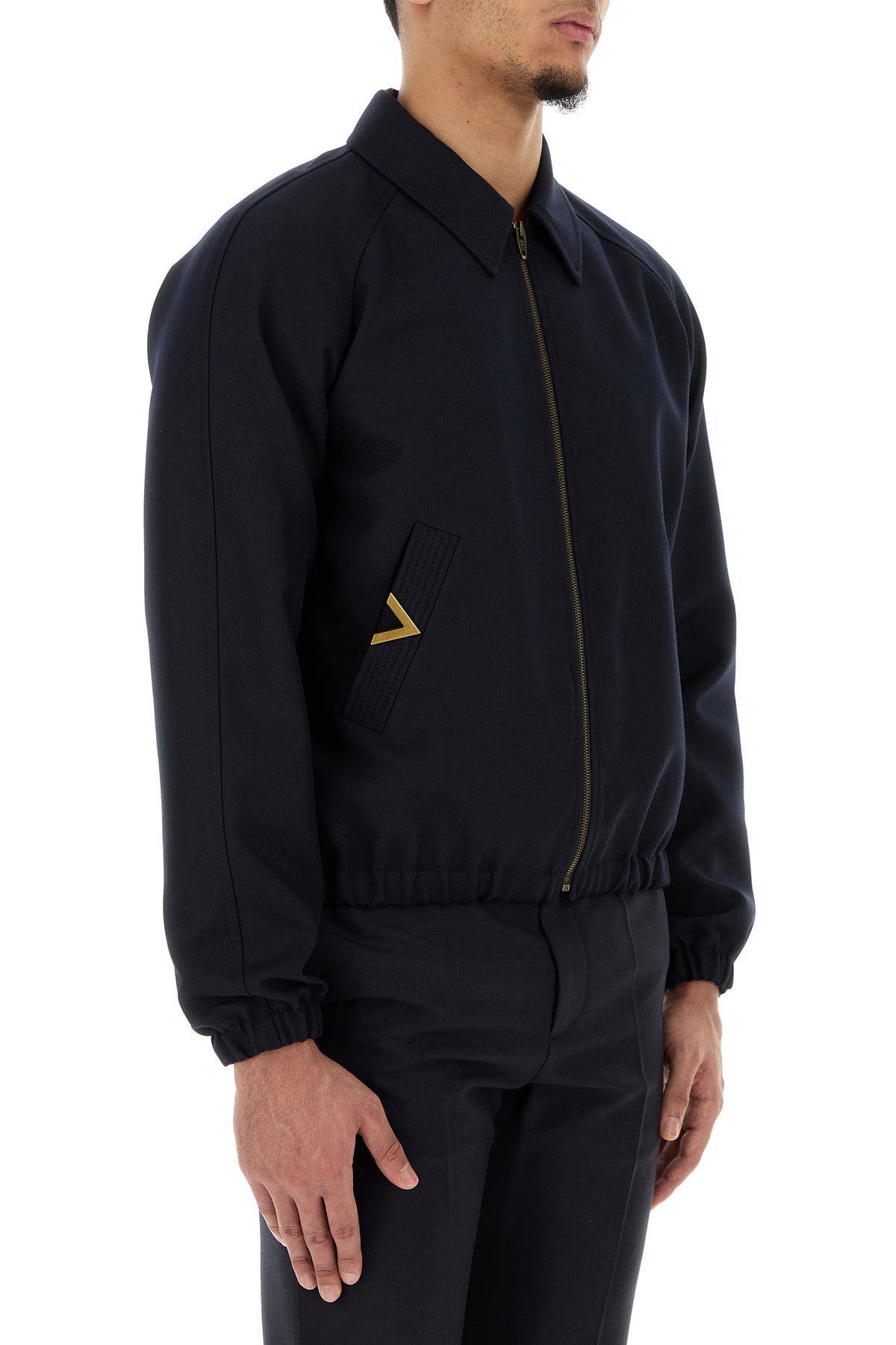 Jacket realized in gabardine enriched by V metal detail at the front.
