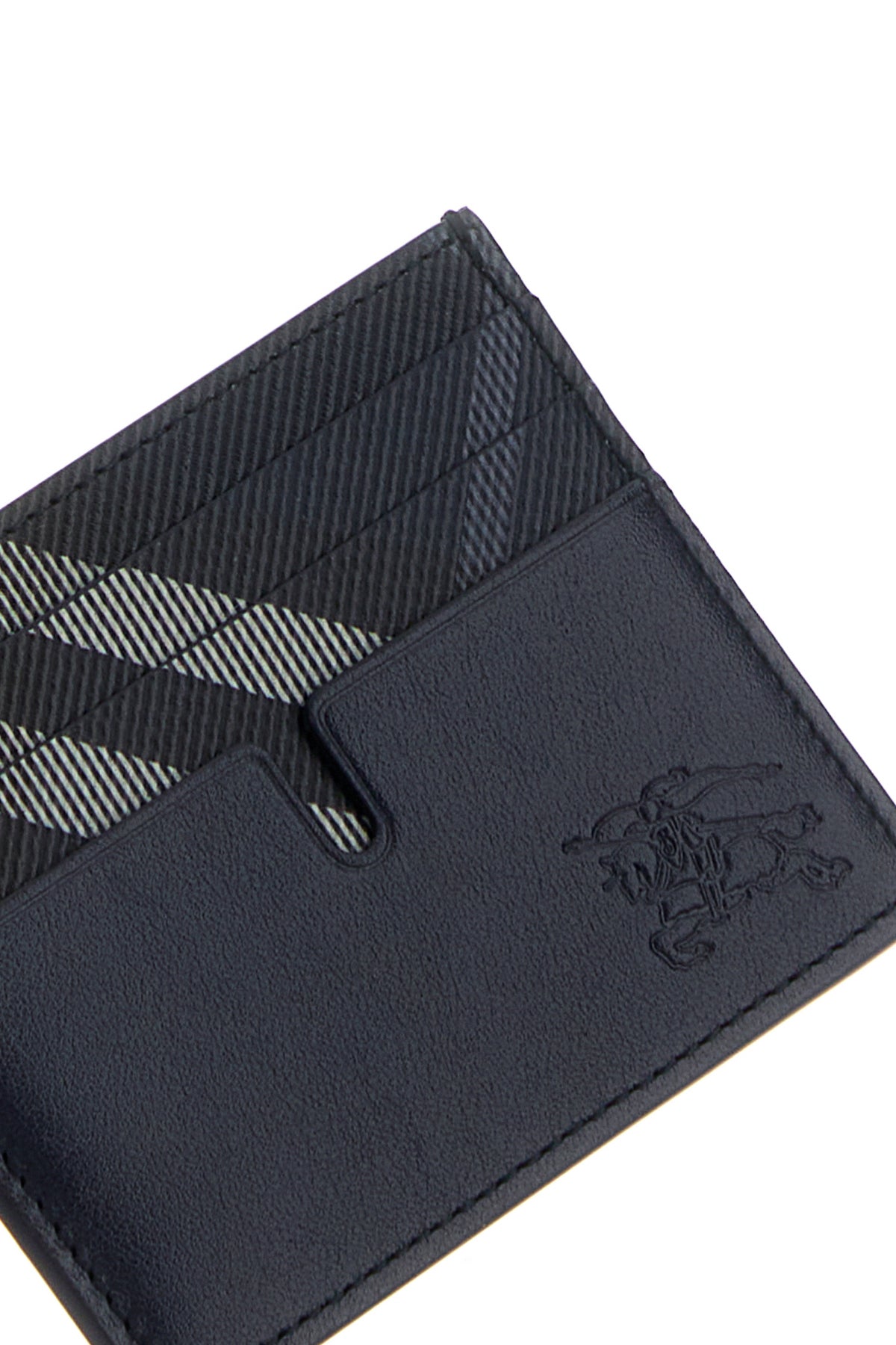 Card holder realized in leather with printed canvas insert at the top characterized by embossed Equestrian Knight motif at the front.