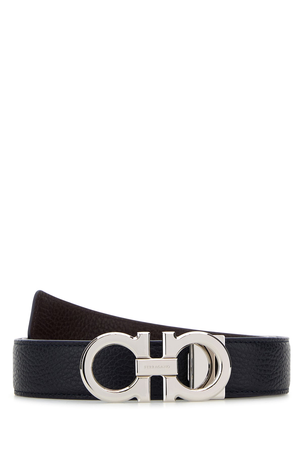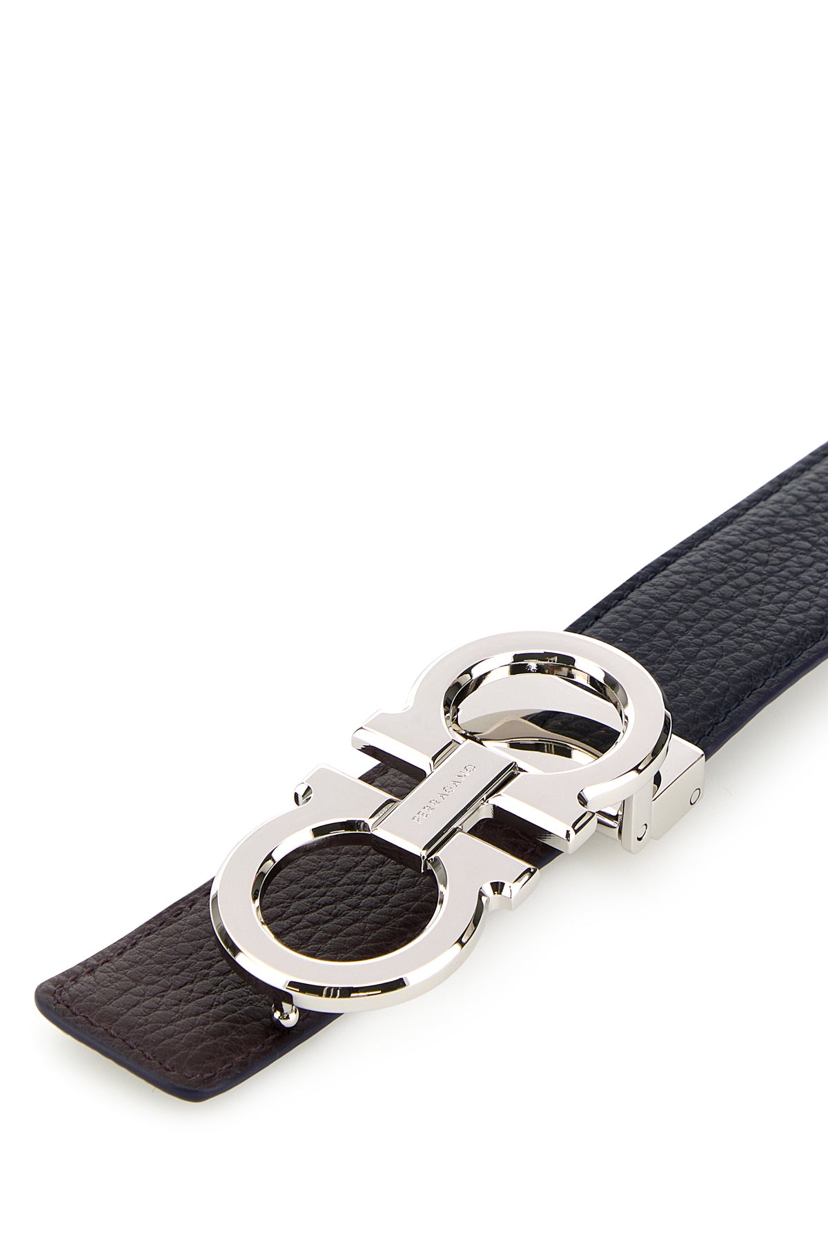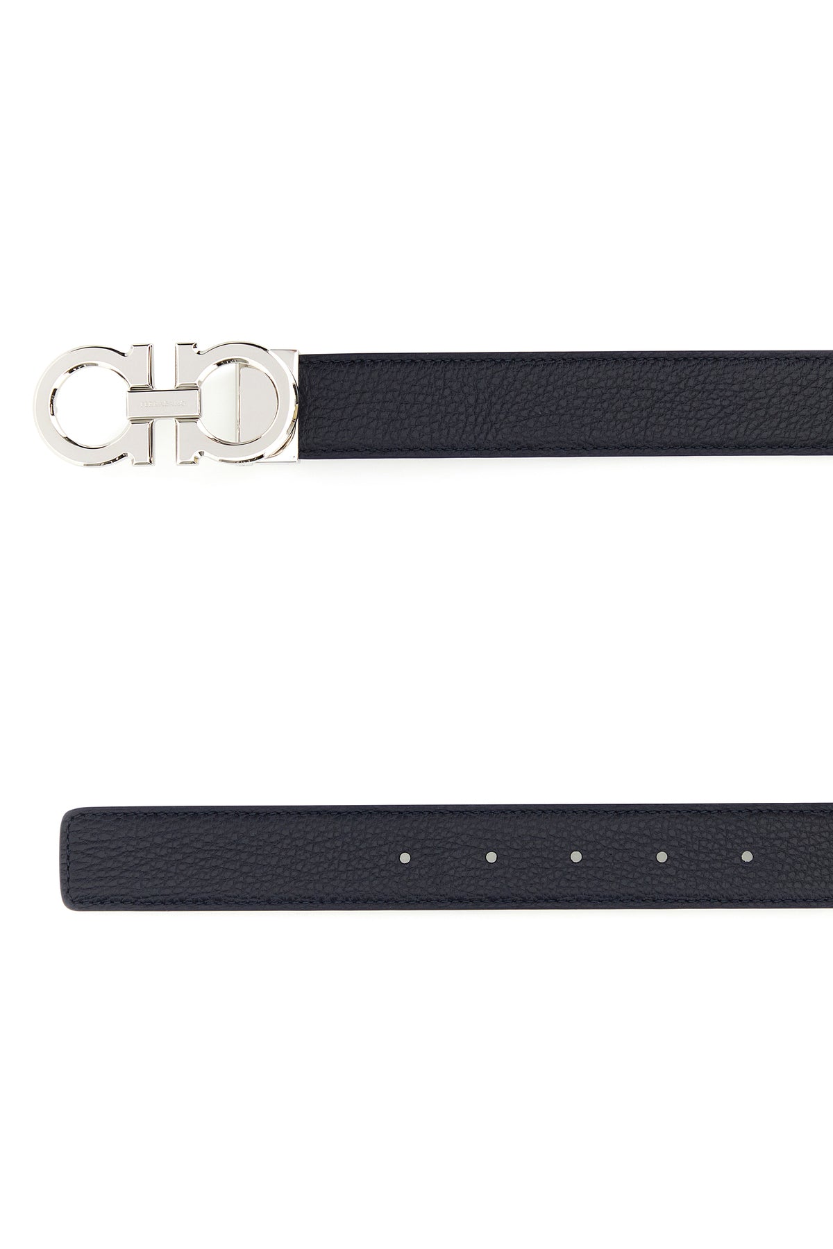 Reversible belt realized in pebble leather characterized by Gancini metal buckle.