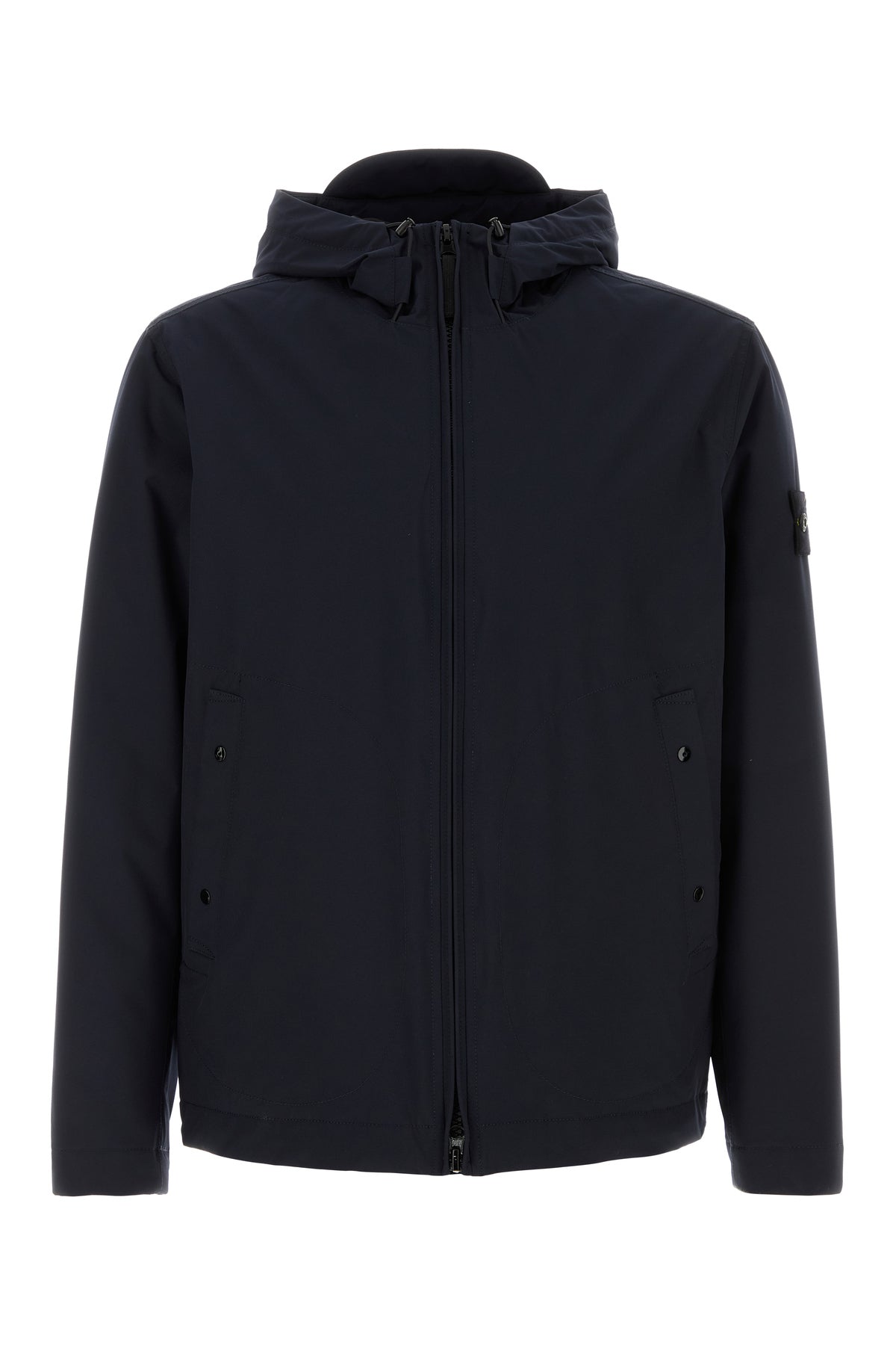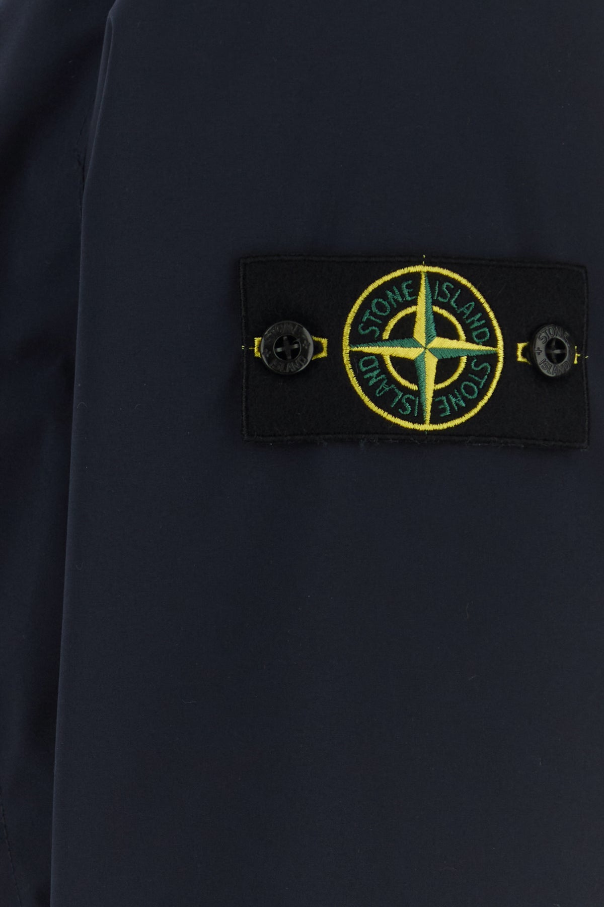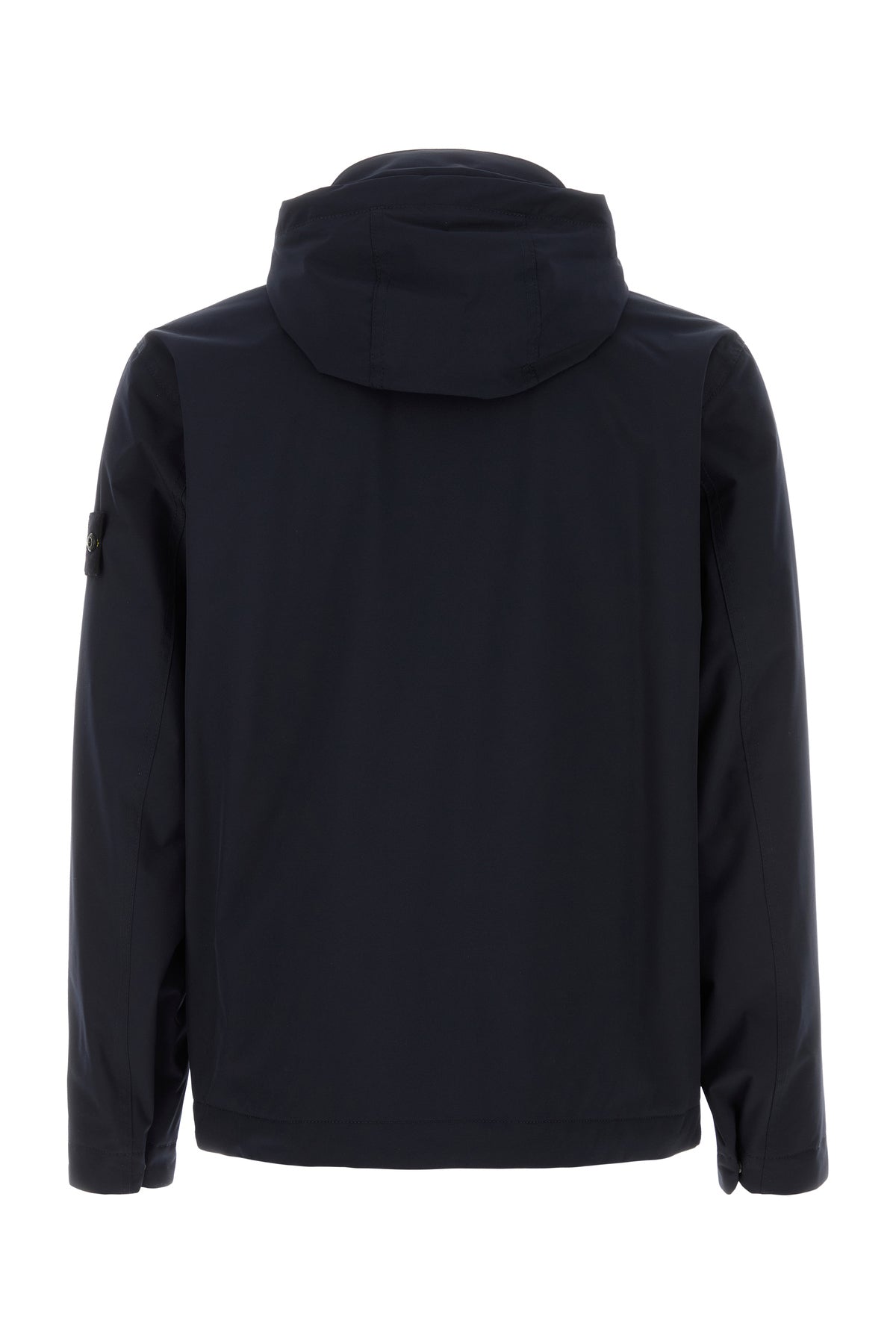 Jacket realized in stretch polyester enriched by detachable logoed label on the sleeve.