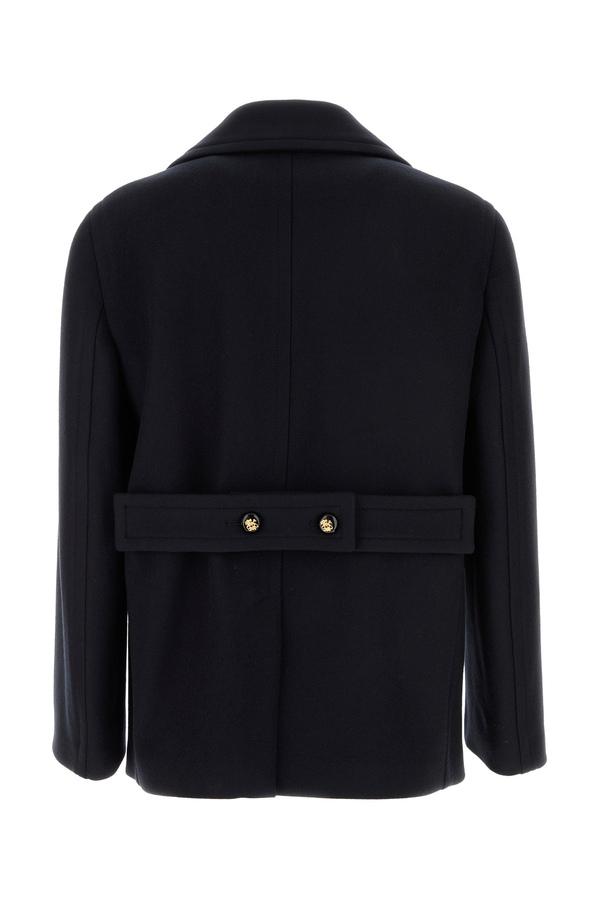 Short-cut coat realized in pure virgin wool characterized by jewel buttons closure.