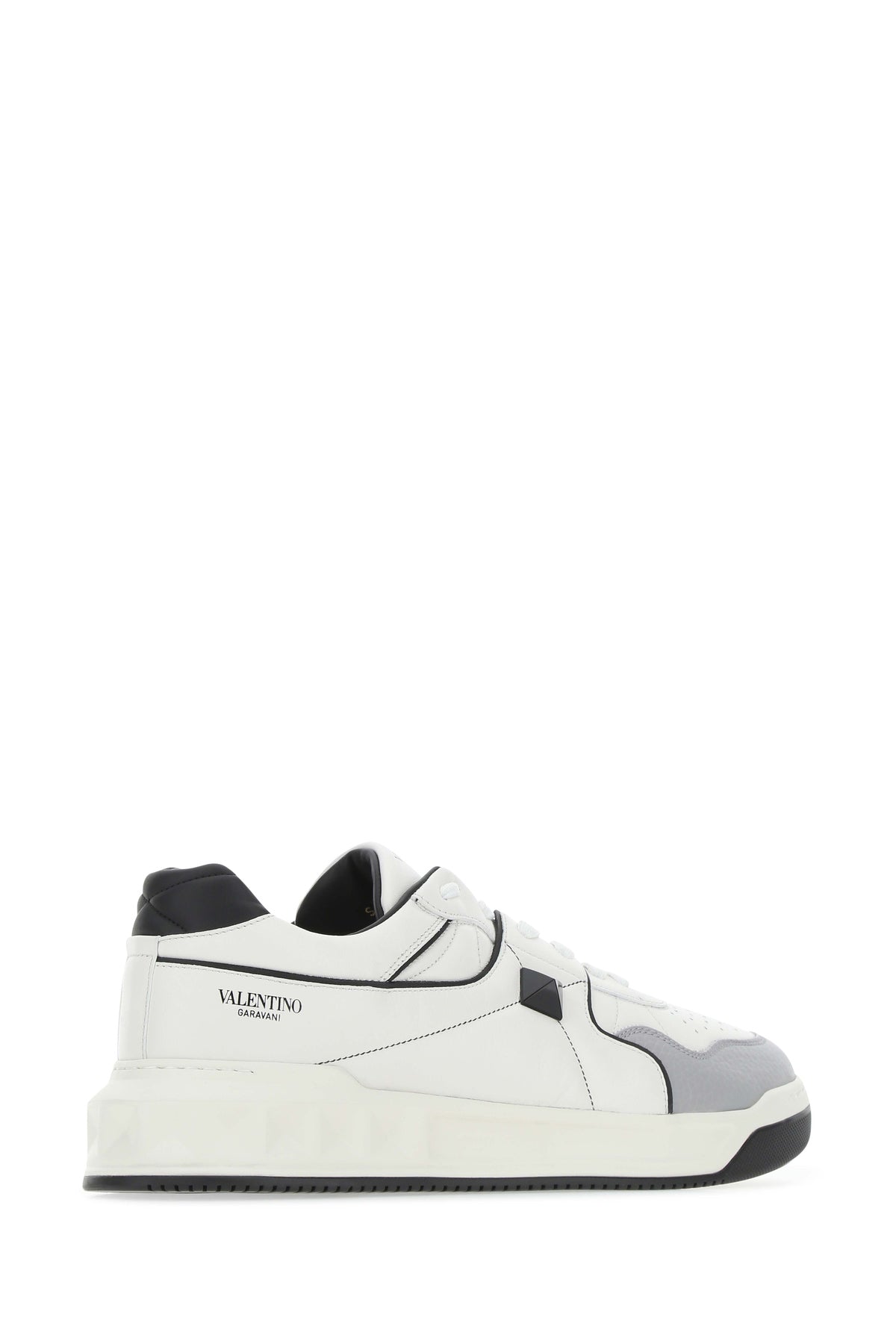 Sneakers realized in nappa leather characterize by contrasting printed logo on the side enriched by metal stud on the side.