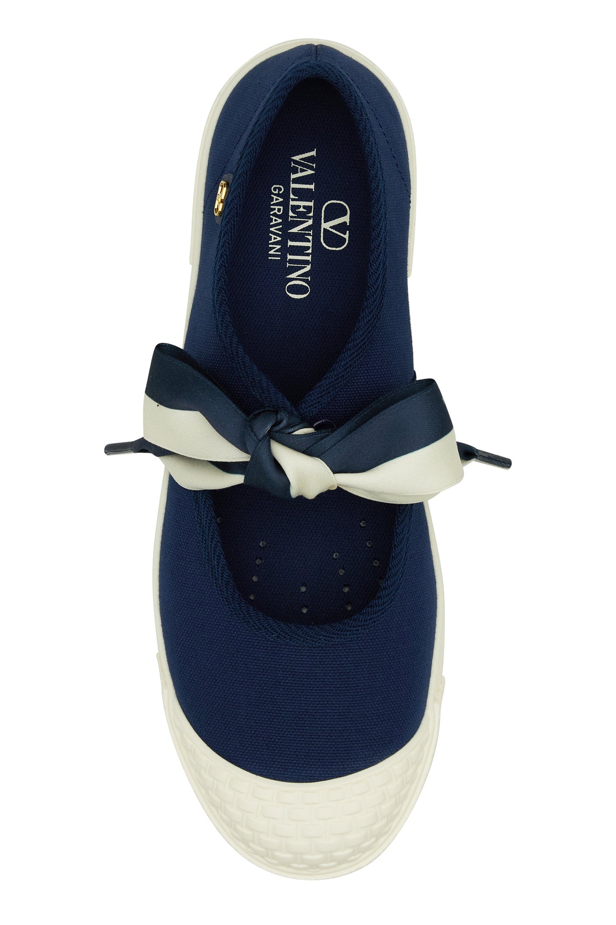 Slip ons realized in canvas enriched by metal VLogo detail on the side.