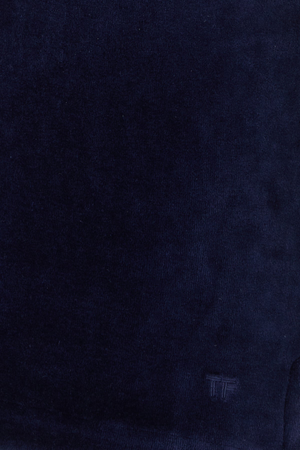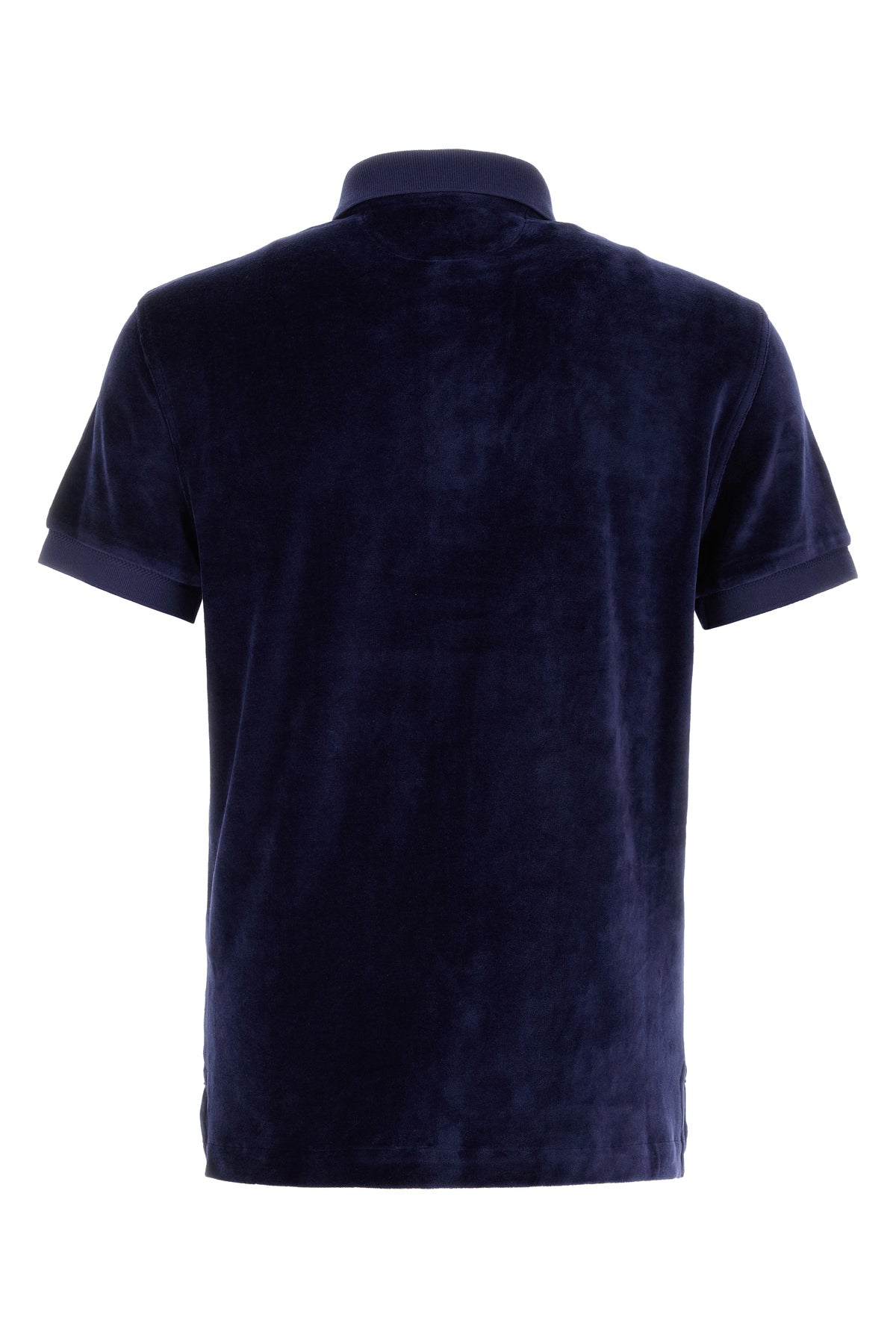 Polo shirt realized in velvet characterized by embroidered logo on the hemline.