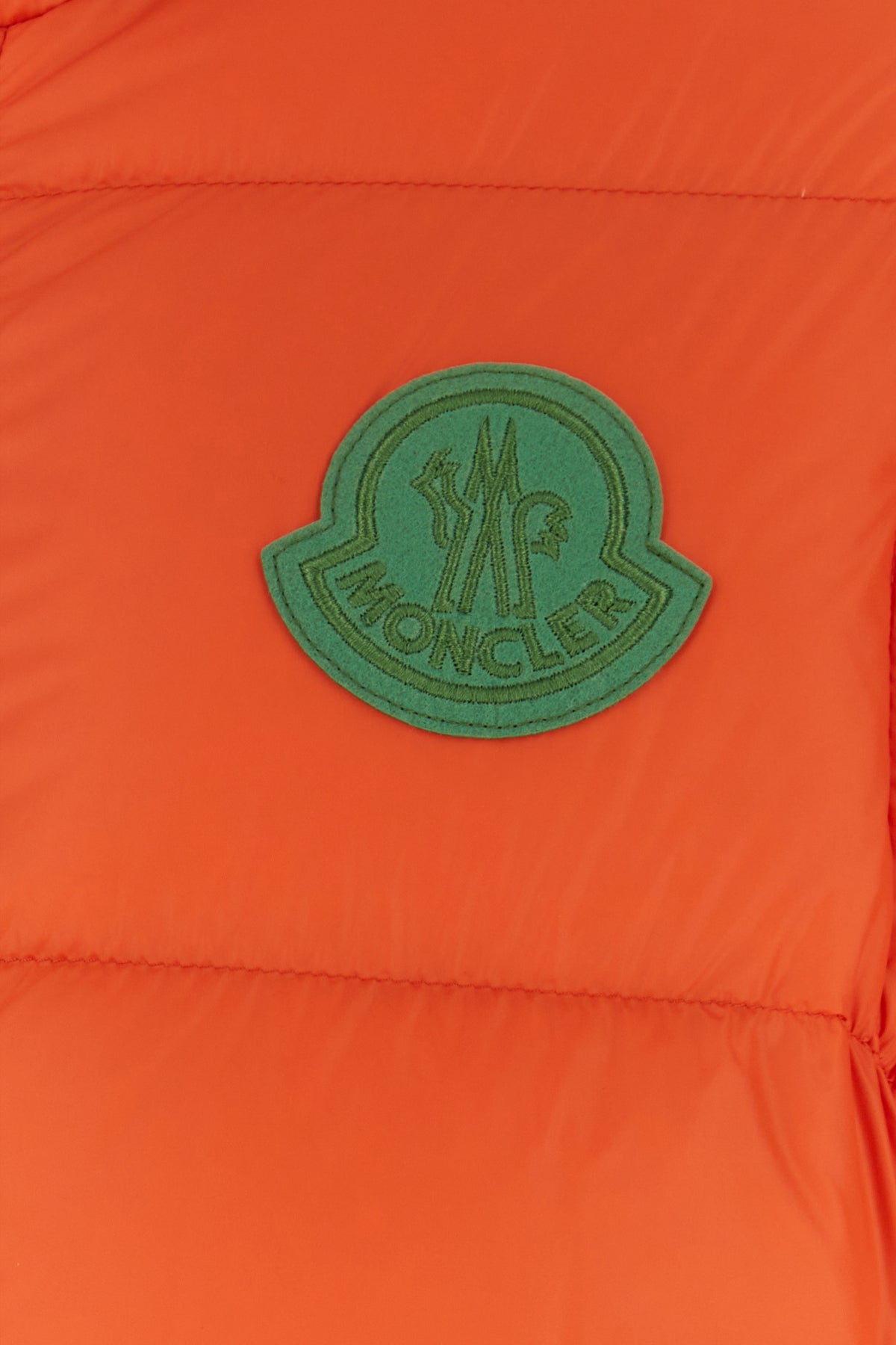 Down jacket realized in quilted nylon enriched by contrasting logoed patch on the chest.