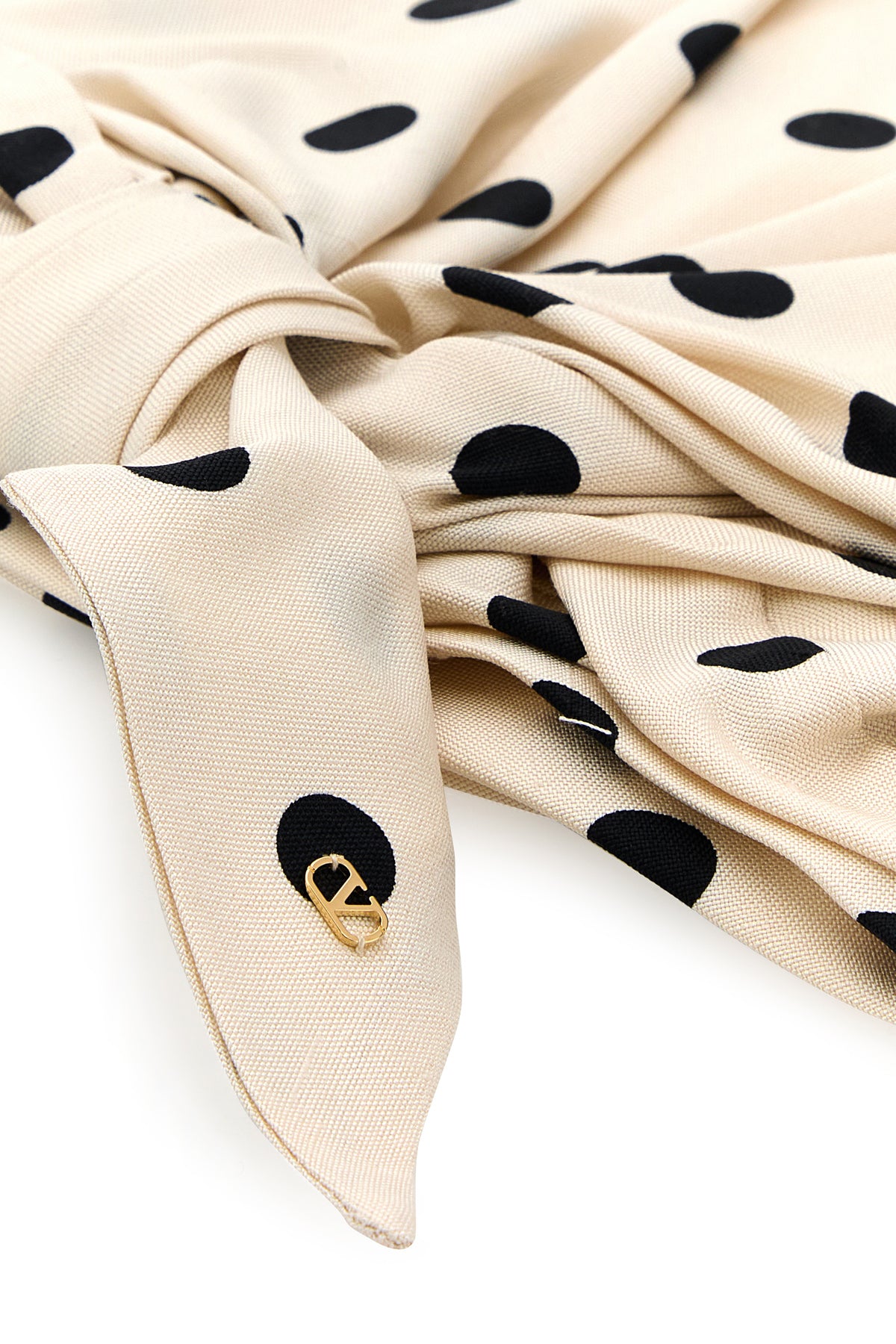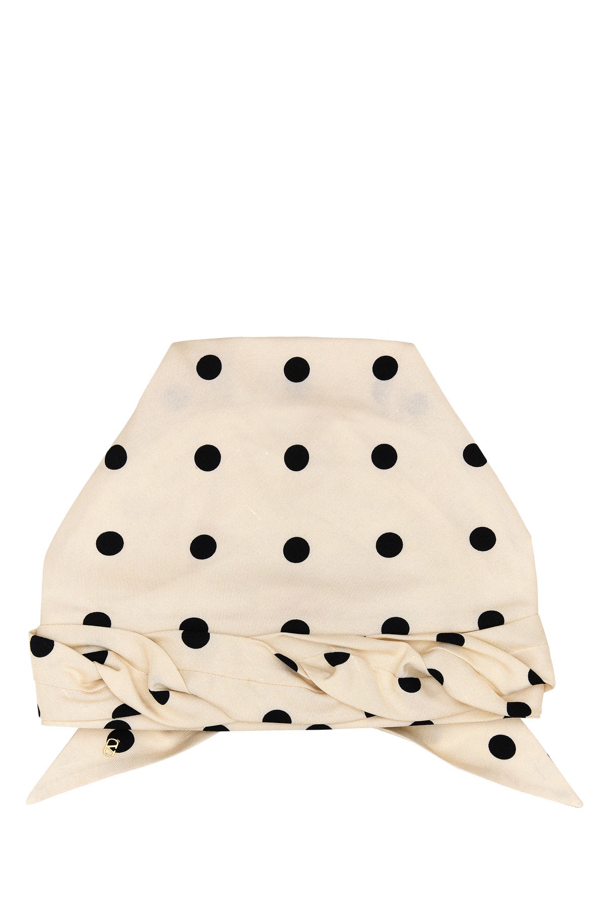 Turban realized in pure silk satin characterized by polka-dots print on the entire surface enriched by metal VLogo at the back.