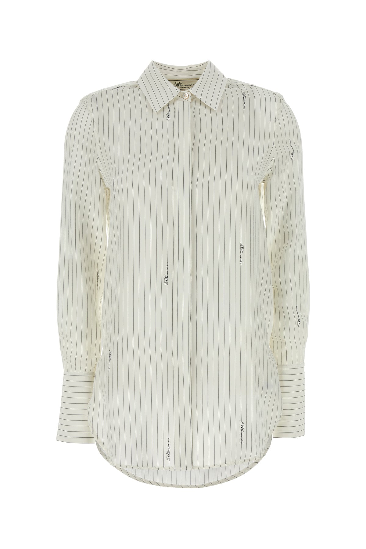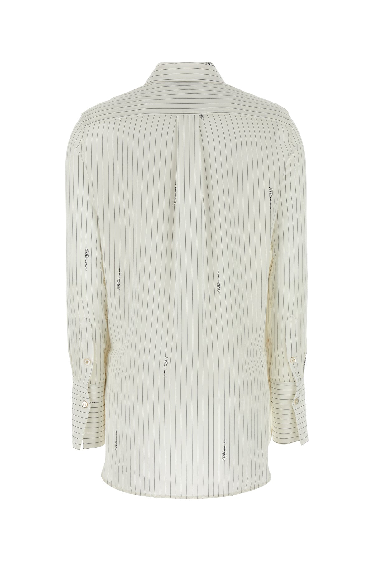 Shirt realized in pure silk characterized by logoed striped print on the entire surface.