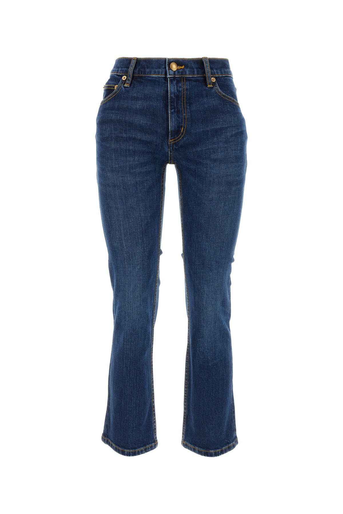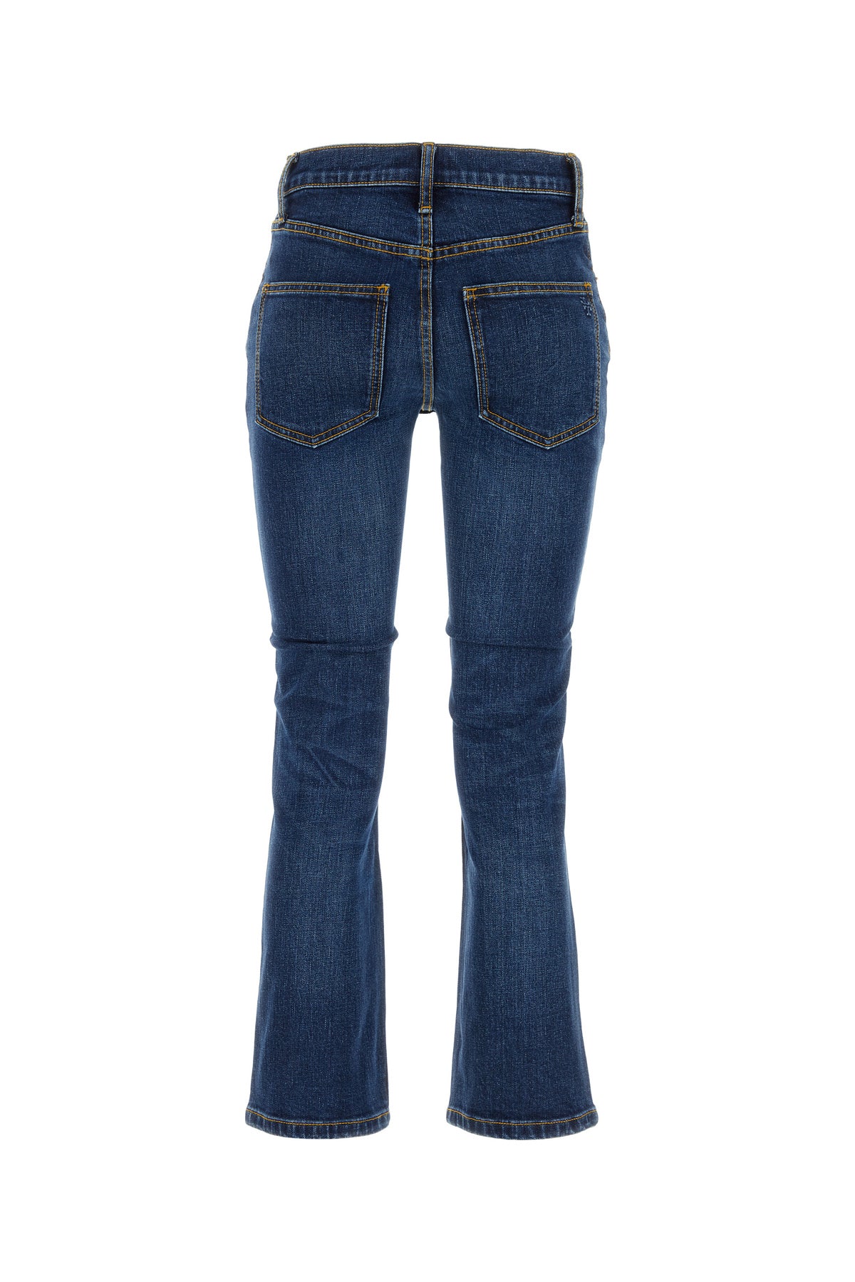 Jeans realized in stretch cotton denim characterized by embossed logo at the back.