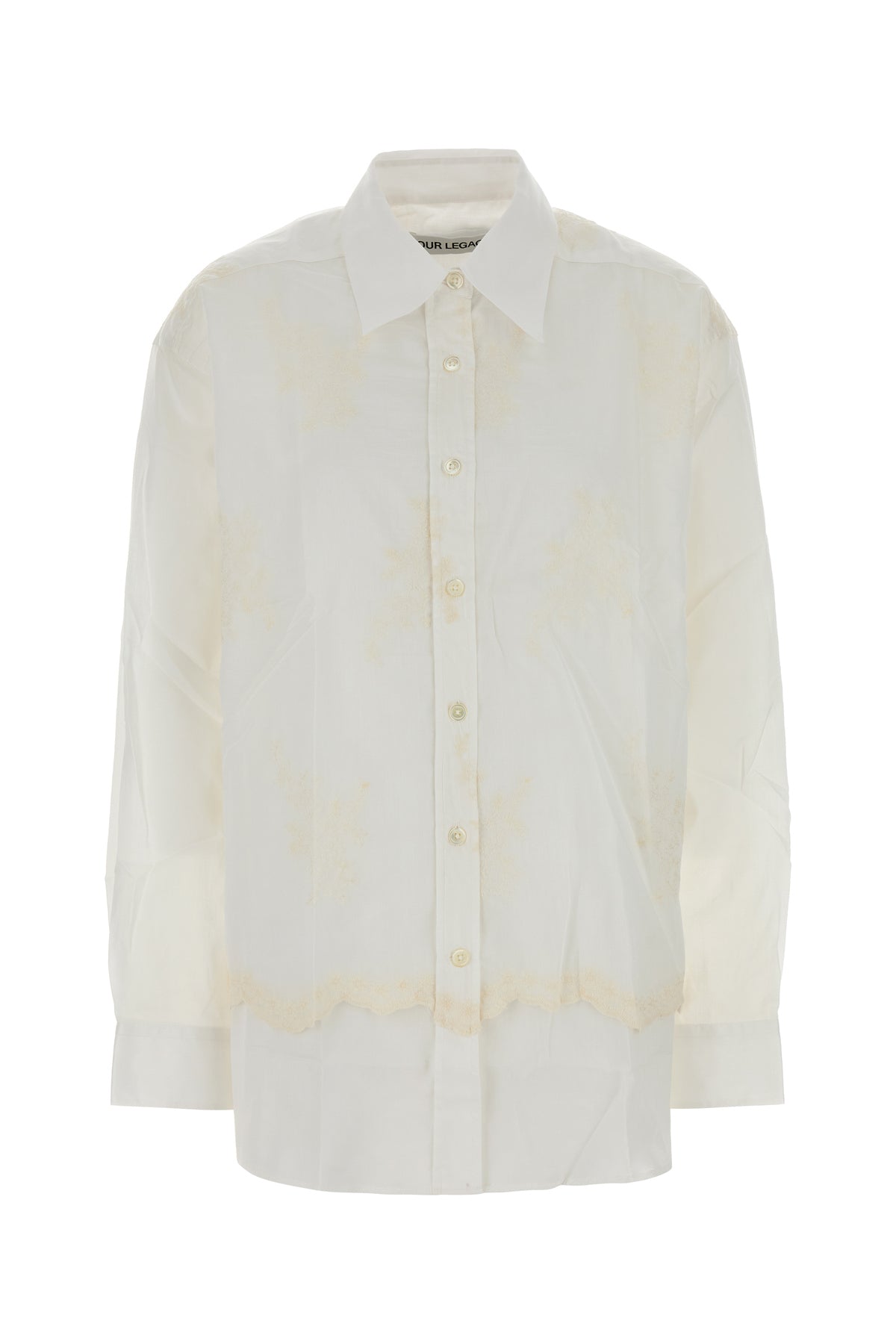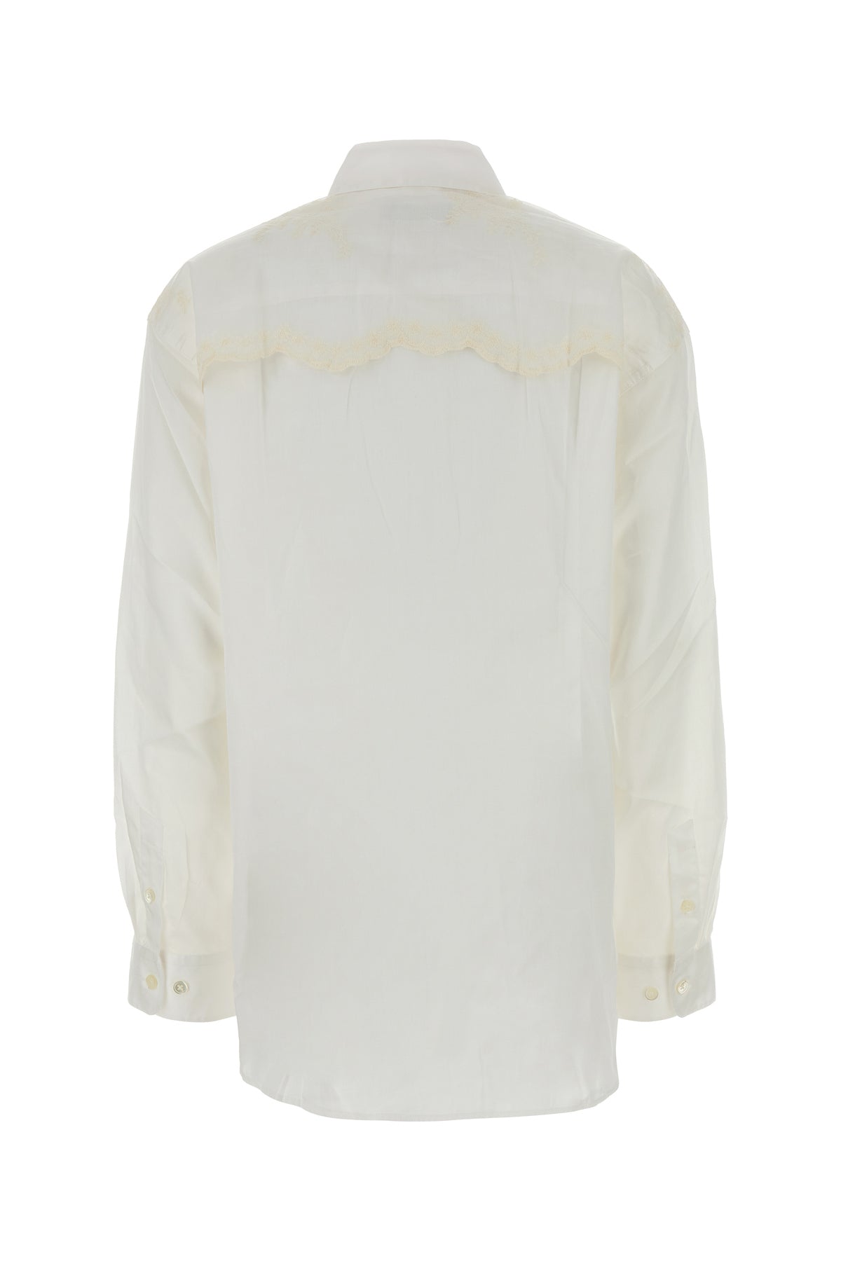 Oversize shirt realized in pure cotton characterized by floral embroideries at the front and at the back.
