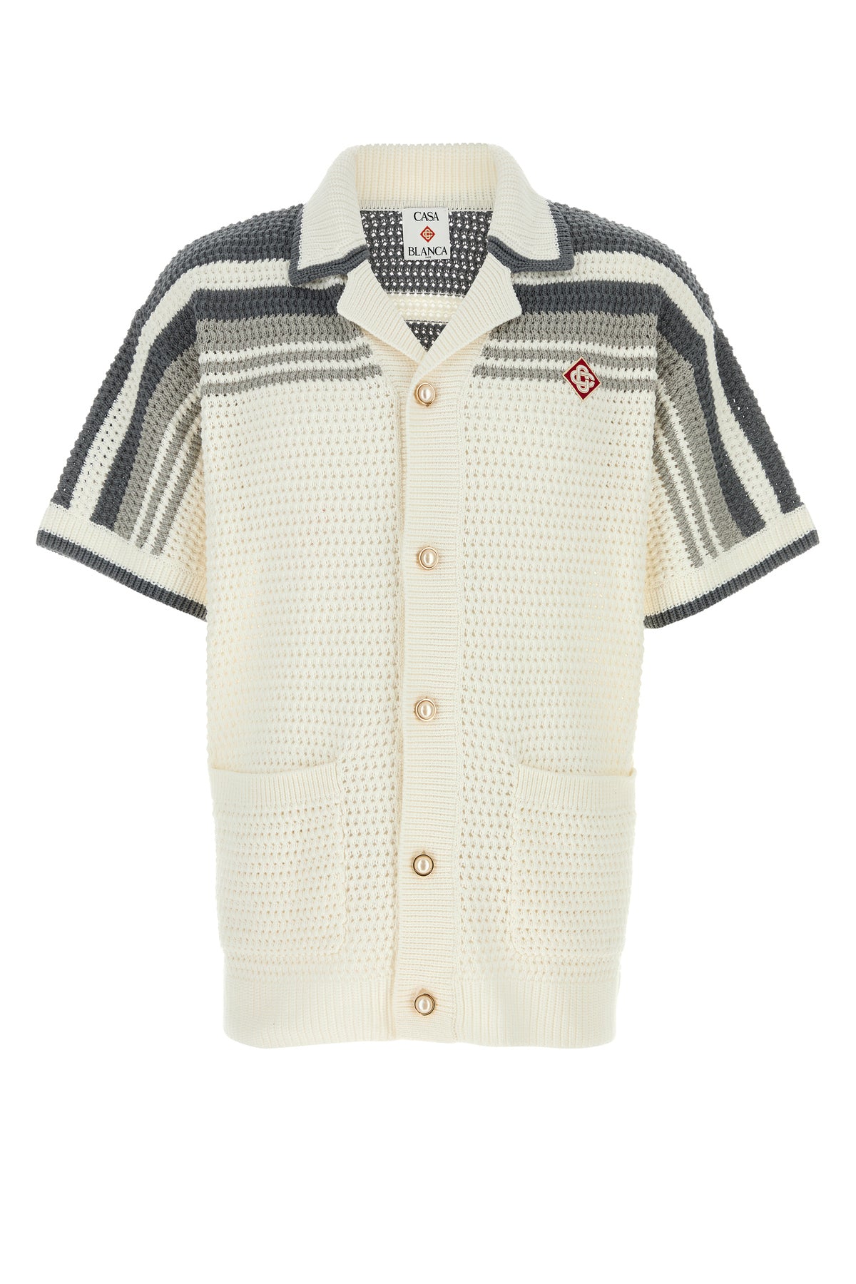 Short-sleeve shirt realized in pure cotton crochet enriched by logoed patch on the chest.