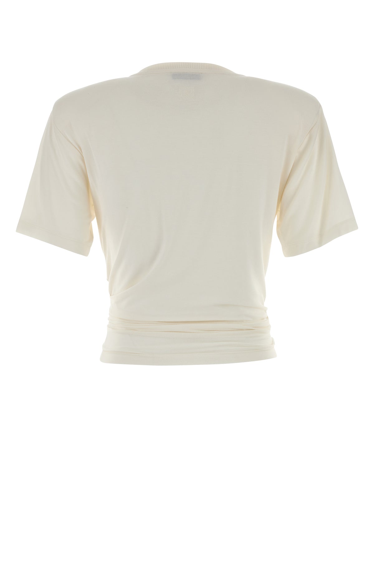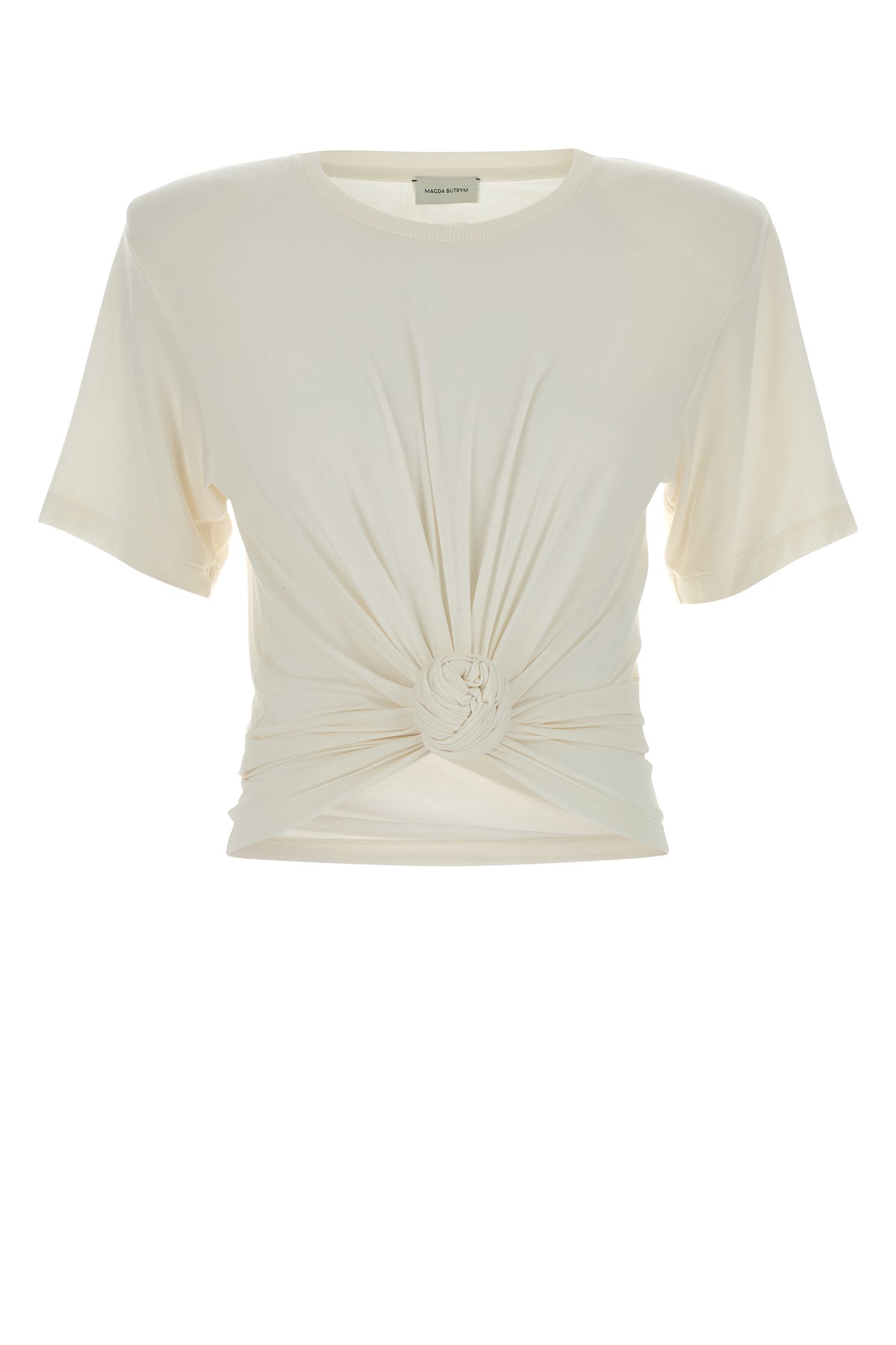 T-shirt realized in stretch cirulose enriched by floral patch on the hemline.