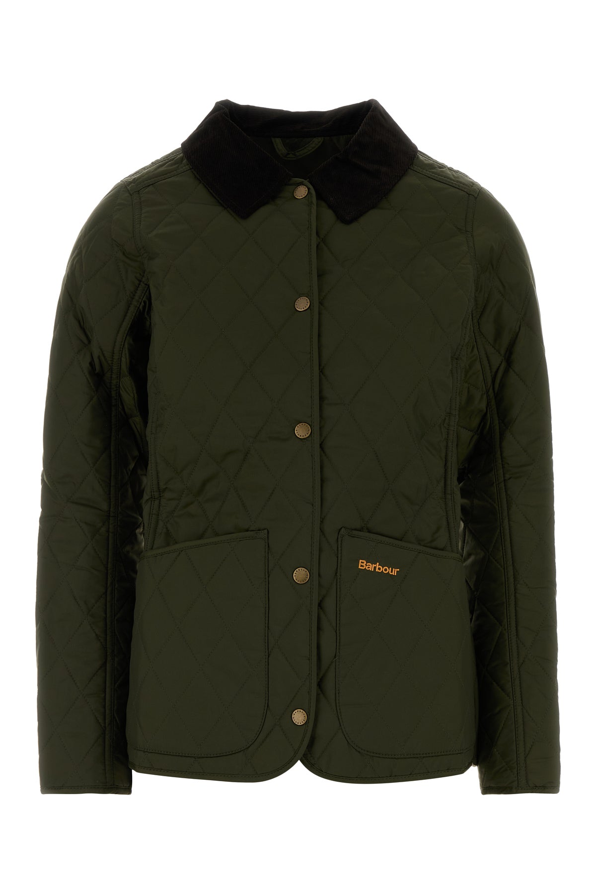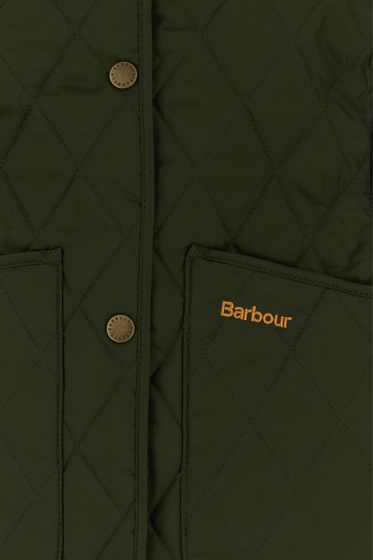 Slightly padded jacket realized in quilted nylon characterized by contrasting embroidered logo at the front.