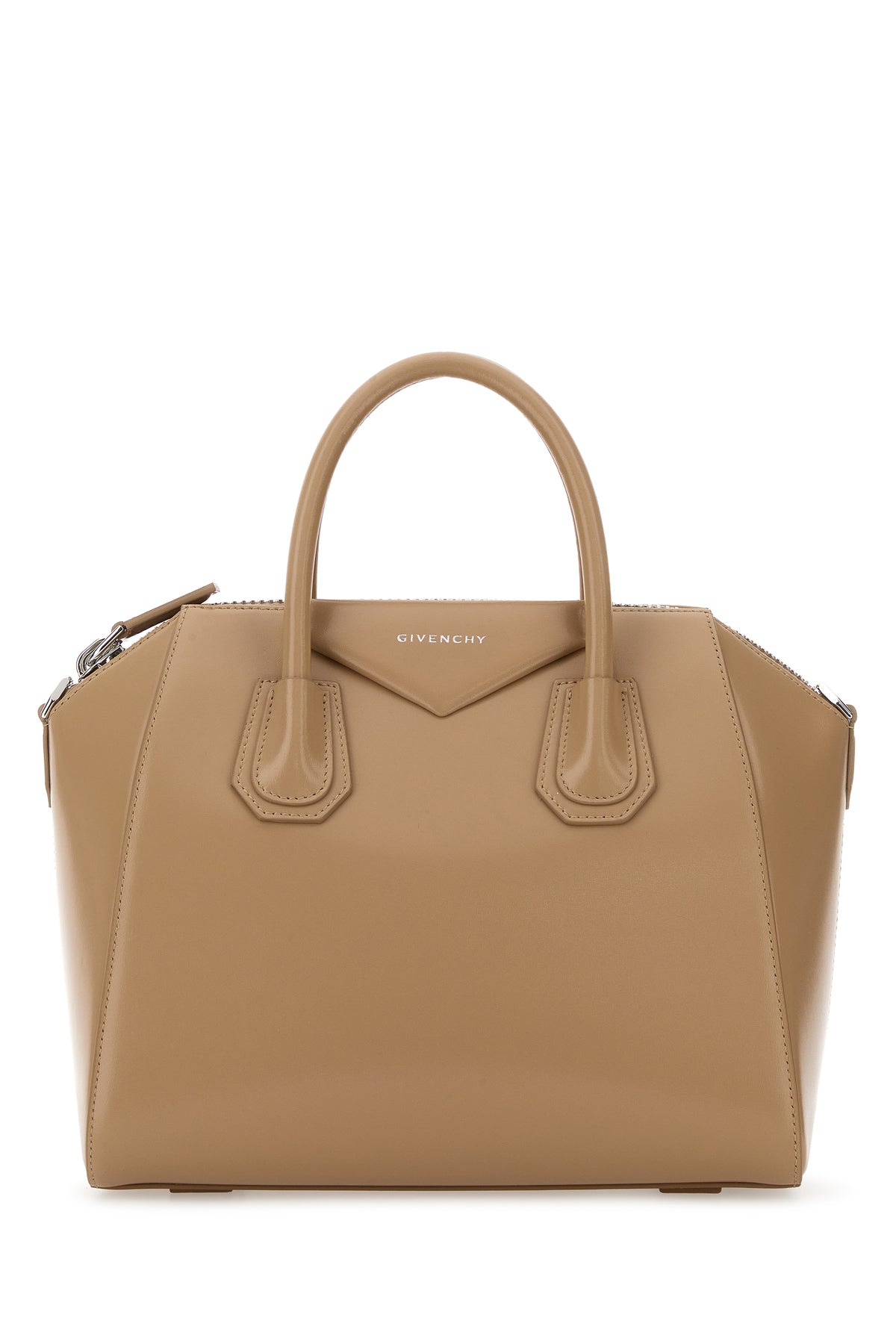 Handbag realized in smooth calf leather characterized by laminated printed logo at the front.