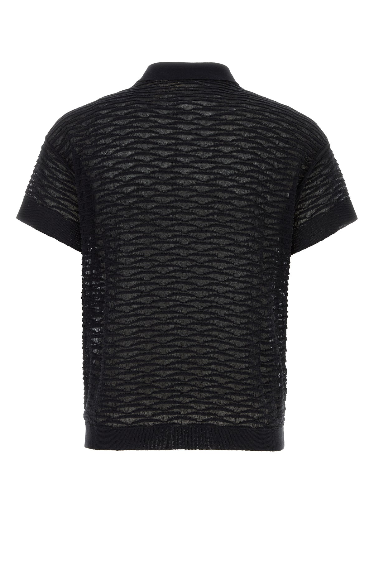 See-thought polo shirt realized in cotton blend charactered by peculiar tonal embroidery on the entire surface.