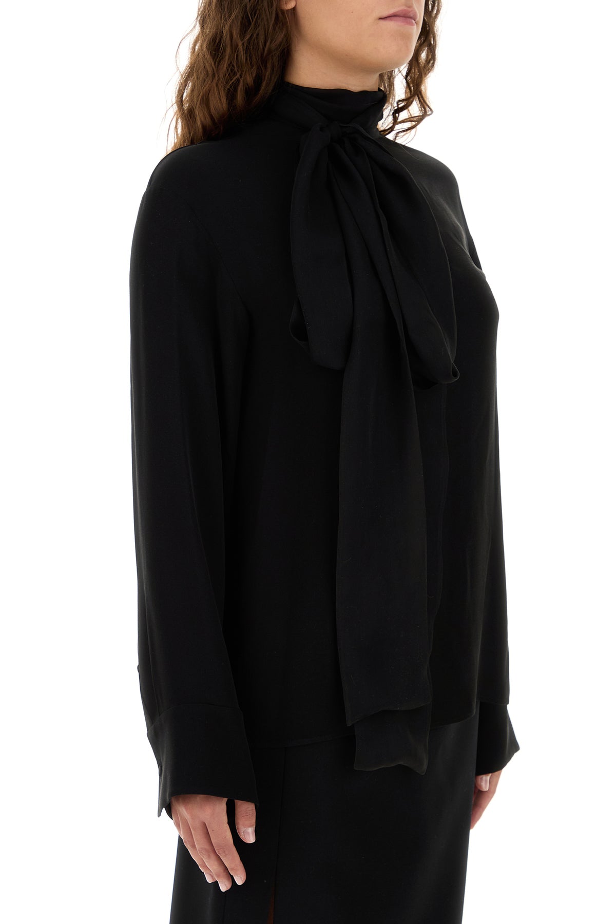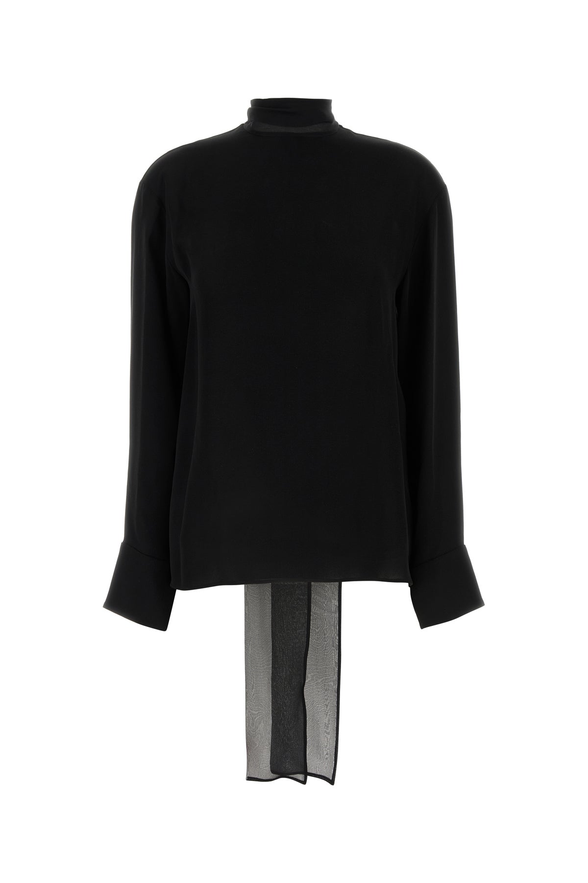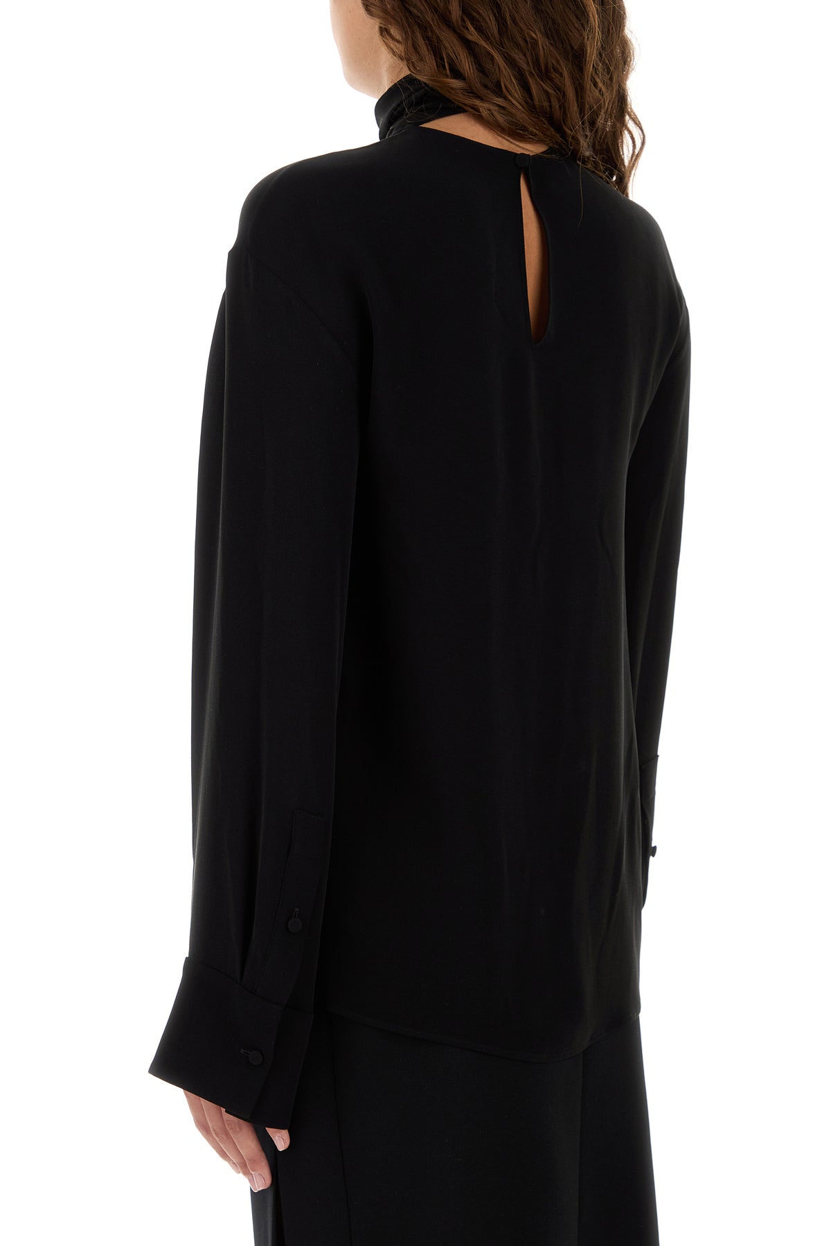 Blouse realized in pure silk georgette characterized by laces to tie at the neck.