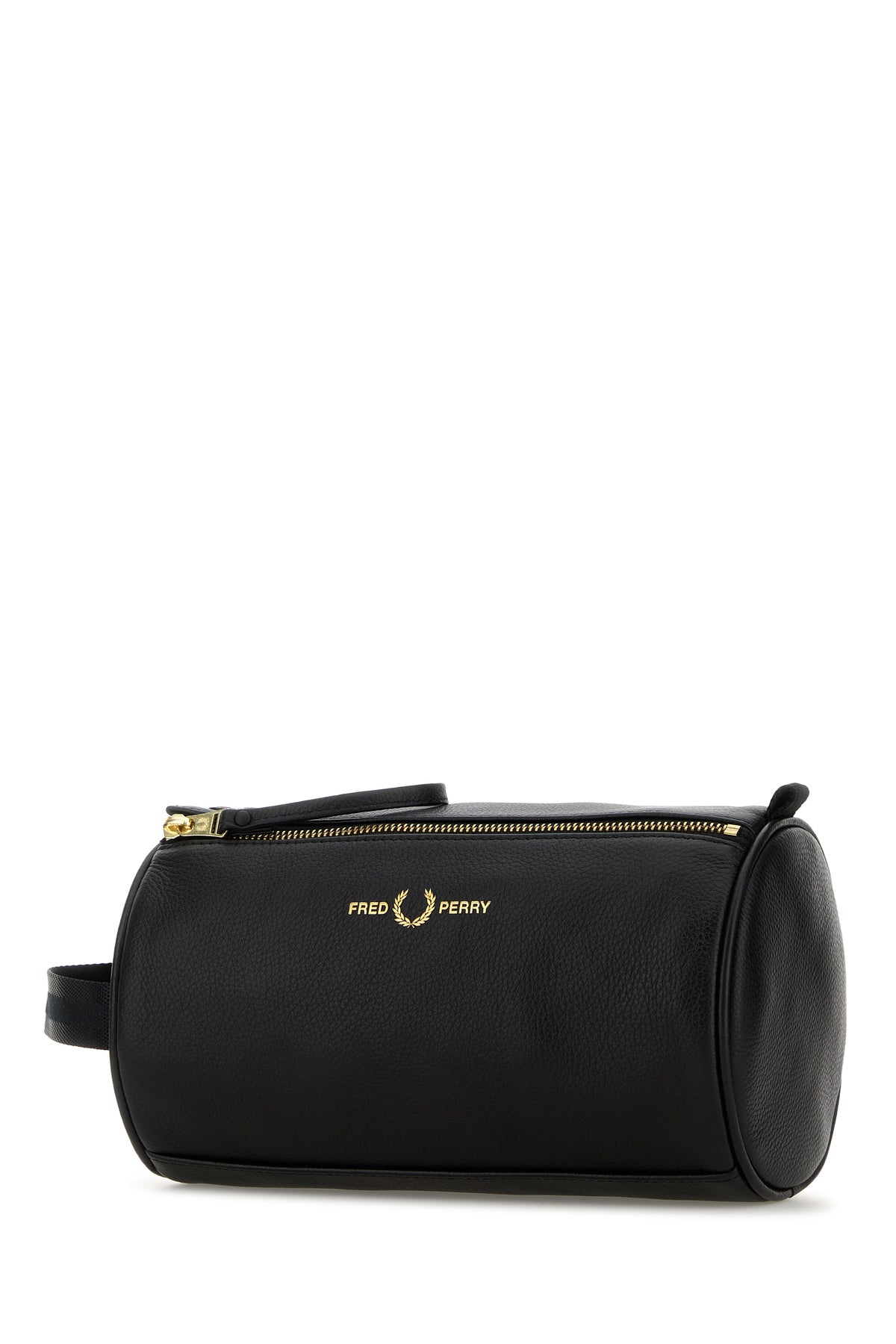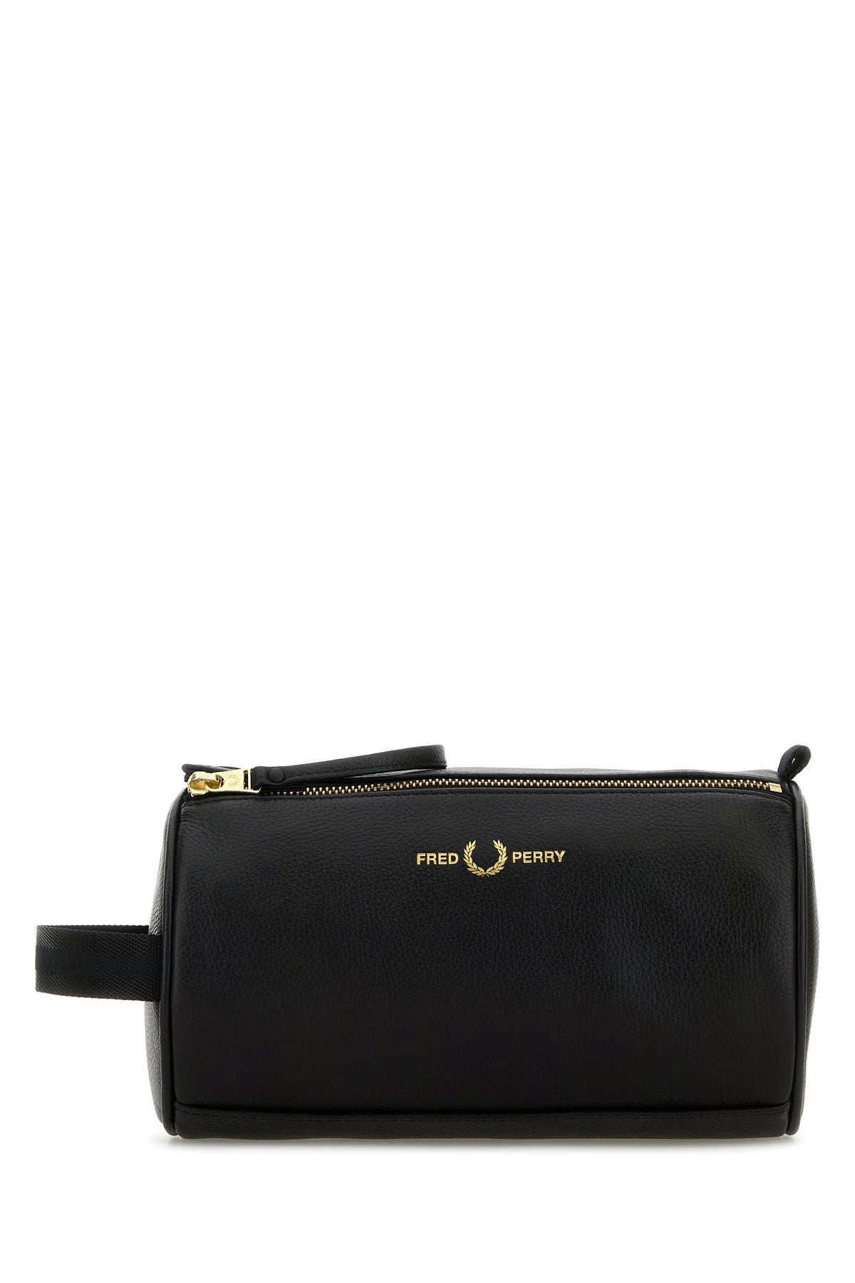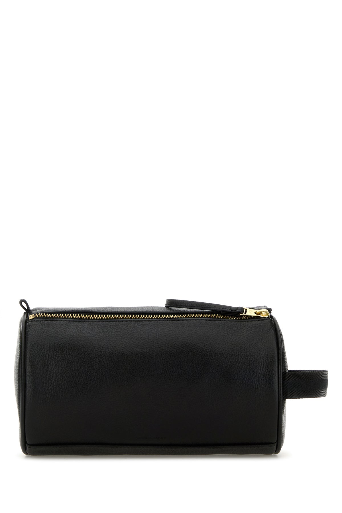 Beauty case realized in pebble leather characterized by laminated printed logo at the front.