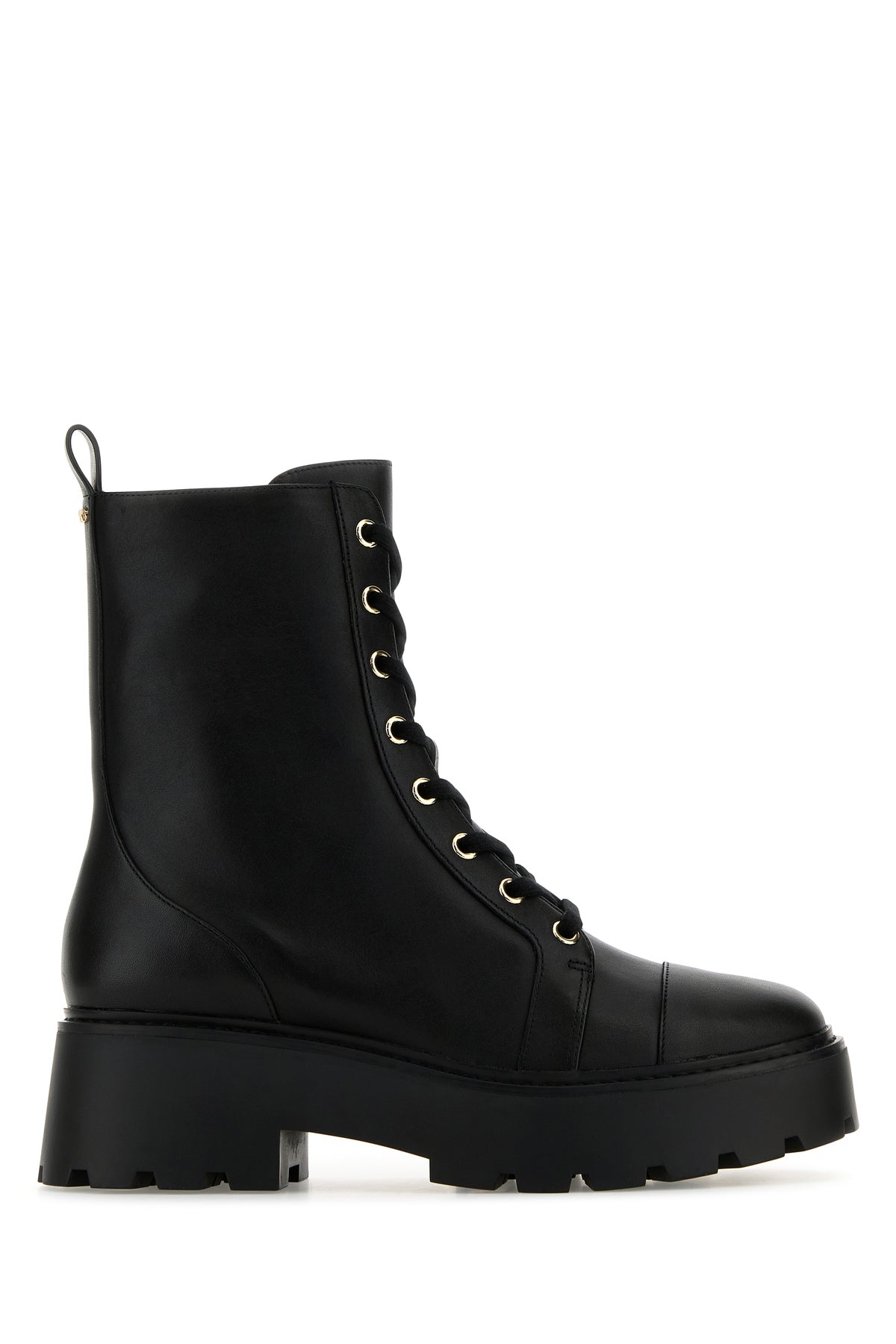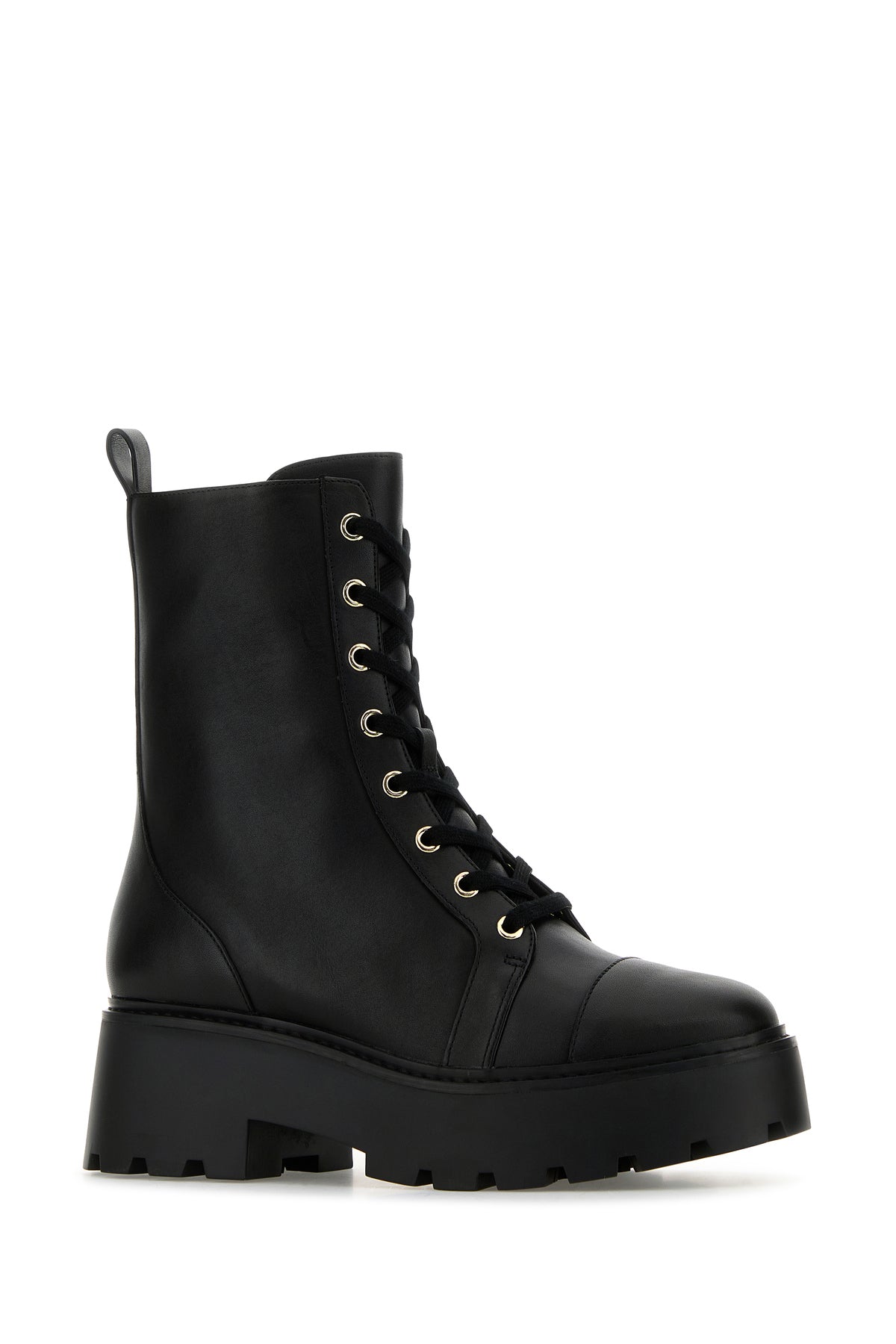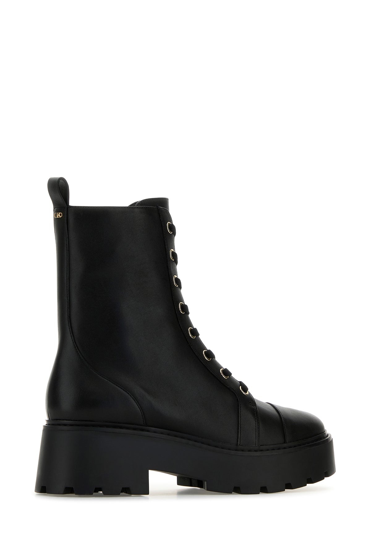 Ankle boots realized in smooth leather enriched by metal logoed detail at the back.