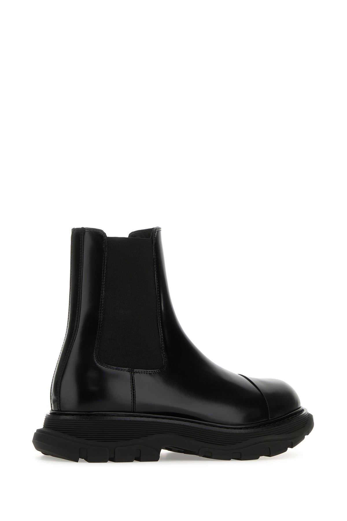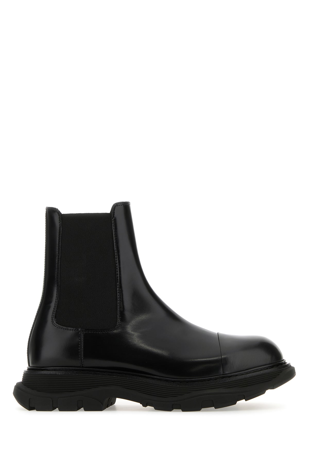 Ankle boots realized in smooth calf leather with elastic fabric inserts on the sides.