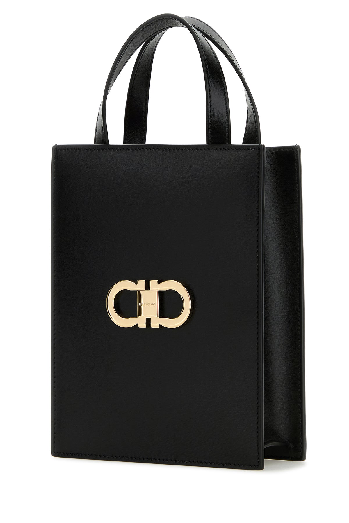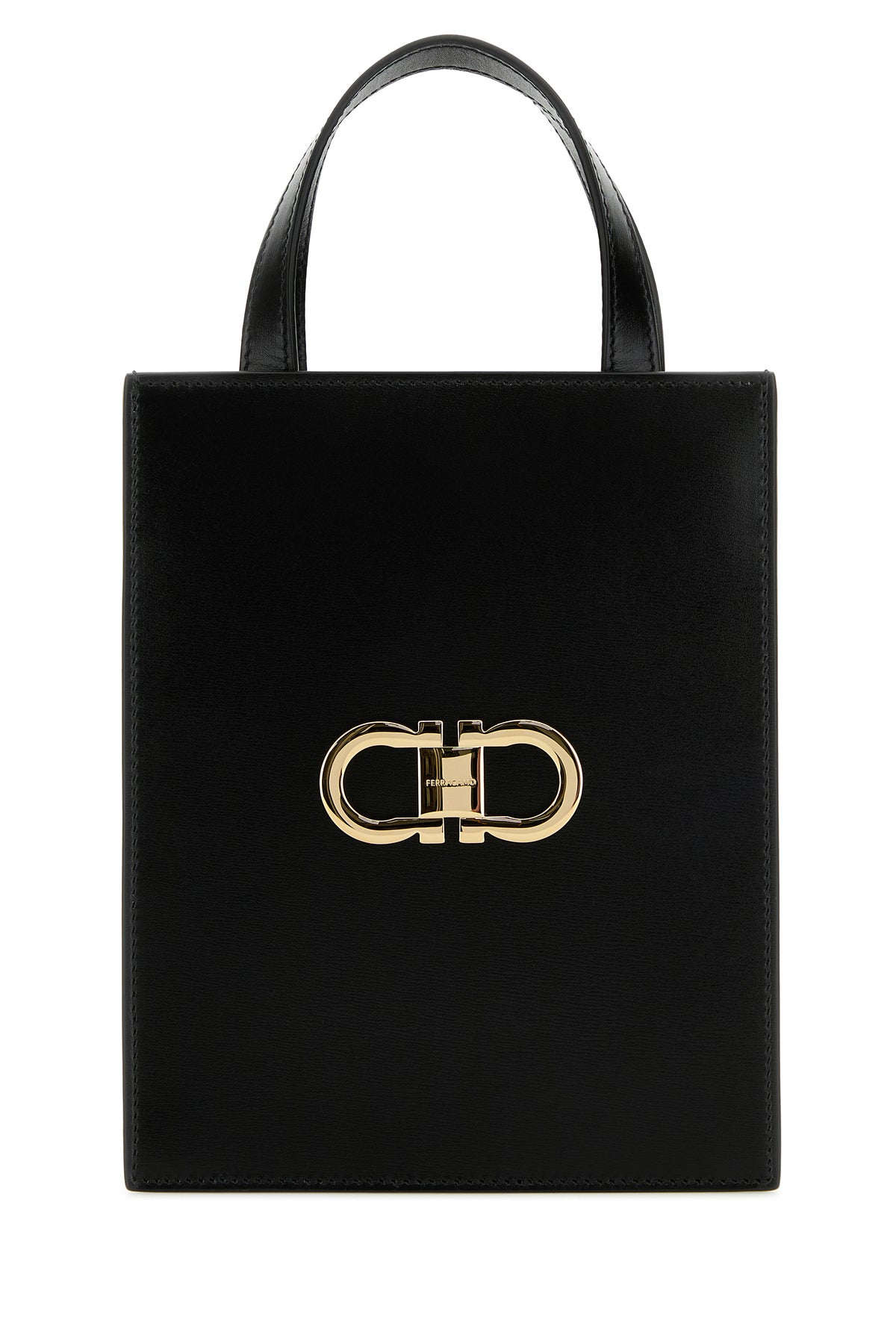 Handbag realized in slightly pebble leather enriched by metal Gancini detail at the front.