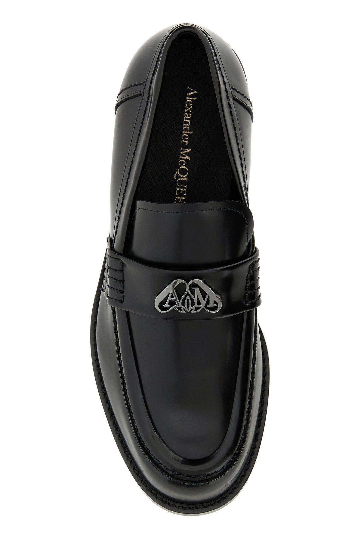 Loafers realized in smooth leather enriched by metal logoed detail on the vamp.