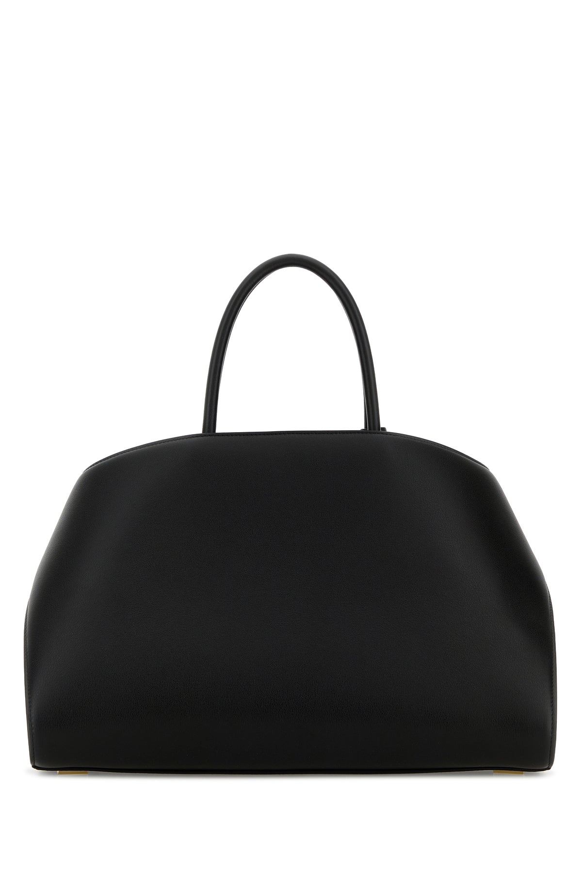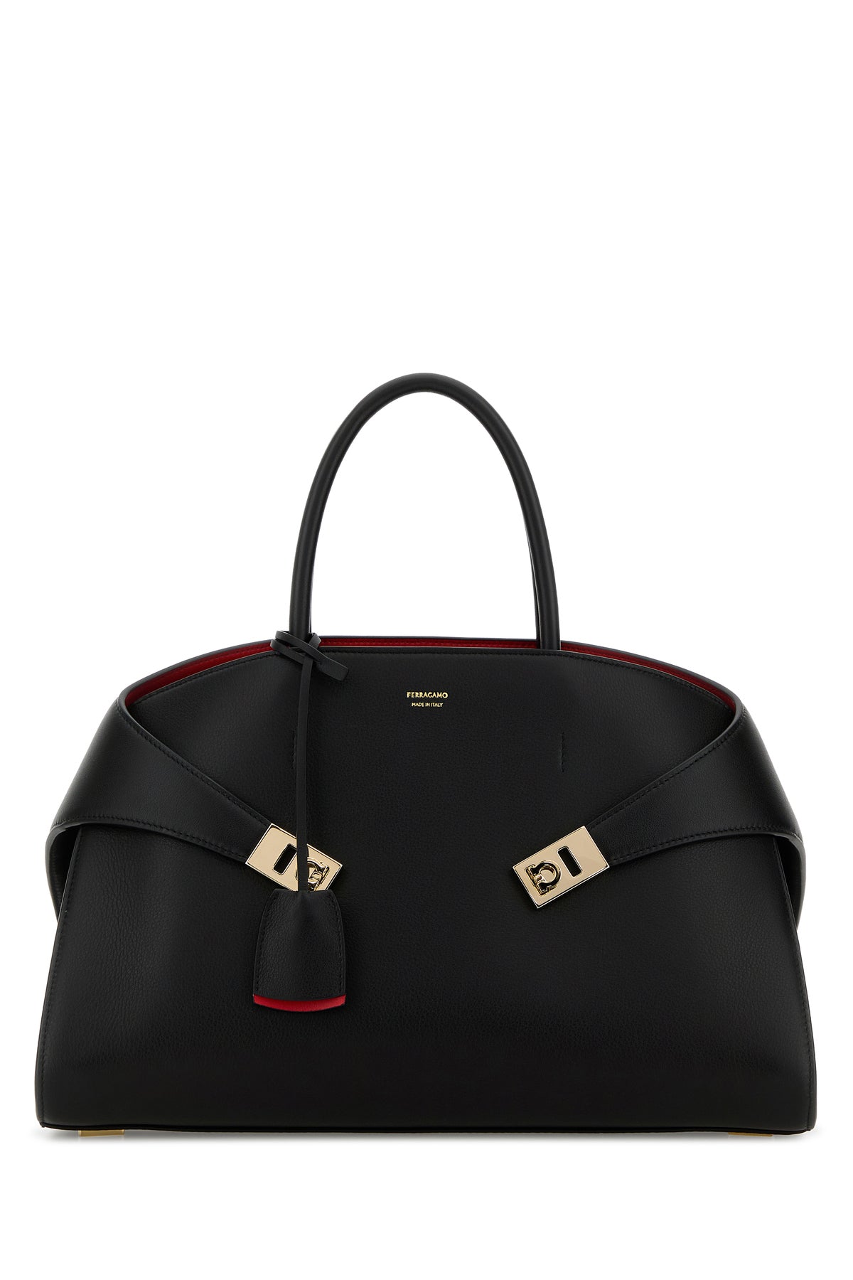Handbag realized in pebble calf leather characterized by printed laminated logo at the front enriched by detachable tonal leather accessory.