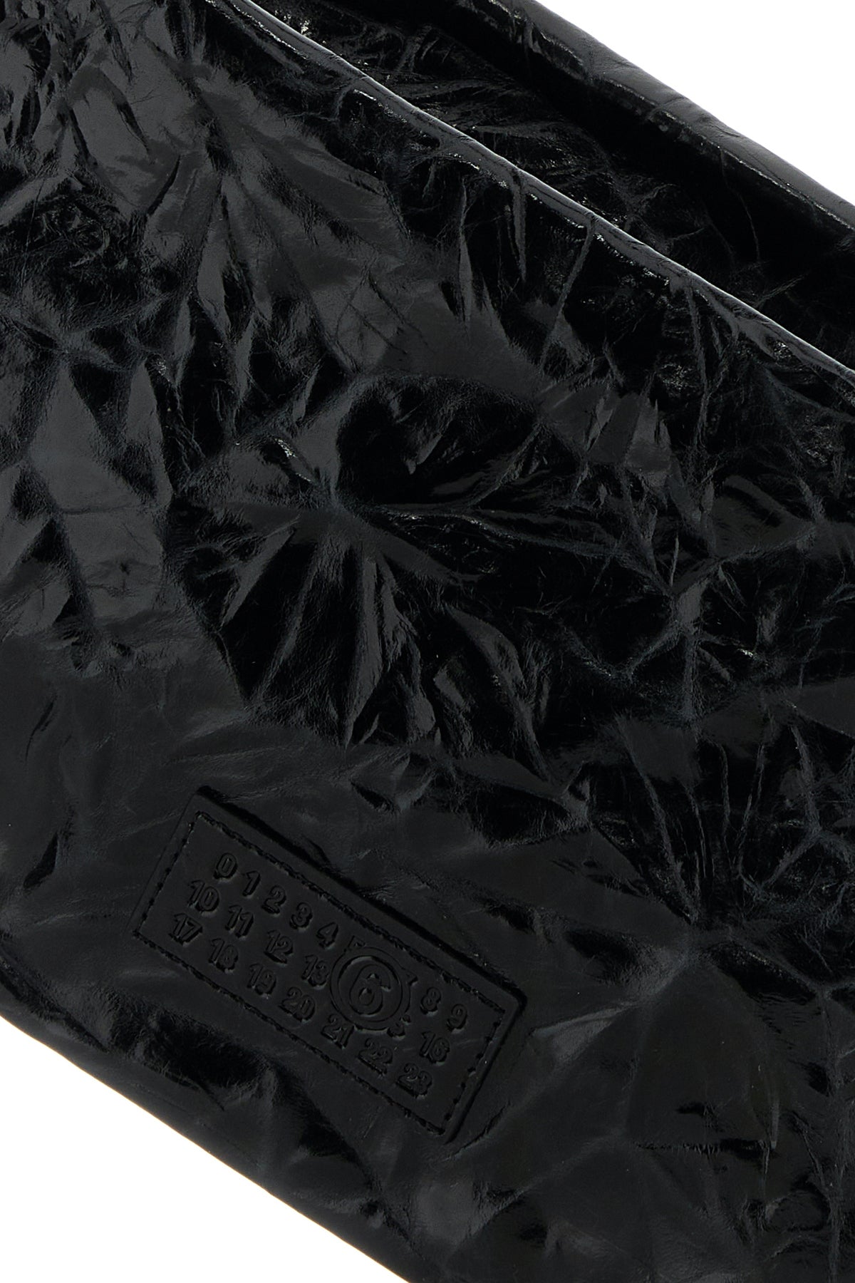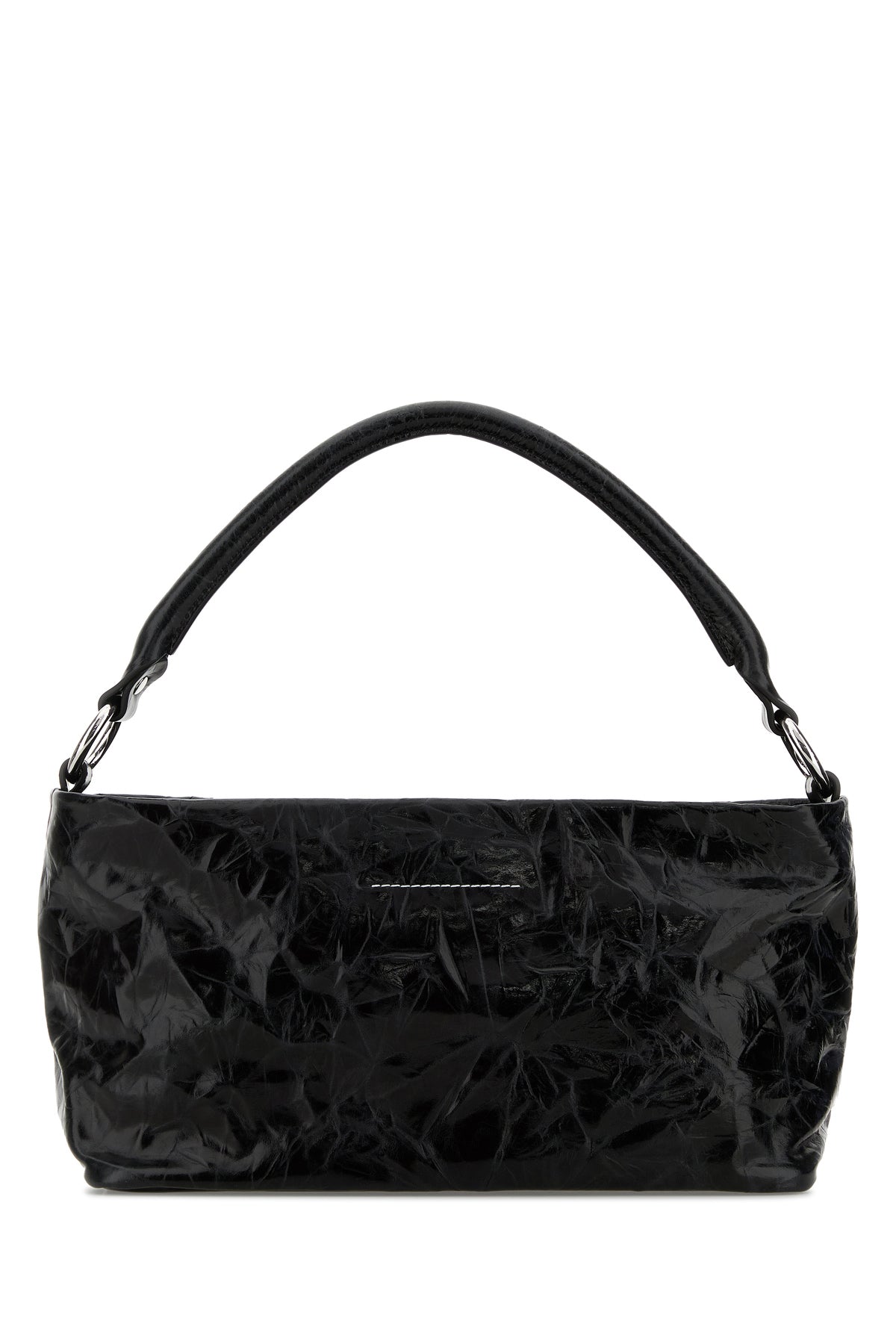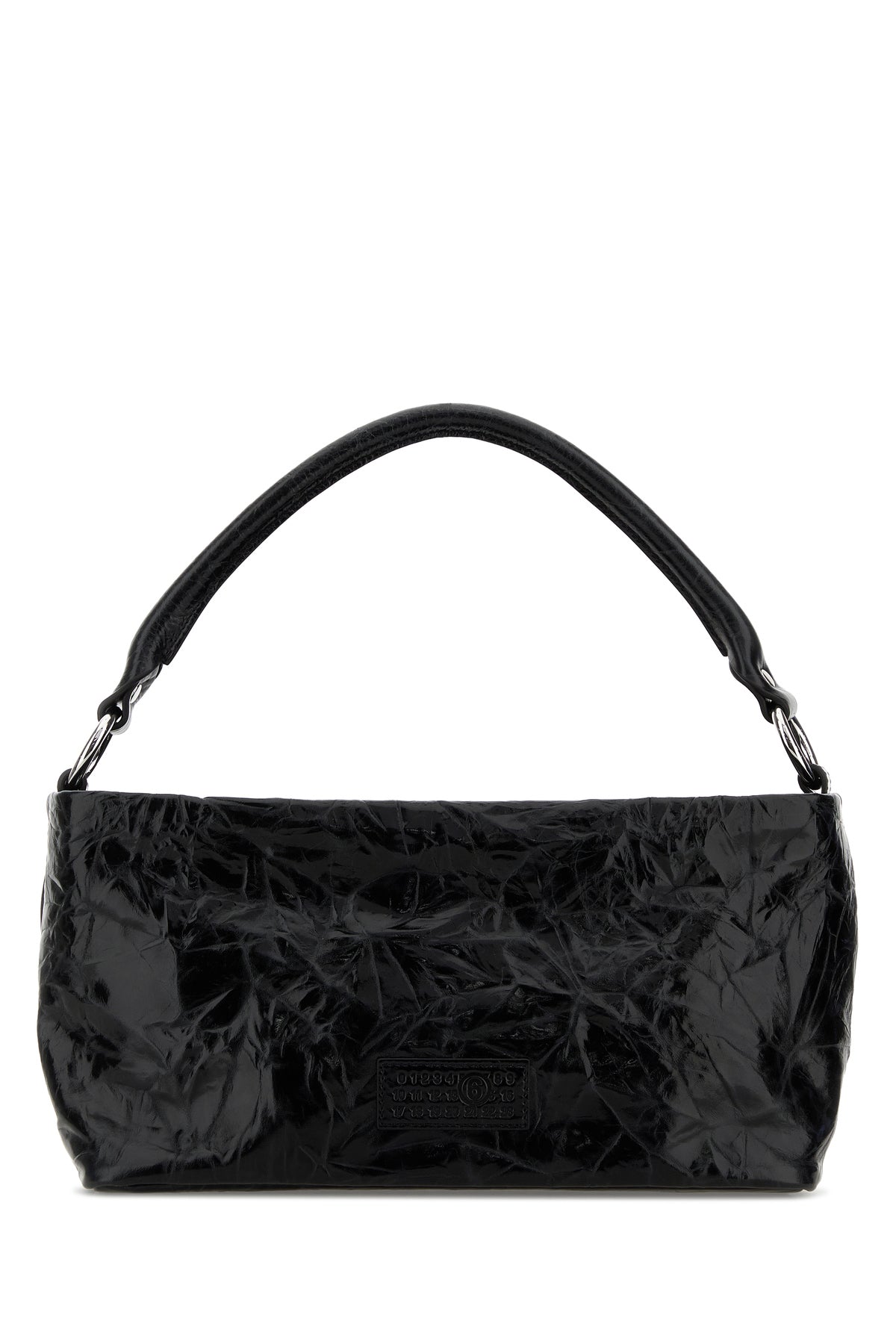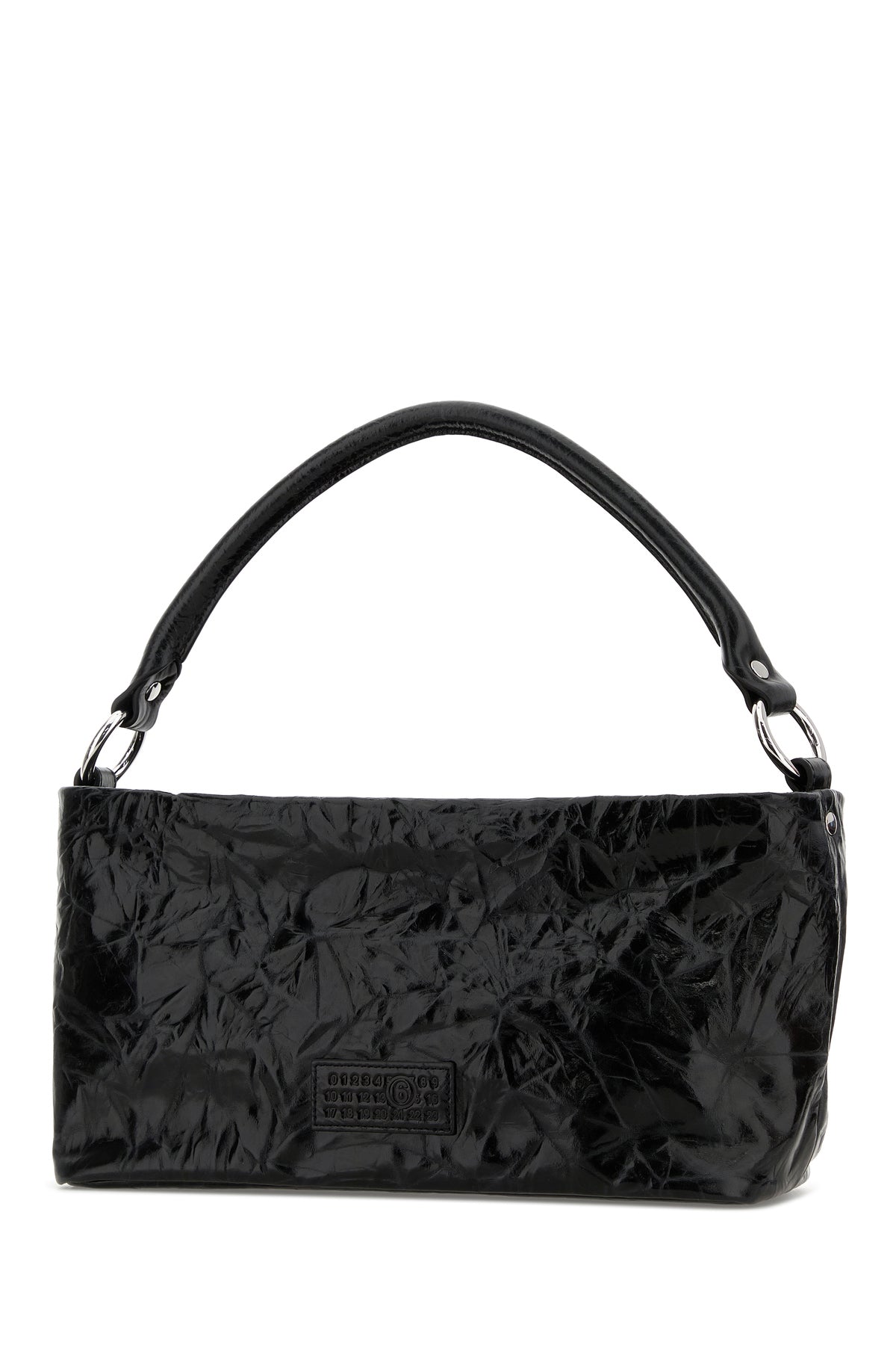 Shoulder bag realized in creased effect calf leather enriched by logoed patch at the front.
