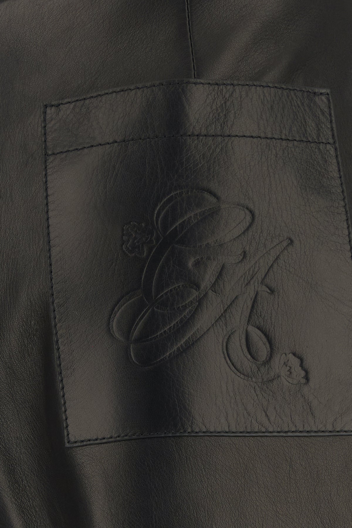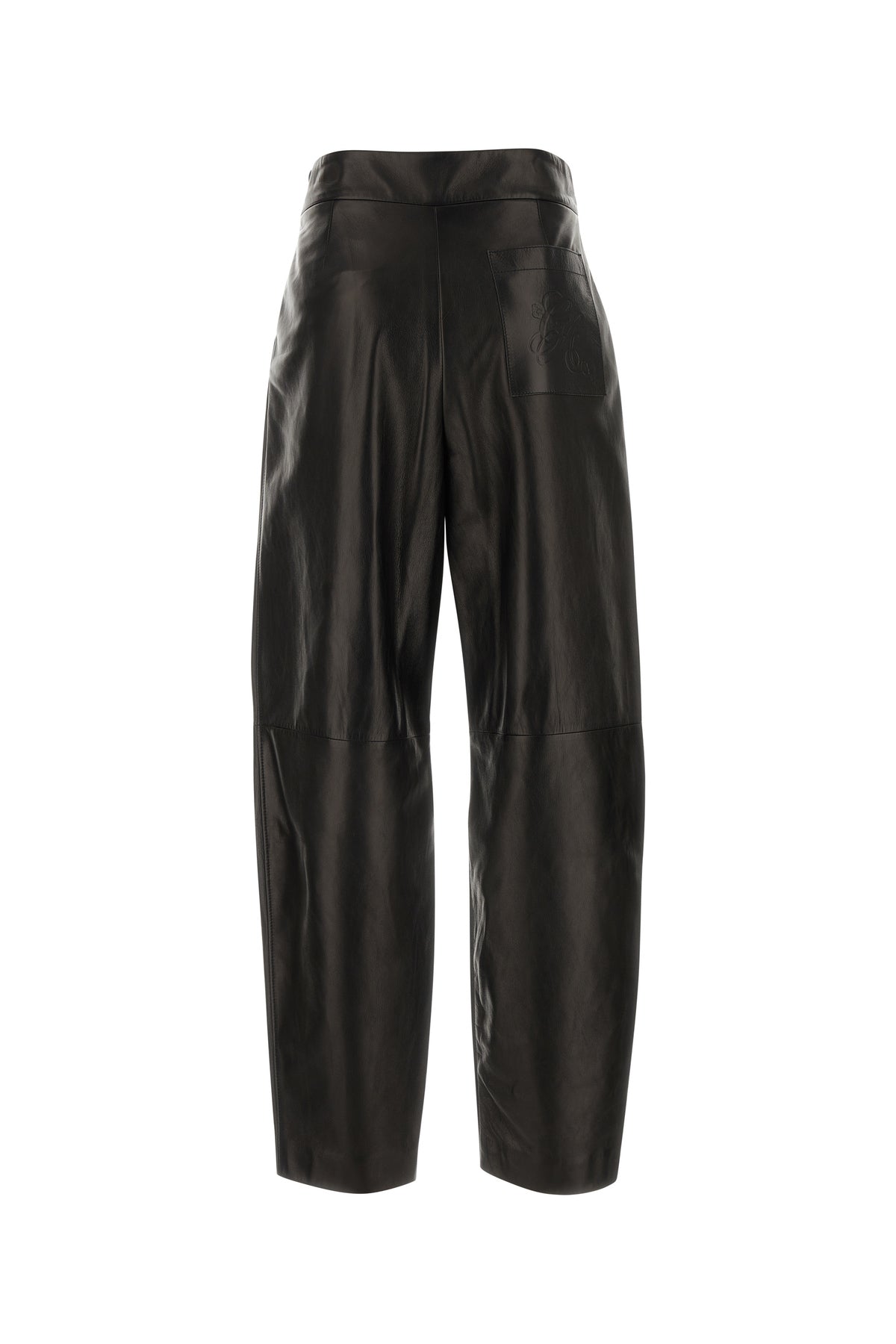 Pant realized in pebble lamb leather characterized by embossed logo at the back.