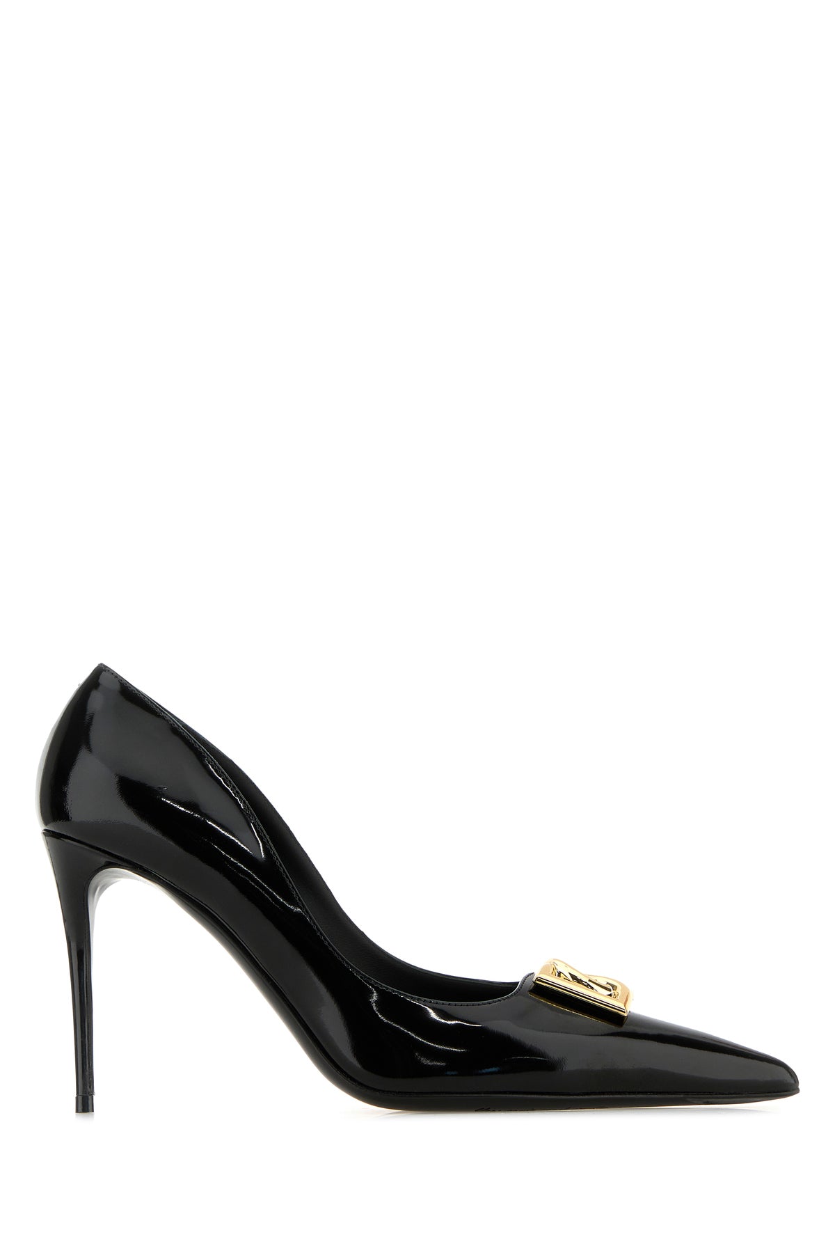 Pumps realized in polished-finish smooth calf leather enriched by metal cut-out DG detail at the front.