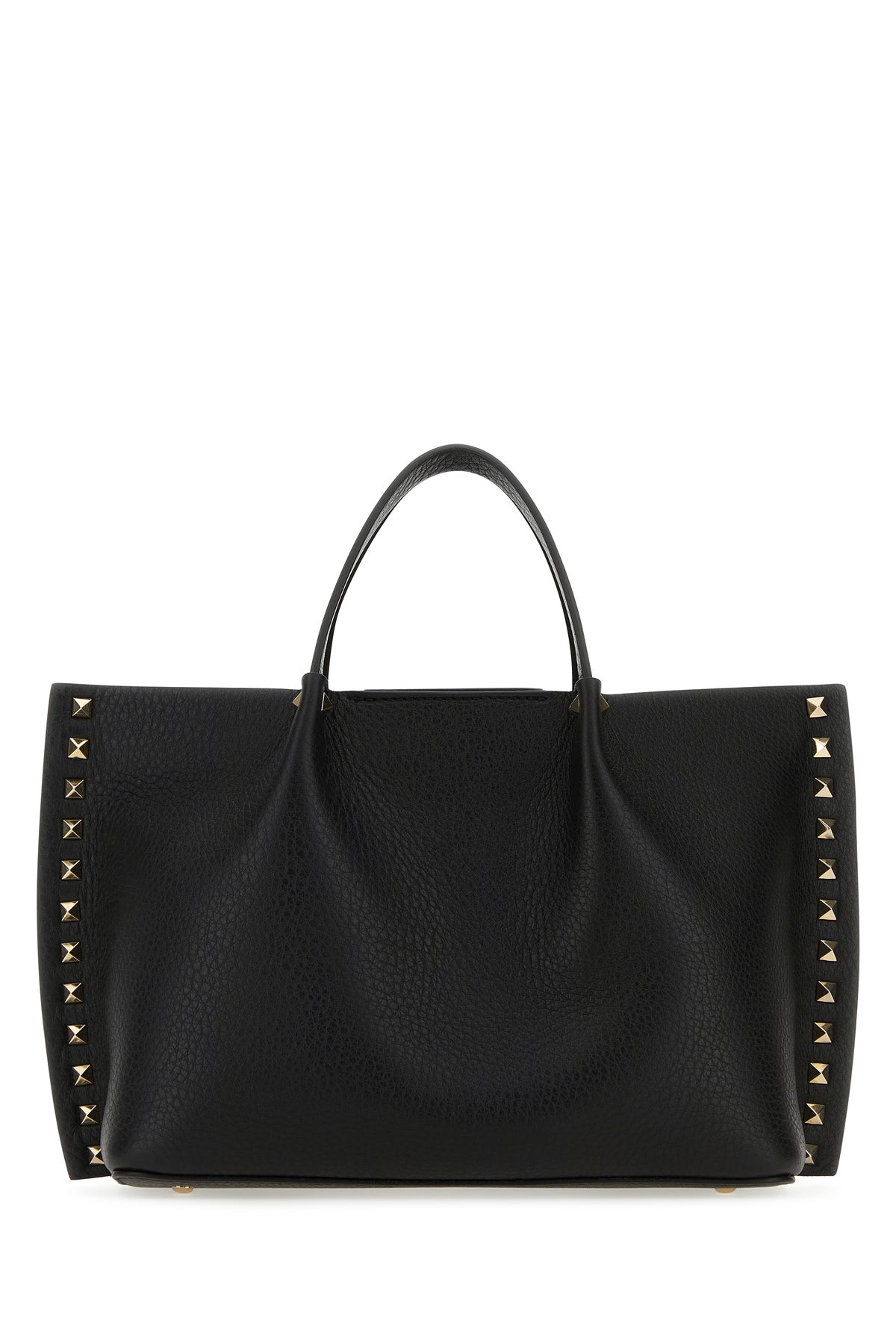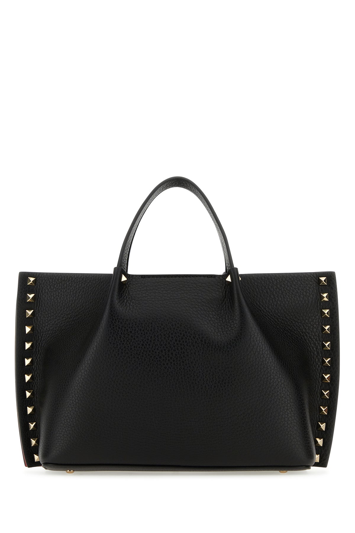 Handbag realized in pebble calf leather enriched by metal studs on the trimmings.