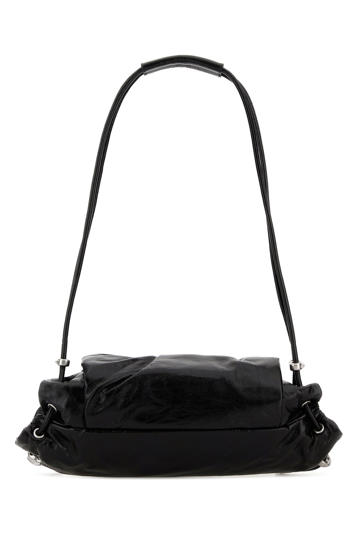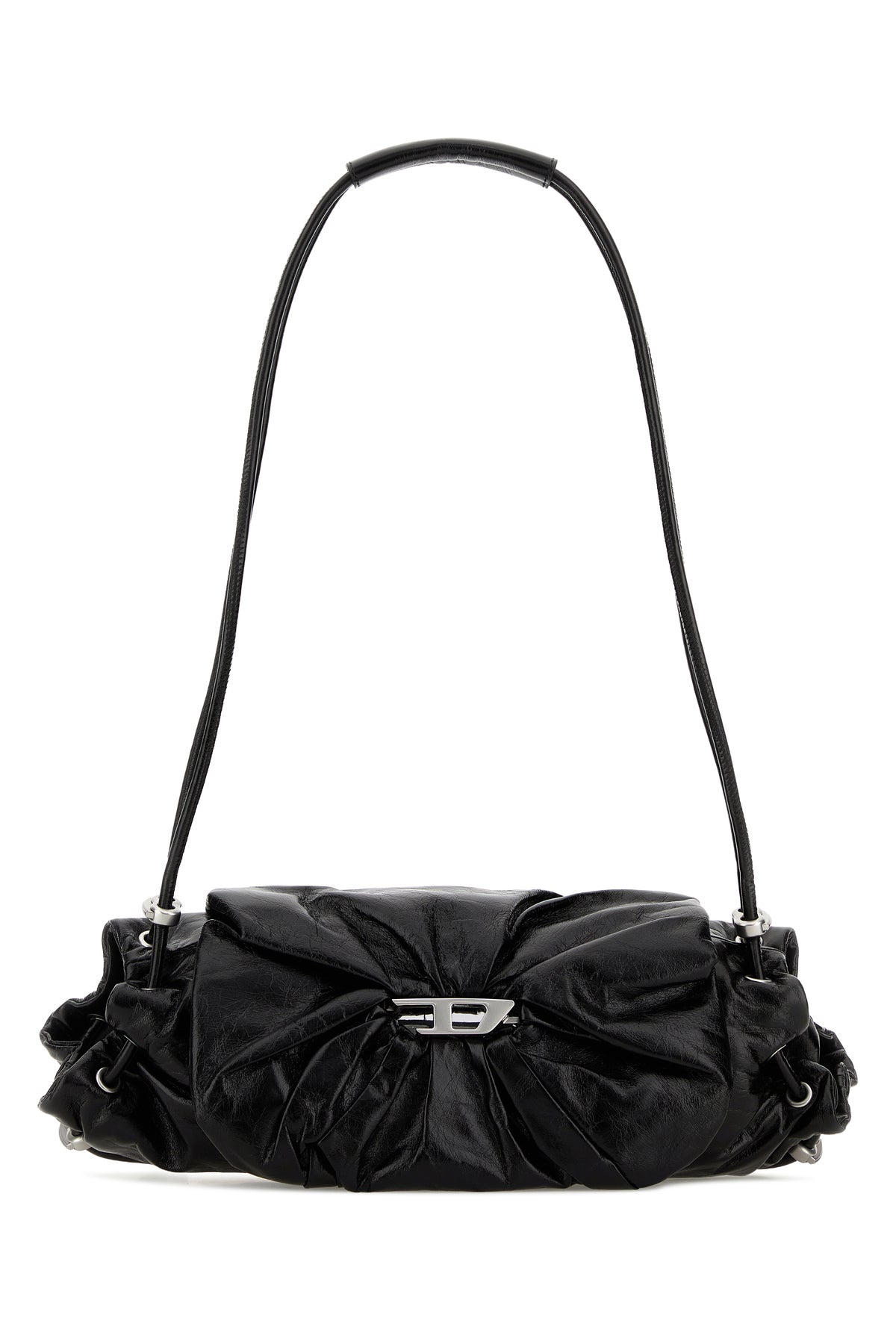 Shoulder bag realized in polished finish leather enriched by D metal detail art the front.